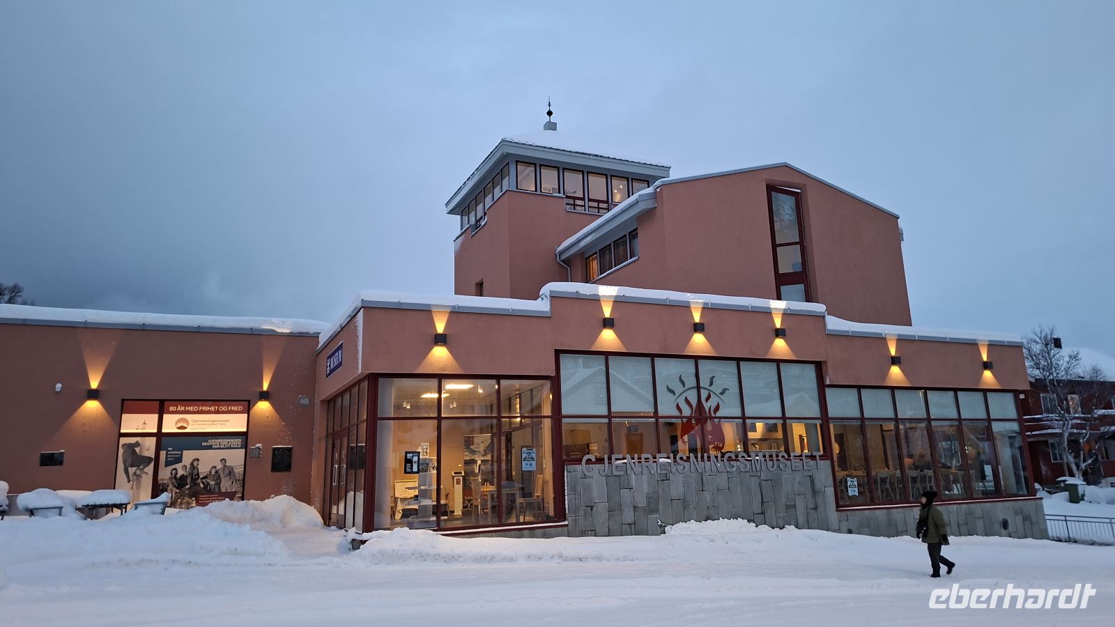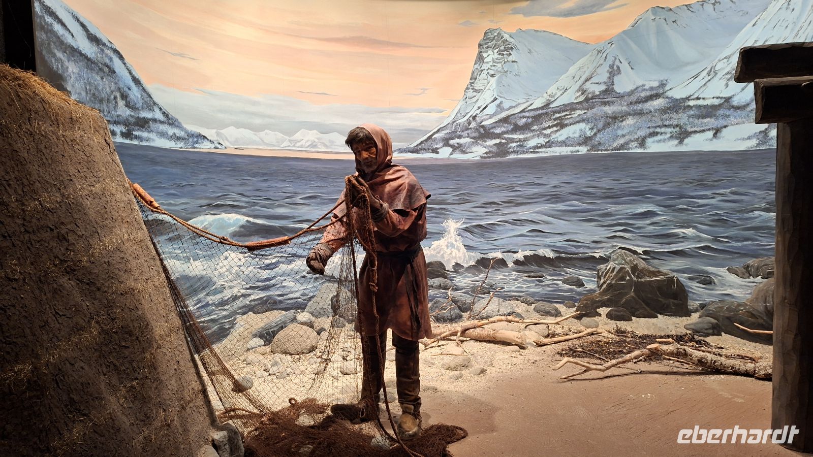 Anschließend besuchten wir das Historische Zentrum Trondenes, ein Museum, das die Geschichte der Region über mehr als 1.000 Jahre erzählt – von der Steinzeit über die Wikingerzeit und das Mittelalter bis hin zum Zweiten Weltkrieg. Mit Bildern, Filmen und Ausstellungsstücken bekamen wir ein Gefühl dafür, wie wichtig diese Gegend einst als Machtzentrum in der Wikingerzeit war und wie sich das Leben im Norden im Laufe der Jahrhunderte verändert hat.