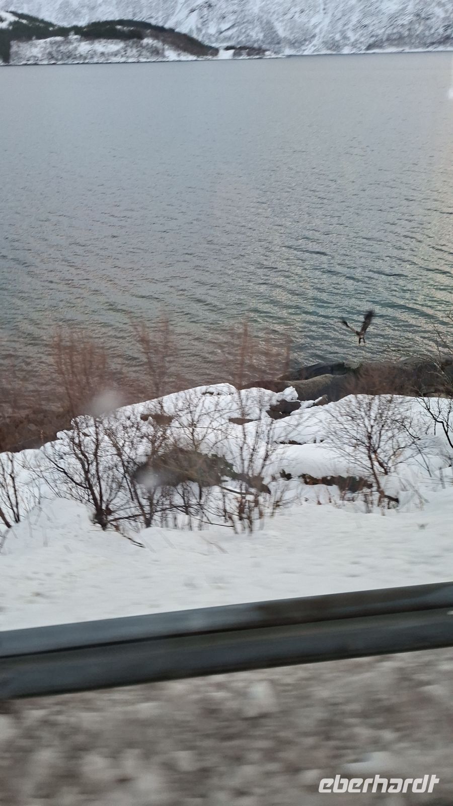 Unterwegs entdeckten wir sogar noch einen Seeadler, der majestätisch über dem Wasser kreiste.