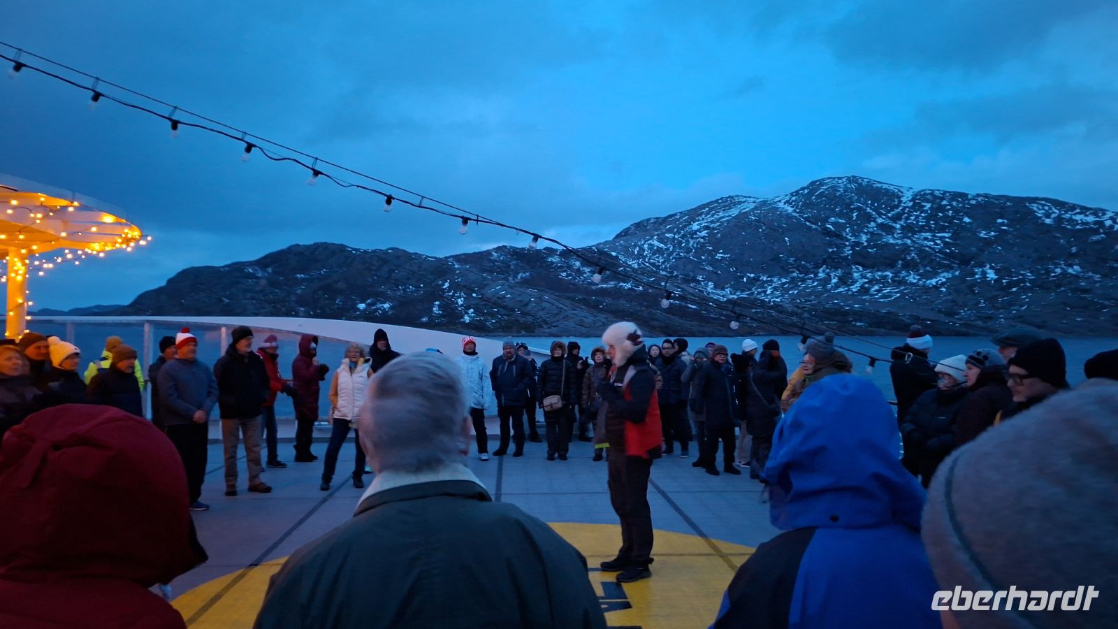 Natürlich durfte auch am letzten Tag ein Klassiker nicht fehlen: noch einmal Line Dance mit Isabella. Dieses Mal sogar zu Weihnachtsliedern – eine wunderbare Mischung aus Nordlandkreuzfahrt und vorweihnachtlicher Stimmung. Wir tanzten, lachten, stolperten manchmal über die eigenen Füße und genossen einfach das Miteinander.