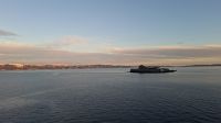 Nach dem Frühstück hatten wir schon das nächste Highlight vor uns: Wir trafen uns auf Deck 7 am Heck, gut eingepackt in Jacken und Mützen, um den Interessenpunkt Munkholmen zu sehen. Diese kleine Insel vor Trondheim sah auf den ersten Blick ganz idyllisch aus – dabei hatte sie eine ziemlich bewegte Vergangenheit hinter sich: früher Hinrichtungsstätte, später Kloster, Festung und Gefängnis. Während wir auf die Insel blickten und mehr darüber erfuhren, stellten wir uns vor, wie viel Geschichte sich auf so wenigen Quadratmetern abspielen konnte.