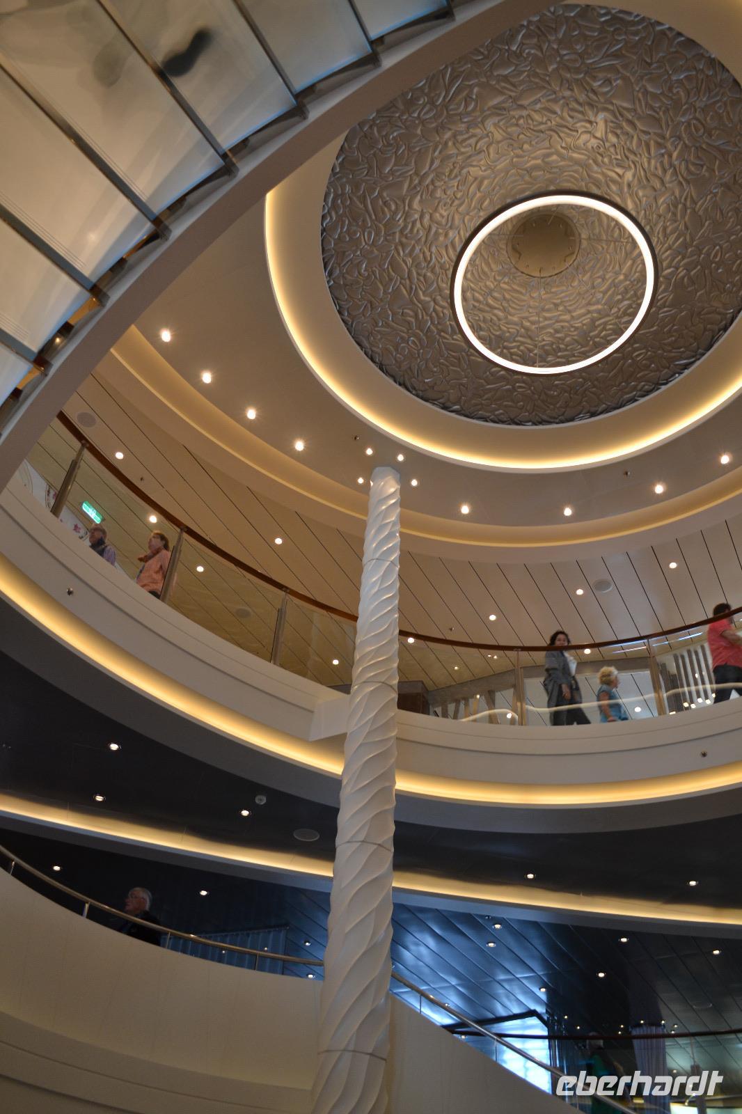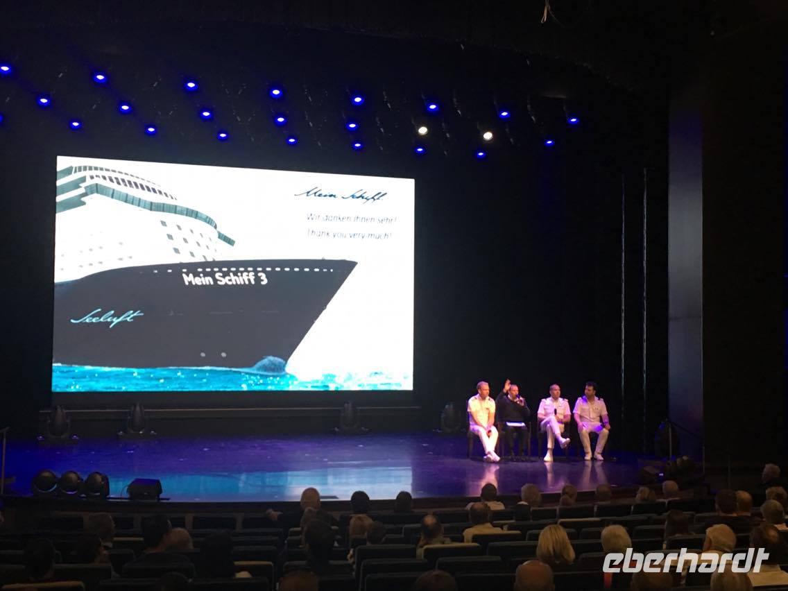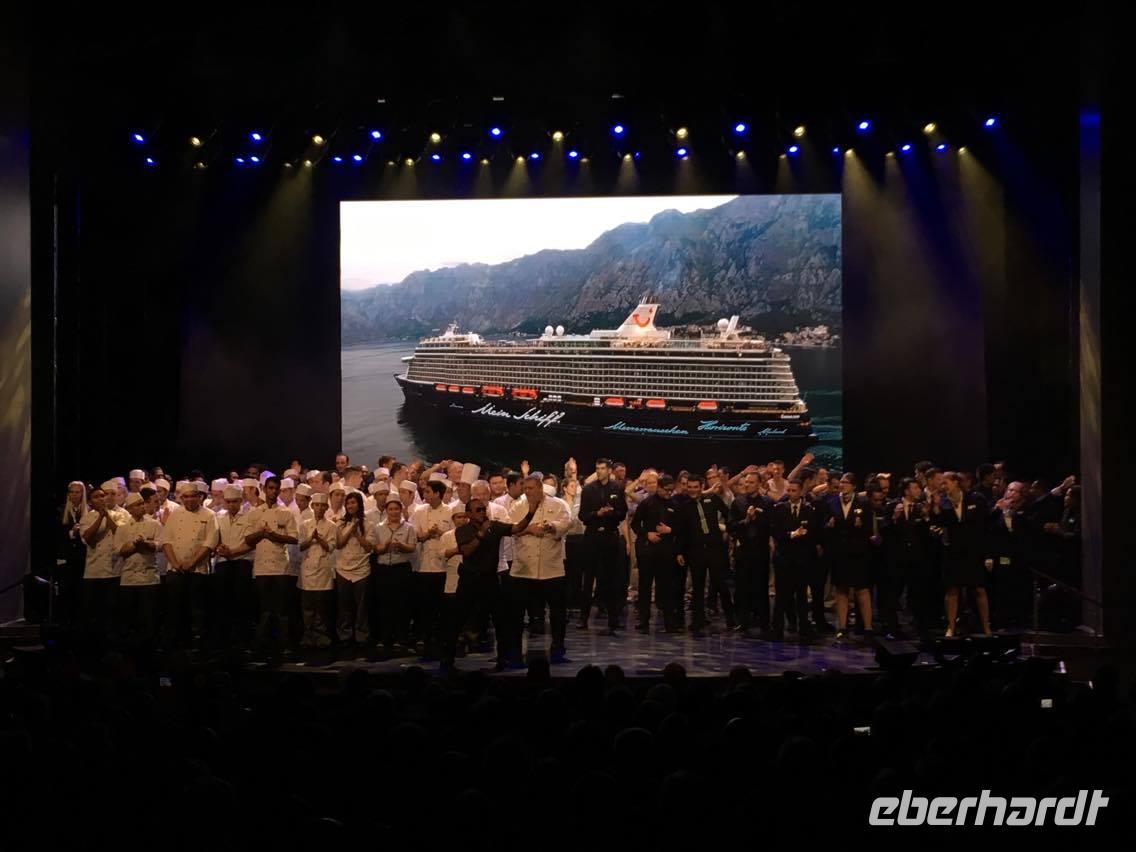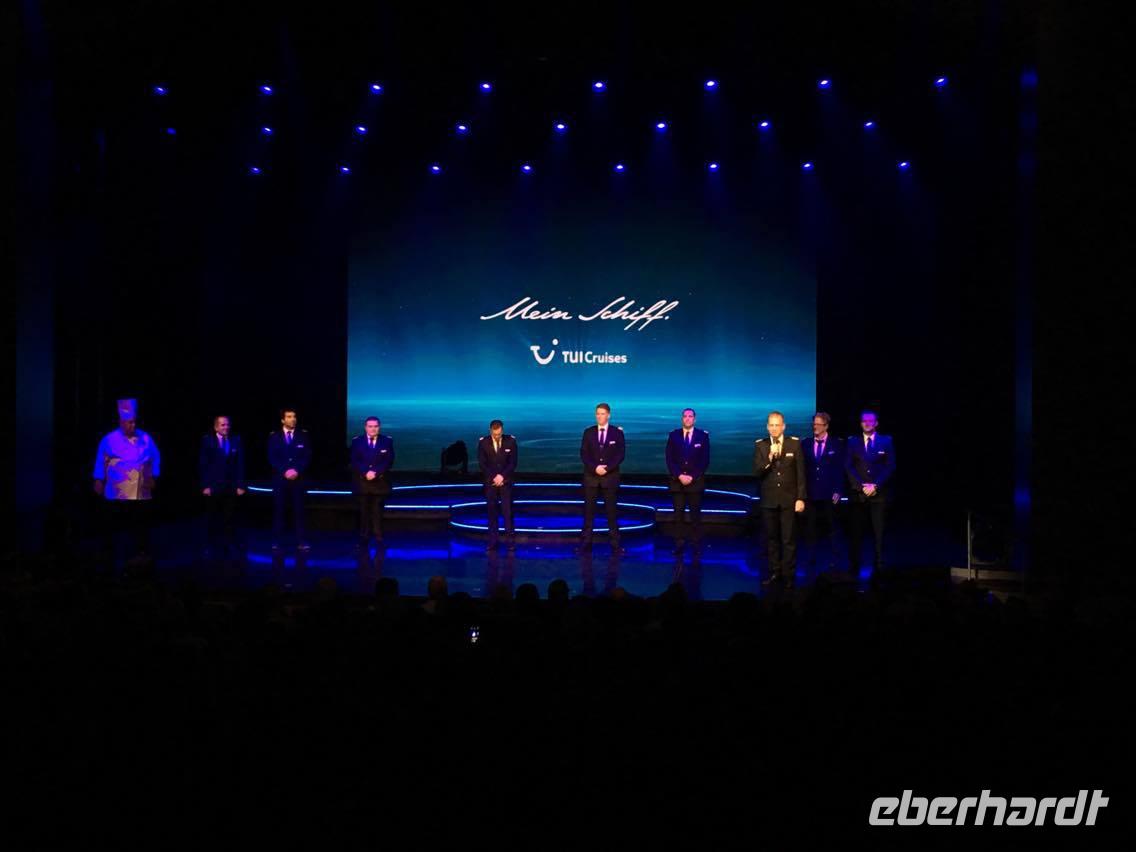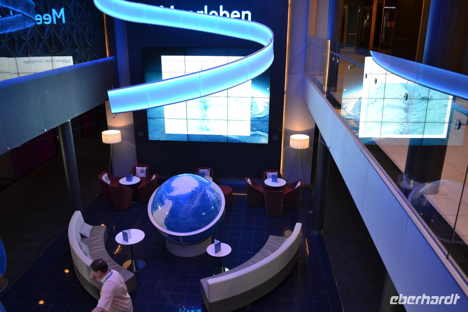 Nach dem Frühstück in einer der vielen Restaurants an Bord trafen wir uns vormittags in der Meerleben Bar zu einem Begrüßungstreffen mit einem leckeren Orangensaft und Aperol Spritz. Nach einer kurzen Besprechung begrüßte uns Gastgeberin Frau Rothschmidt und startete den rund ein stündigen Schiffsrundgang über die Decks und ging dabei auf die vielen Geheimecken- und Bars ein. Das Schiff hat eine Kapazität für 2.500 Passagiere, sowie eine Besatzung von 1.400 Personen. Nach einem schönen Nachmittag an Bord verabredeten wir uns am Abend für den Besuch im Theater. Dort stellte Kapitän Jonas Lyddby seine Besatzung vor. Danach führten uns die Artisten eine Musical-Gala rund um die Welt auf.