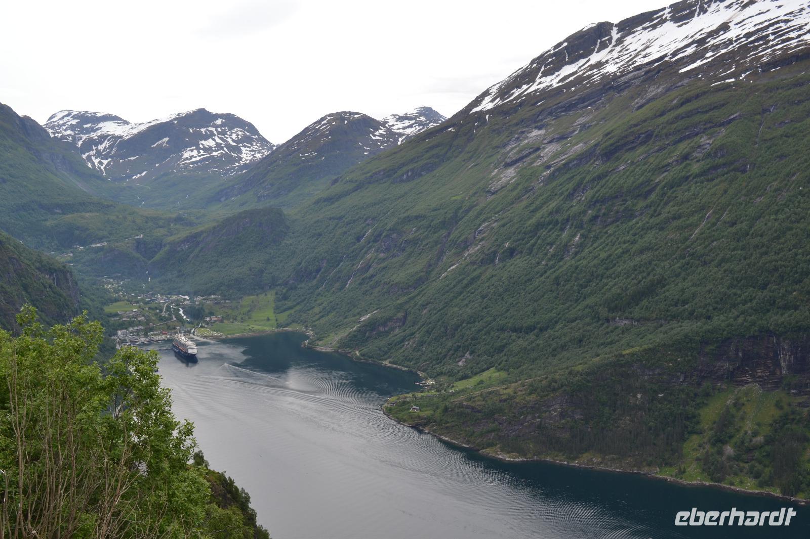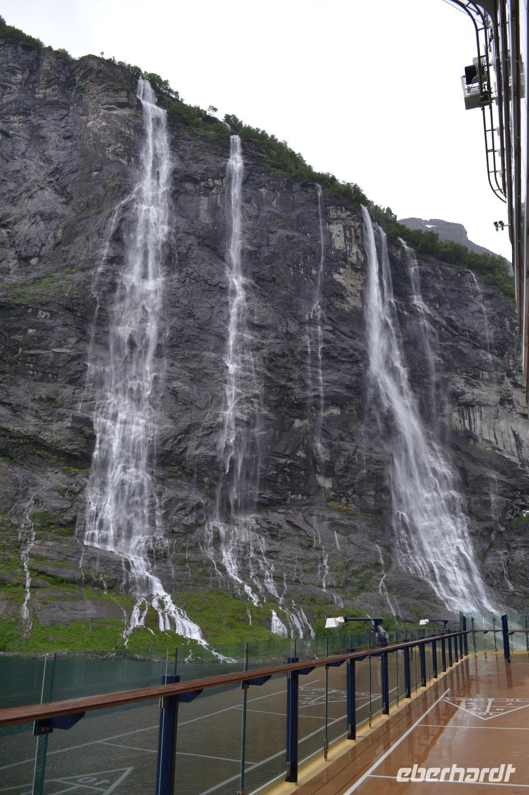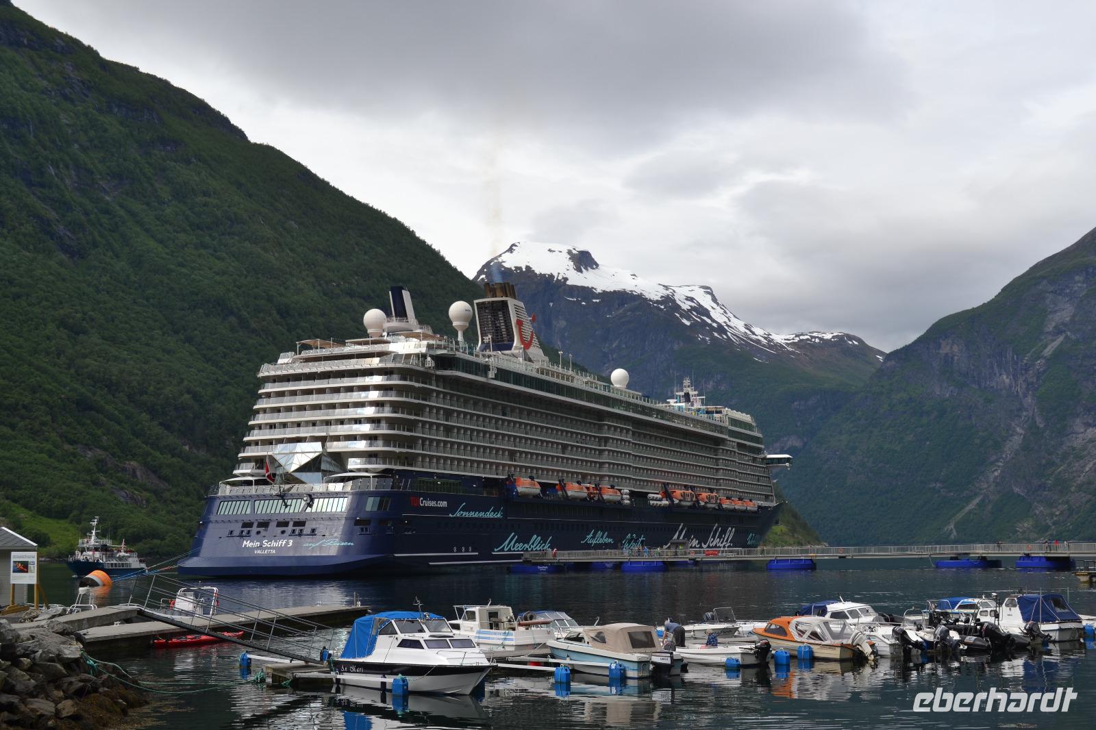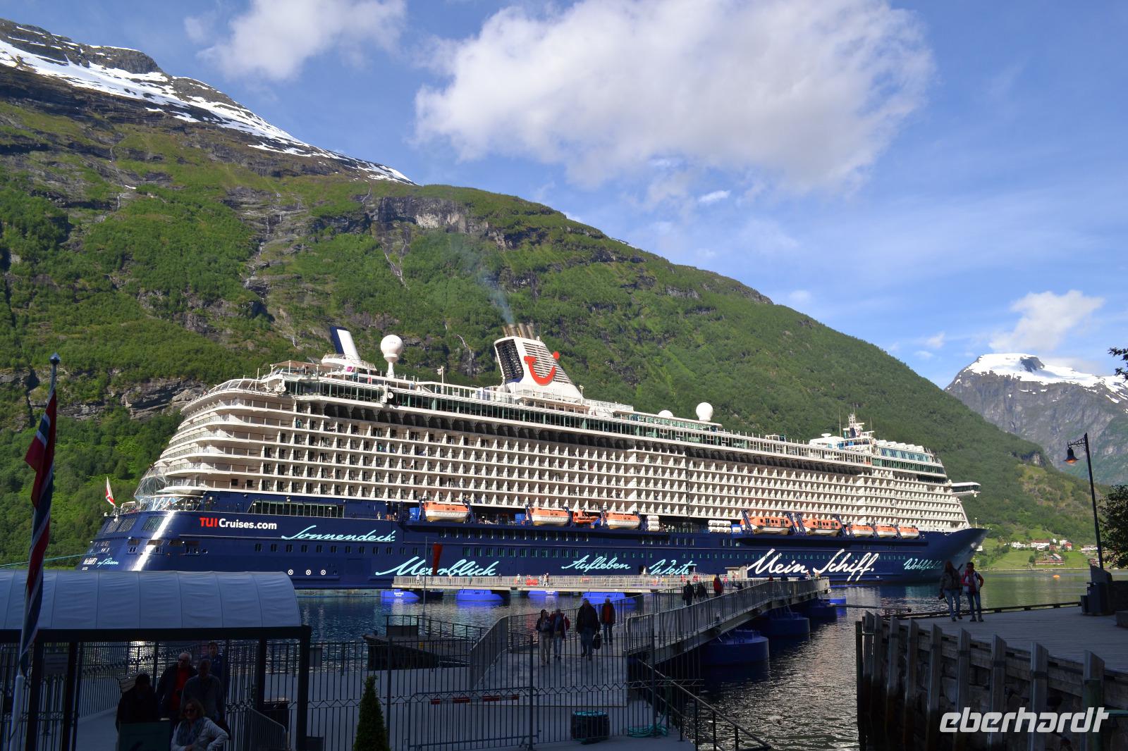 Am Morgen trafen wir mit der Mein Schiff 3 nach einer malerischen Fahrt durch die Fjorde im Hafen von Geiranger ein. Das Sehenswerteste dieser Region ist der fabelhafte Blick oben von der Adlerkehre auf die mit Fjorden durchzogene Landschaft. Gemeinsam mit 6 Gästen begaben wir uns zunächst in das Eidsdal zu einem ersten Fotostopp. Weiter ging es durch die mit Serpentinen besetzte Straße auf eine Ziegenalm, wo wir bereits von einer deutschen Jungen Frau in Empfang genommen wurden. Sie arbeitet bereits seit 4 Jahren den Sommer über auf der Alm, doch im Winter kehrt Sie der Dunkelheit den Rücken zu und reist zurück nach Deutschland. Zusammen mit Ihrer Schwester unterstützen Sie die Bauern vor Ort. Dabei führen Sie nicht nur die Touristen herum, sondern helfen auch bei der Herstellung der BIO Produkte. Nach einer Einführung in die Herstellung des braunen Ziegenkäse und der Karamell Bonbons durften wir diese natürlich auch Verkosten. Besonders gut schmeckten dabei der Frischkäse mit verschiedenen Geschmacksrichtungen und die süßen Bonbons. Nach dem schönen Vormittag ging es für uns wieder zurück zum Schiff, aber natürlich nicht ohne einen Fotostopp in der Adlerkehre, wobei man unser Schiff bereits aus unmittelbarer Nähe sah. Nach einem kleinen Bummel durch die zahlreichen Souvenirgeschäfte hieß es wieder „alle Mann an Bord um 17:30 Uhr". Den Abend ließen einige Gäste in der Meerleben Bar bei einem Cocktail und toller Live Musik ausklingen.