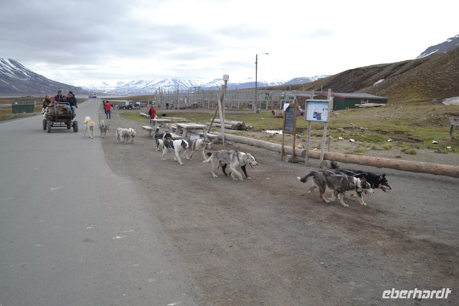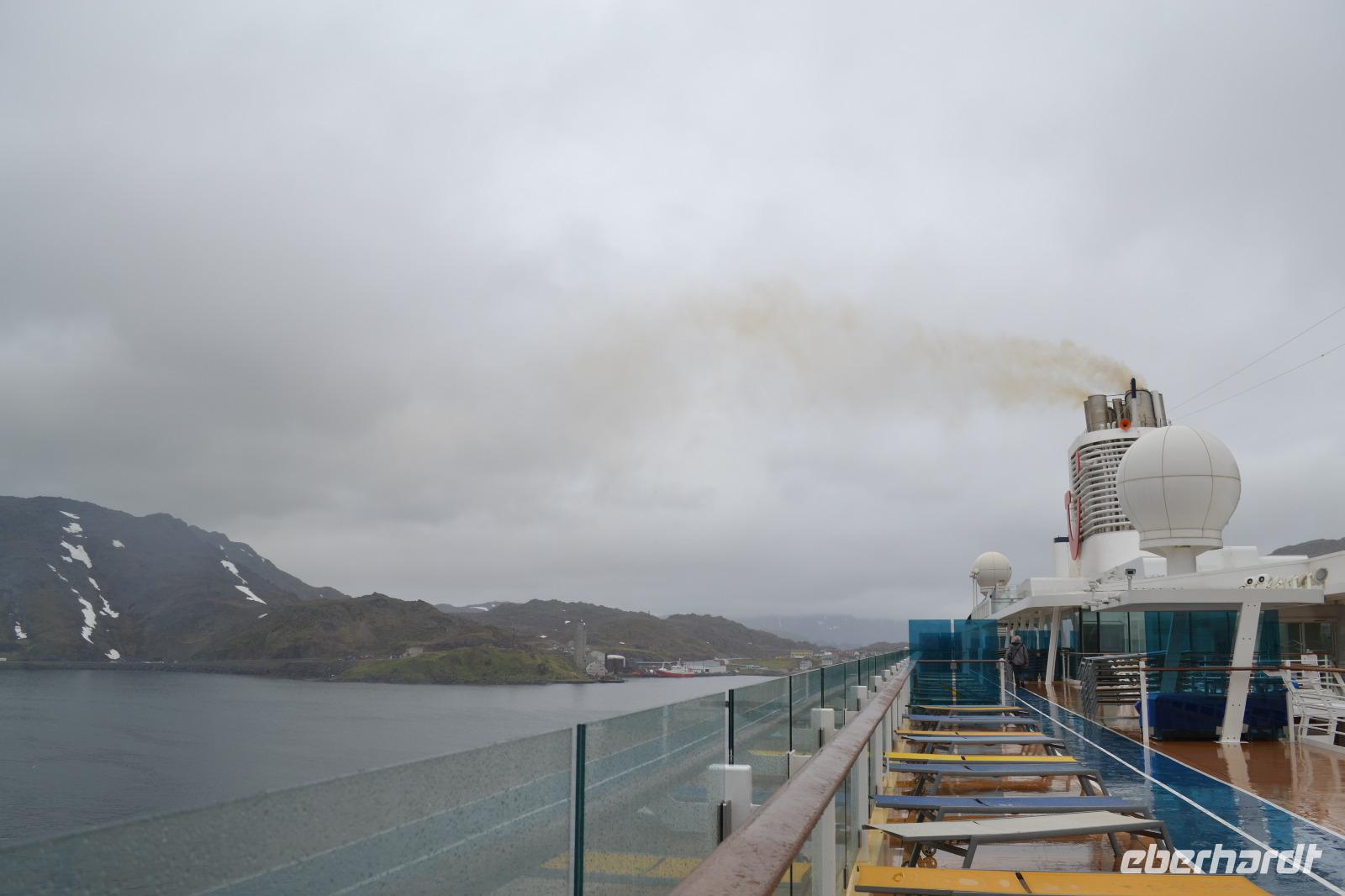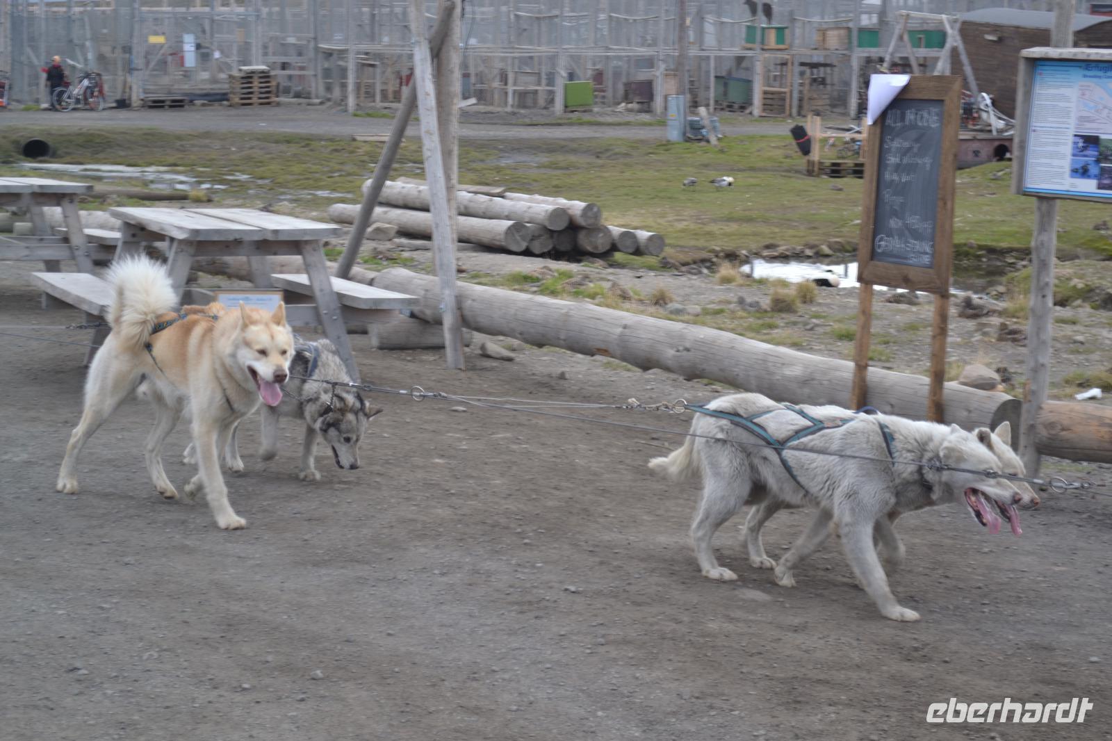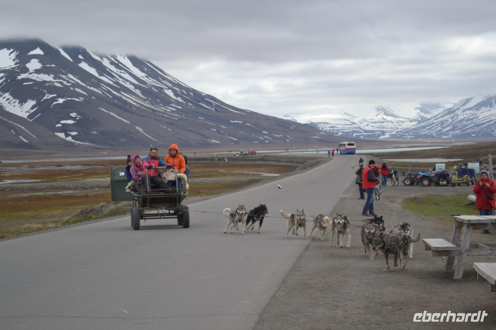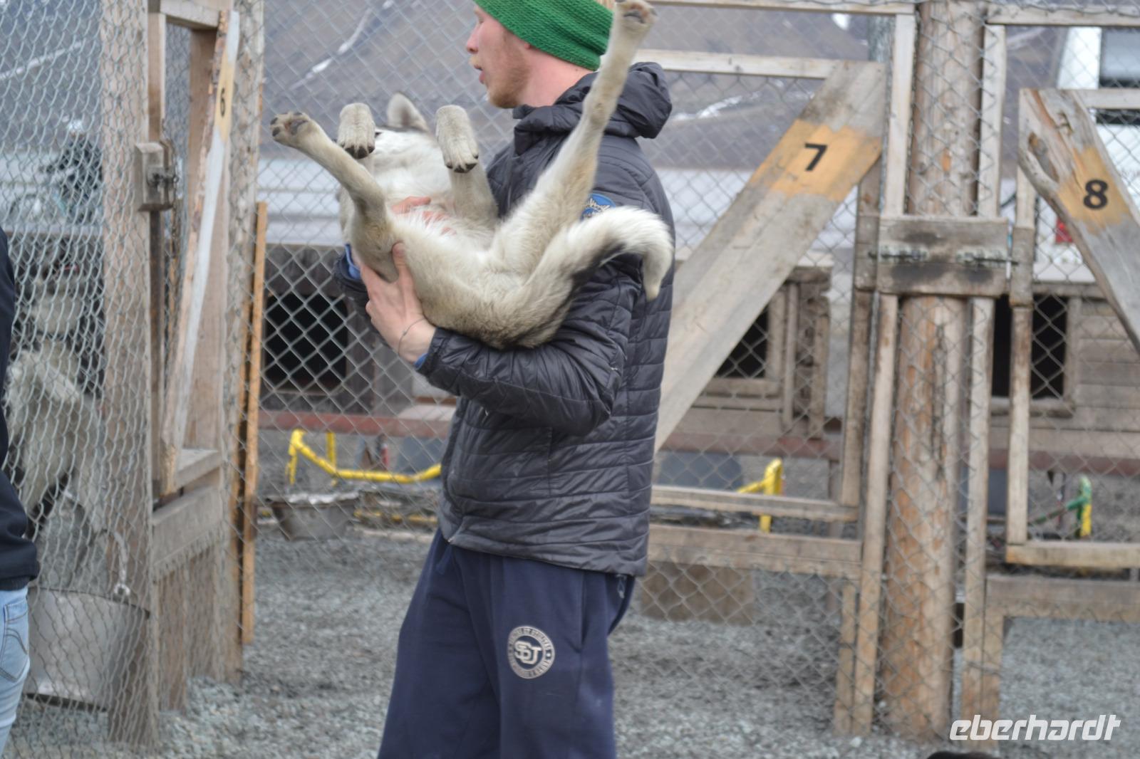 Heute trafen wir uns direkt nach dem Frühstück zusammen um gemeinsam für unseren besonderen Ausflug von Schiff zu gehen. Pünktlich 10 Uhr traf Driverguide Bent mit seinem Arctic Tapas Bus im Cruise Terminal ein. Wir bestiegen den Bus mit Spannung - die Inneneinrichtung bestach durch die vielen Tierfelle über den Sitzen und den Bildern an den Gepäckfächern. Da Bent uns die Geschichte von Spitzbergen während der Fahrt auf Englisch erklärte übersetzte Reisebegleitung Laura durch das Mikrofon. Zunächst führte er uns von den Wolken weg in Richtung der Sonne zu den Gletschern. Dort servierte uns seine Angestellte, die Ukrainerin Galina die ersten drei Fischtapas - junfreulicher Hering, etc. Danach ging es sowohl mit dem Bus, als auch mit den Tapas weiter. Der zweite Gang waren 3 Sorten Fleisch von arktischen Tieren. Zum einen geräuchertes Herz von einem Rentier, weiter ging es mit Schweinefleisch von dem Schenkel und vom Eisbären. Bent führte uns der Weile vorbei an der Samenbank, worin vor allem die Deutschen in einem großen Metallgebäude wichtige Pflanzensamen lagern, um damit für Hungersnot oder Krankheit aus zu sorgen. Er erklärte uns die Gebäude und verschiedenen Ämter im „Regierungsviertel" unweit der Kirche. Dort wurden uns auch die letzten Tapas aus Ziegenkäse serviert, bevor es für uns weiter zu den Huskys ging. Auf der Farm angekommen begrüßten uns bereits um die 50 Hunde, darunter auch 5 Monate alte Jungtiere, welche für uns später zum Spielen und streicheln frei gelassen wurden. Nach einer kurzen Einweisung durch den Sohn der Besitzerin, welcher dort mit seiner Lateinamerikanischen Frau lebte, konnten wir uns auch auf dem Grundstück noch ein wenig umsehen. Es war umgeben von Eiderenten und weiteren Vogelarten. Die Besitzerin, welche bereits seit 41 Jahren auf Spitzbergen verweilt, verteilte warmen Punsch, Kekse und Eierkuchen. Wir genossen auch die warme Hütte mit einer Feuerstelle. Nach unserem Aufenthalt verabschiedeten wir uns von Bent und Galina. Einige Gäste verließen den Bus bereits im Ortszentrum, um den Weg zum Schiff mit einem Bummel durch die Straßen vorbei an den Rentieren zu verbinden. Die anderen wurden direkt am Schiff heraus gelassen. Alle Gäste verbrachten den Nachmittag individuell. Am Abend fand die Polareis-Nacht auf dem Pooldeck statt. Dabei holte der Stuffkapitän vom Gletscher ein Stück Eis an Bord welches dann für verschiedene Rumsorten verwendet wurde.
