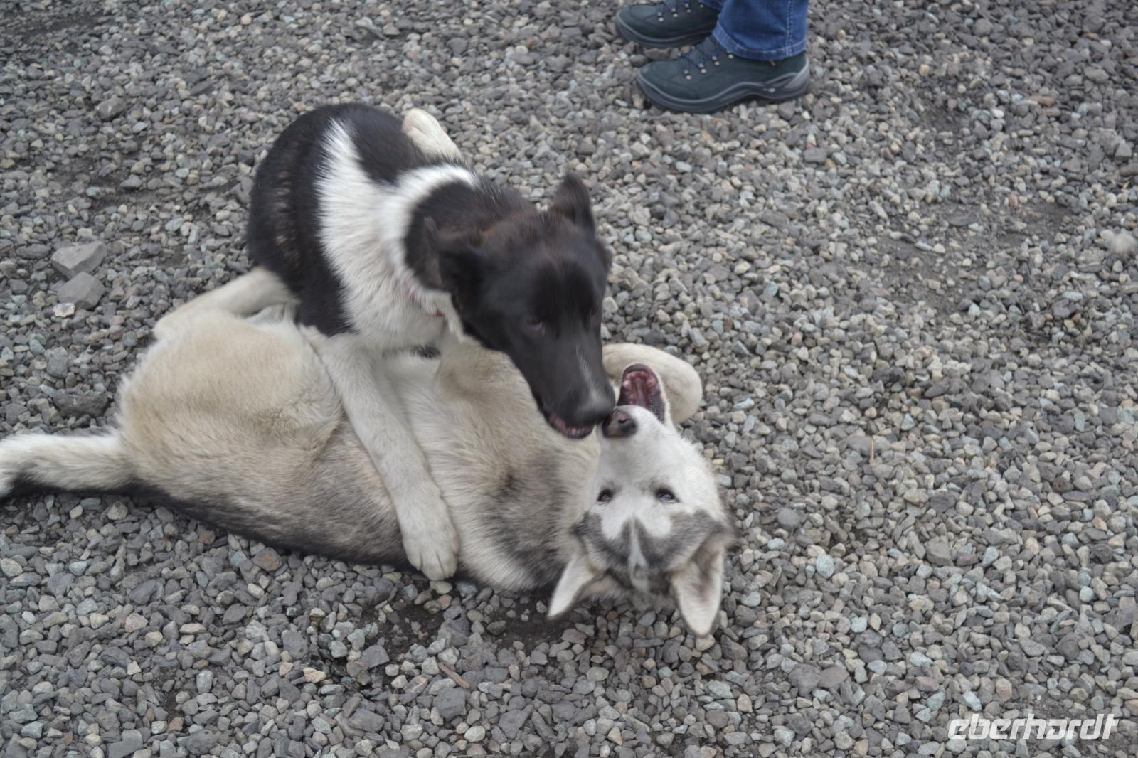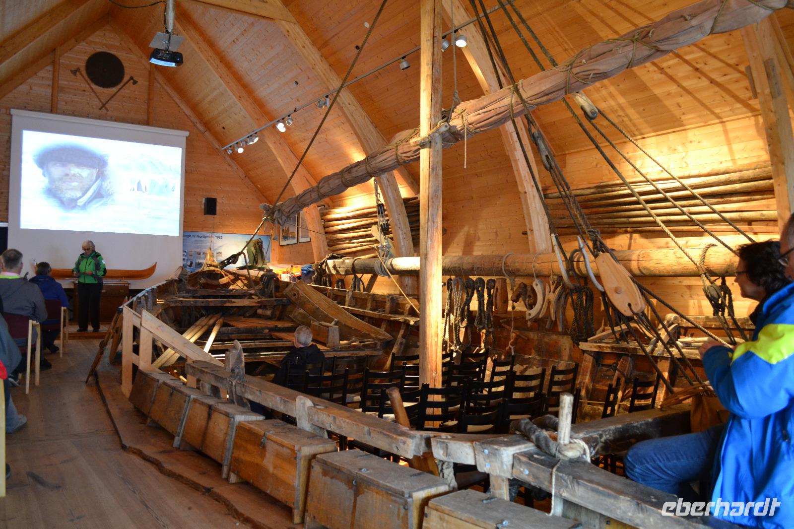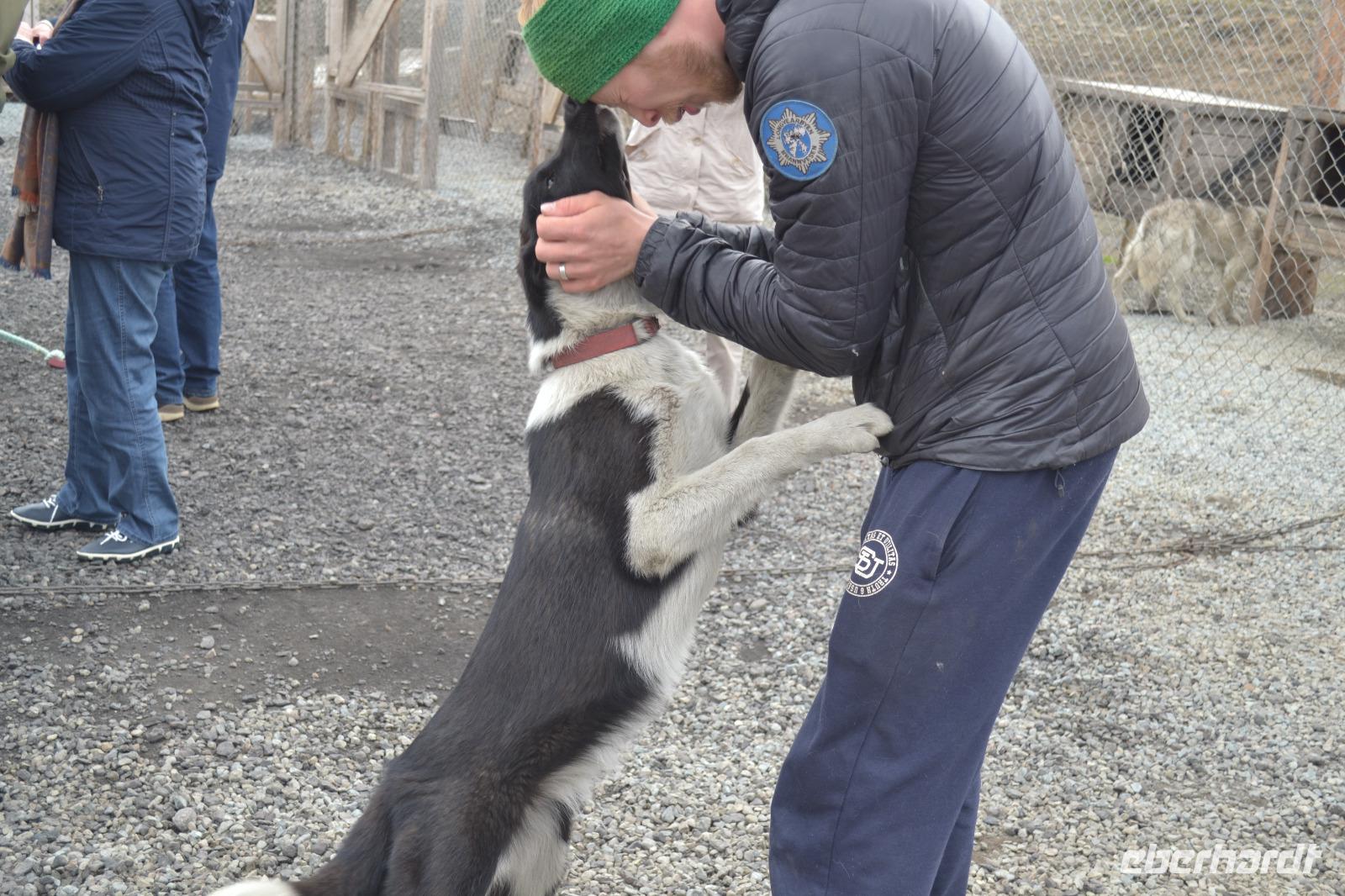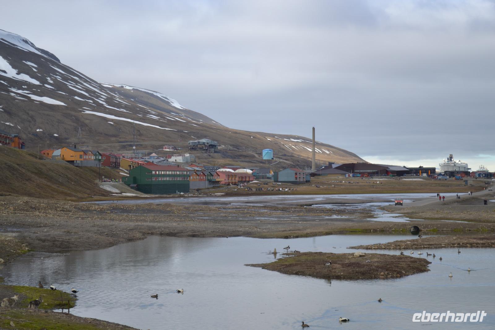 Heute trafen wir uns direkt nach dem Frühstück zusammen um gemeinsam für unseren besonderen Ausflug von Schiff zu gehen. Pünktlich 10 Uhr traf Driverguide Bent mit seinem Arctic Tapas Bus im Cruise Terminal ein. Wir bestiegen den Bus mit Spannung - die Inneneinrichtung bestach durch die vielen Tierfelle über den Sitzen und den Bildern an den Gepäckfächern. Da Bent uns die Geschichte von Spitzbergen während der Fahrt auf Englisch erklärte übersetzte Reisebegleitung Laura durch das Mikrofon. Zunächst führte er uns von den Wolken weg in Richtung der Sonne zu den Gletschern. Dort servierte uns seine Angestellte, die Ukrainerin Galina die ersten drei Fischtapas - junfreulicher Hering, etc. Danach ging es sowohl mit dem Bus, als auch mit den Tapas weiter. Der zweite Gang waren 3 Sorten Fleisch von arktischen Tieren. Zum einen geräuchertes Herz von einem Rentier, weiter ging es mit Schweinefleisch von dem Schenkel und vom Eisbären. Bent führte uns der Weile vorbei an der Samenbank, worin vor allem die Deutschen in einem großen Metallgebäude wichtige Pflanzensamen lagern, um damit für Hungersnot oder Krankheit aus zu sorgen. Er erklärte uns die Gebäude und verschiedenen Ämter im „Regierungsviertel" unweit der Kirche. Dort wurden uns auch die letzten Tapas aus Ziegenkäse serviert, bevor es für uns weiter zu den Huskys ging. Auf der Farm angekommen begrüßten uns bereits um die 50 Hunde, darunter auch 5 Monate alte Jungtiere, welche für uns später zum Spielen und streicheln frei gelassen wurden. Nach einer kurzen Einweisung durch den Sohn der Besitzerin, welcher dort mit seiner Lateinamerikanischen Frau lebte, konnten wir uns auch auf dem Grundstück noch ein wenig umsehen. Es war umgeben von Eiderenten und weiteren Vogelarten. Die Besitzerin, welche bereits seit 41 Jahren auf Spitzbergen verweilt, verteilte warmen Punsch, Kekse und Eierkuchen. Wir genossen auch die warme Hütte mit einer Feuerstelle. Nach unserem Aufenthalt verabschiedeten wir uns von Bent und Galina. Einige Gäste verließen den Bus bereits im Ortszentrum, um den Weg zum Schiff mit einem Bummel durch die Straßen vorbei an den Rentieren zu verbinden. Die anderen wurden direkt am Schiff heraus gelassen. Alle Gäste verbrachten den Nachmittag individuell. Am Abend fand die Polareis-Nacht auf dem Pooldeck statt. Dabei holte der Stuffkapitän vom Gletscher ein Stück Eis an Bord welches dann für verschiedene Rumsorten verwendet wurde.