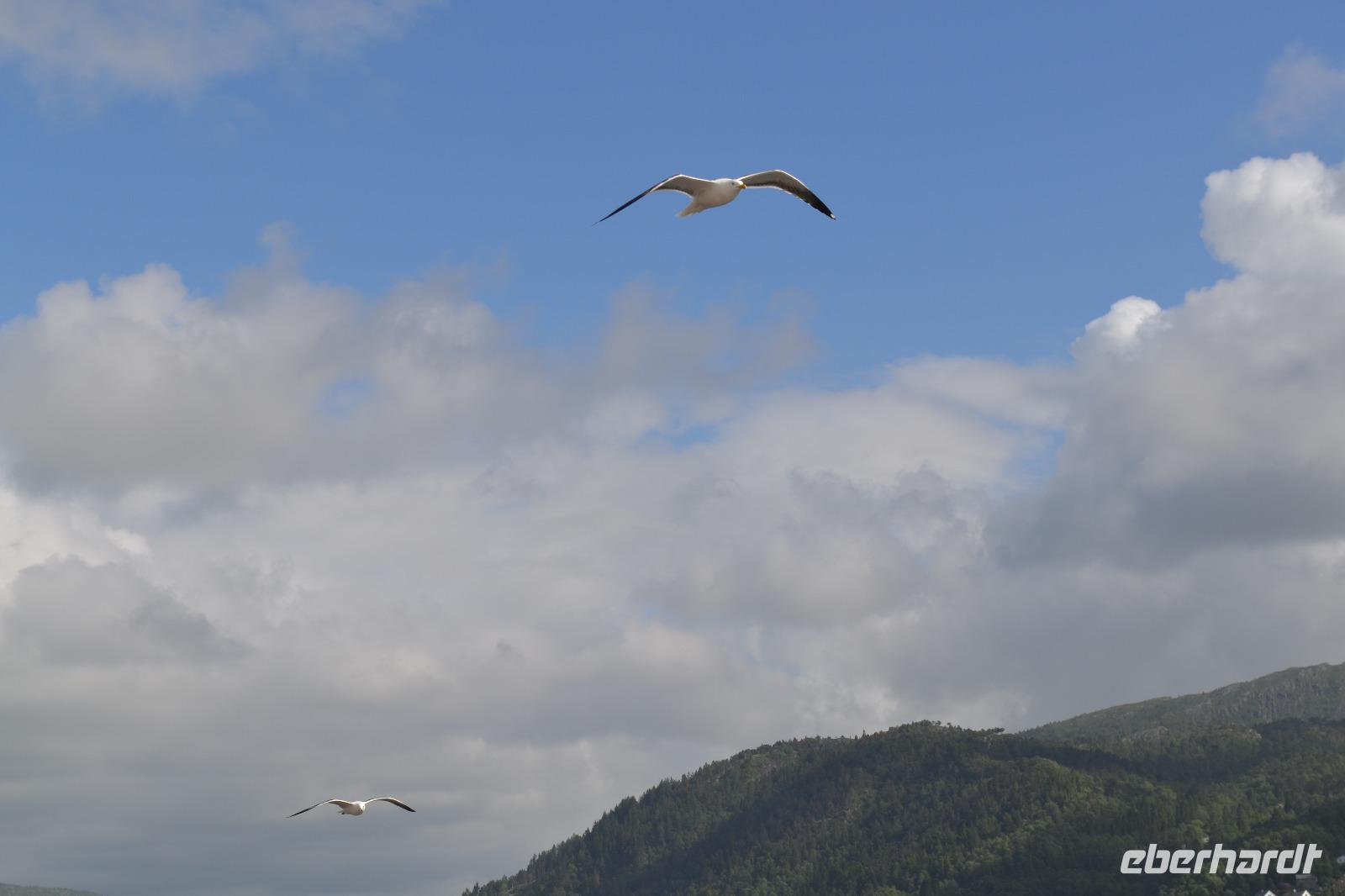 Der Weg Richtung Süden nahm ganze zwei Seetage in Anspruch. Natürlich führte uns Frau Ingeborg Schneider heute auch noch in die Jugendstilstadt Ålesund ein. Mit ein bisschen Nieselregen ging es heute vorbei an den Lofoten.