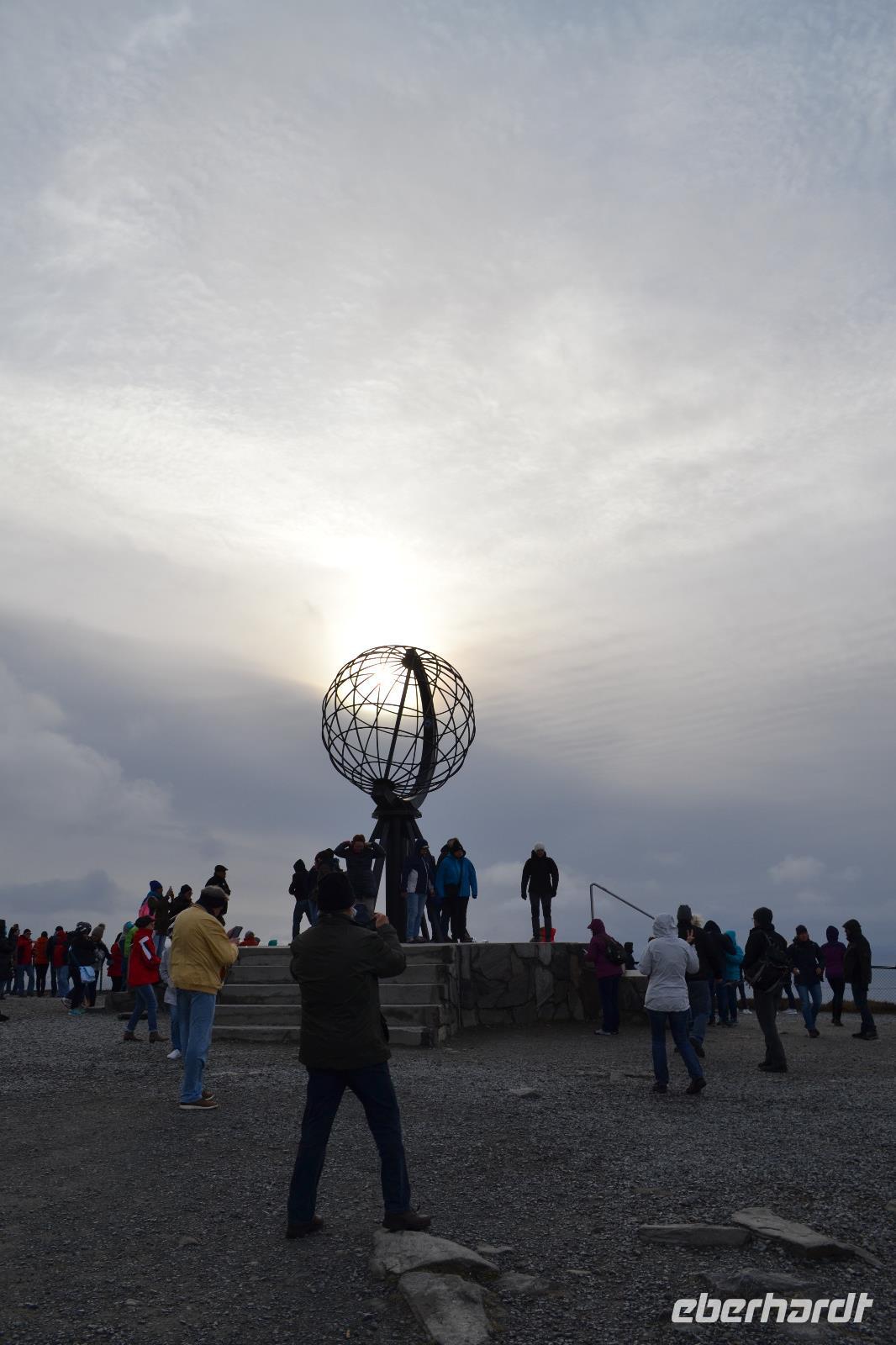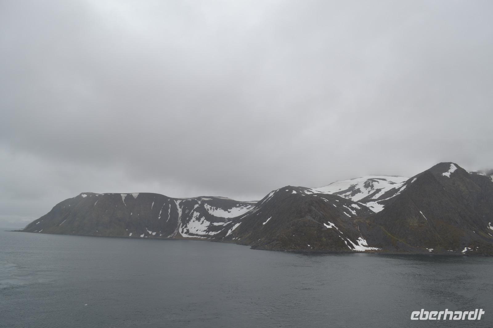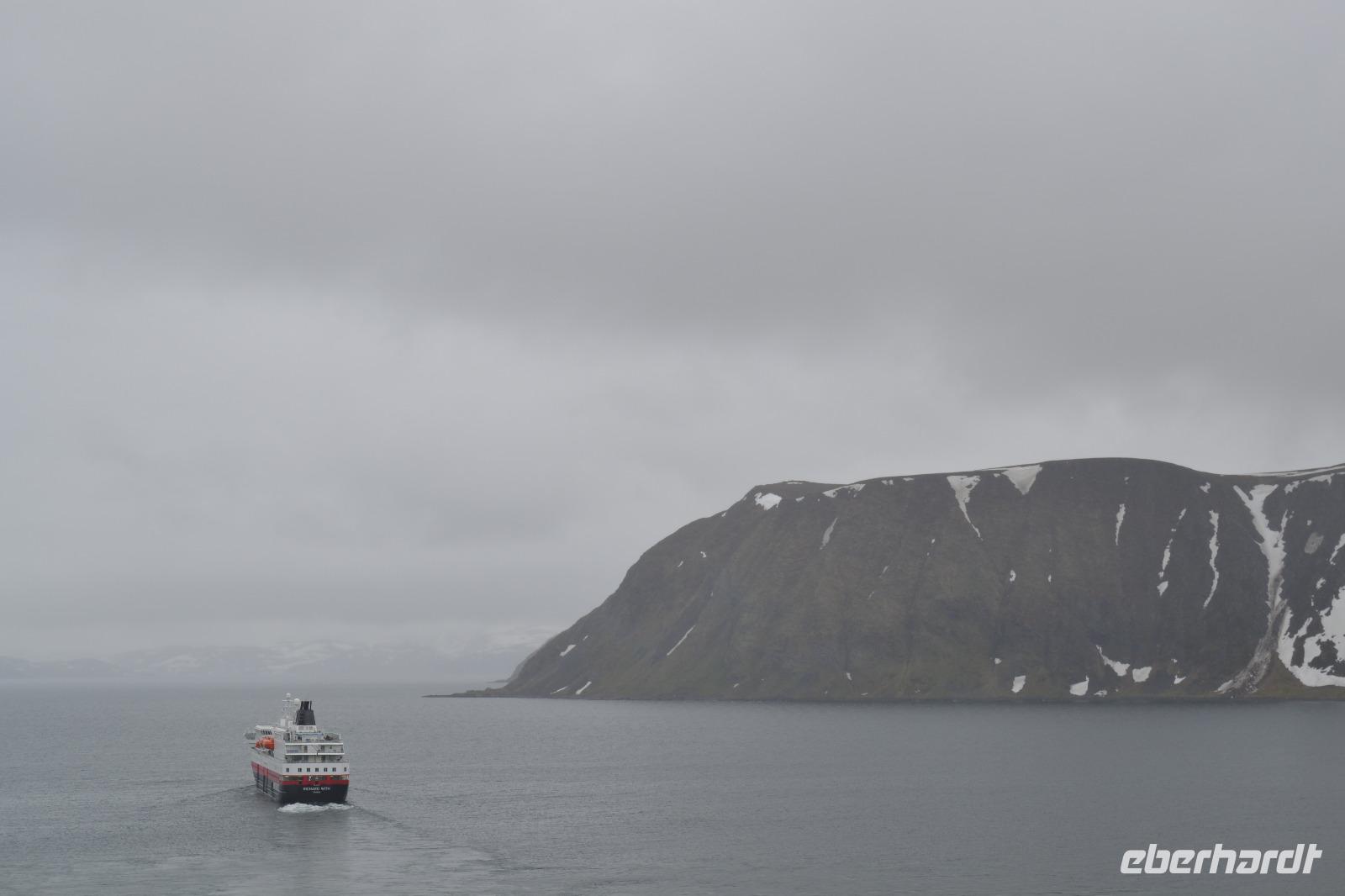 Heute ging es für fast alle Gäste zu dem Highlight der Reise, der Besichtigung des Nordkaps. Am frühen Nachmittag legte das Schiff im Hafen von Honningsvåg an, wobei es für einige Gäste bereits schon auf die ersten Landausflüge ging. Es stand die Besichtigung der Königskrabben, eine Fahrt auf die umliegenden Insel und Besuch der Dörfer, sowie der Transfer zum Nordkap an. Für mich und zwei weitere Gäste ging es gemeinsam per Bus über eine teilweise sehr schmale Straße vorbei an Herden mit Rentieren in der Ferne zum Nordkap. Dort standen uns dann 1,5 h zur freien Verfügung, bis es im Pendelverkehr wieder zurück zum Hafen ging. Wir hatten sehr Glück mit dem Wetter, denn als wir an dem großen Metallglobus ankamen lächelte uns die Sonne ein bisschen an. Die Nordkaphalle am 71. N Br. kam zum Aufwärmen von den kalten Nordwinden sehr recht, denn zum Nordpol waren es nur noch 2.100 km. Aber nicht nur die Weltkugel war eine Sehenswürdigkeit, sondern auch die 7 selbst gestalteten Taler der Kinder von der ganzen Welt, sowie die Metall Mutter mit Ihrem Kind an der Hand in der Mittsommernacht. Am Abend erreichten alle dann wieder das Schiff, denn in der Nacht 1 Uhr legte das Schiff ab nach Spitzbergen.