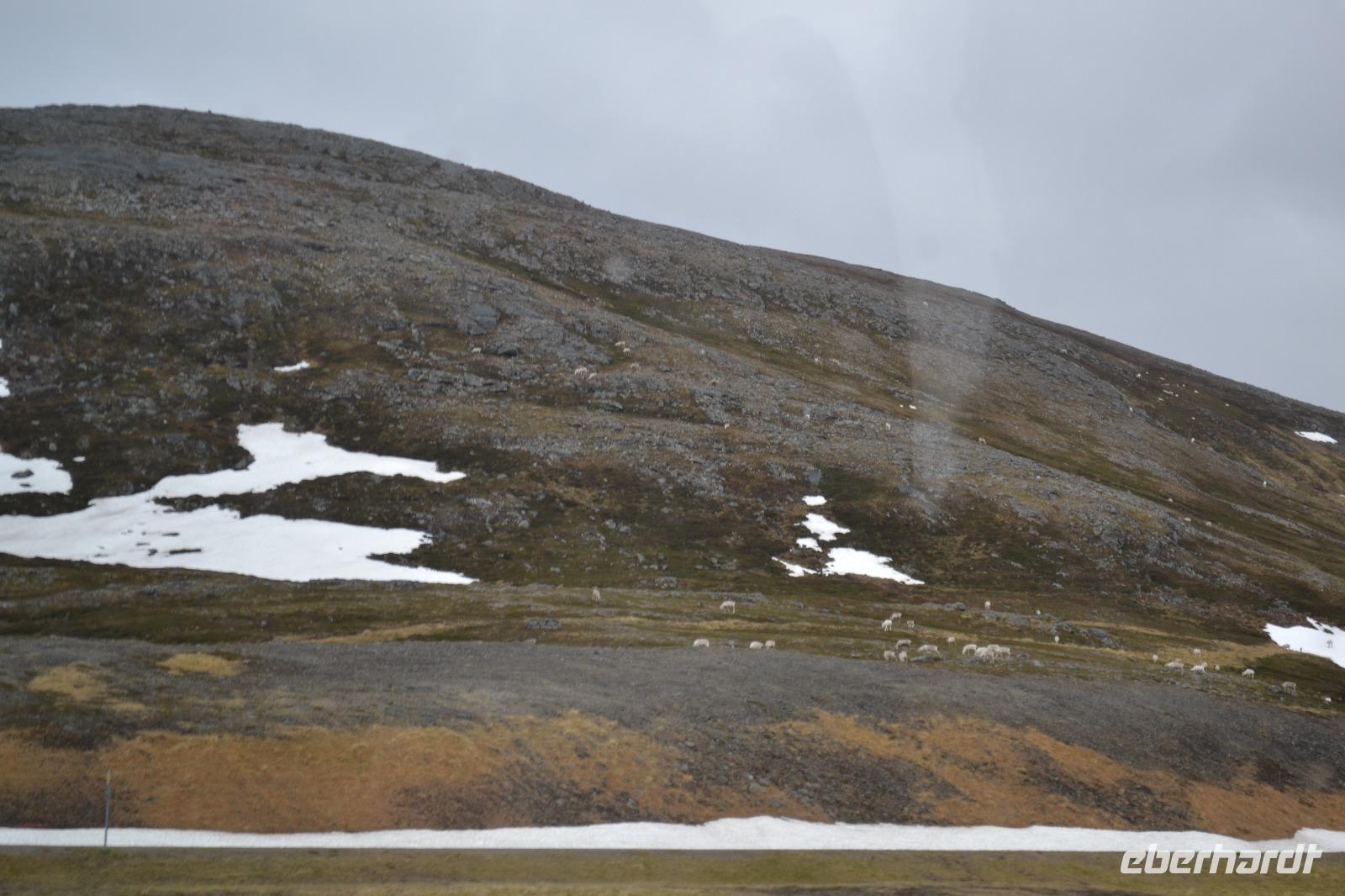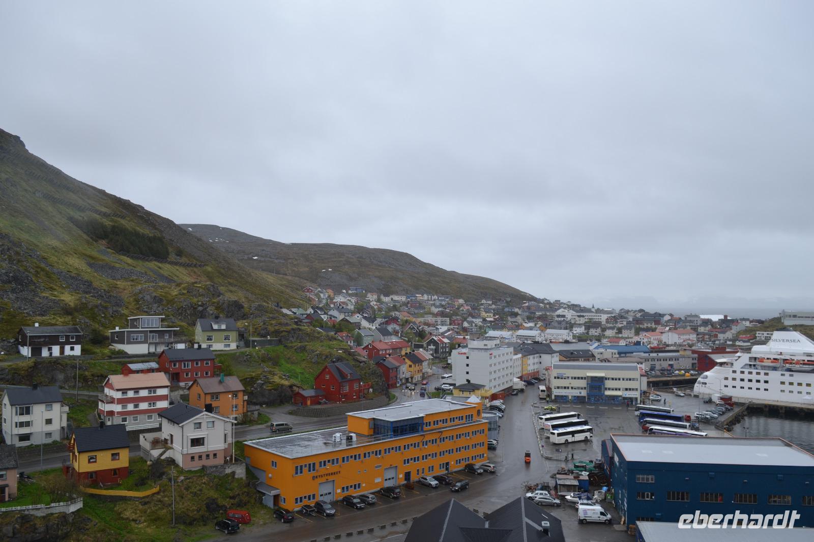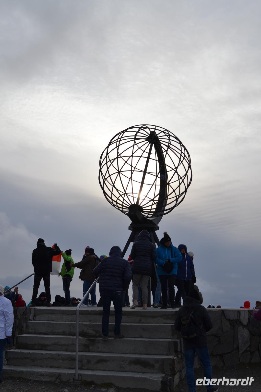 Heute ging es für fast alle Gäste zu dem Highlight der Reise, der Besichtigung des Nordkaps. Am frühen Nachmittag legte das Schiff im Hafen von Honningsvåg an, wobei es für einige Gäste bereits schon auf die ersten Landausflüge ging. Es stand die Besichtigung der Königskrabben, eine Fahrt auf die umliegenden Insel und Besuch der Dörfer, sowie der Transfer zum Nordkap an. Für mich und zwei weitere Gäste ging es gemeinsam per Bus über eine teilweise sehr schmale Straße vorbei an Herden mit Rentieren in der Ferne zum Nordkap. Dort standen uns dann 1,5 h zur freien Verfügung, bis es im Pendelverkehr wieder zurück zum Hafen ging. Wir hatten sehr Glück mit dem Wetter, denn als wir an dem großen Metallglobus ankamen lächelte uns die Sonne ein bisschen an. Die Nordkaphalle am 71. N Br. kam zum Aufwärmen von den kalten Nordwinden sehr recht, denn zum Nordpol waren es nur noch 2.100 km. Aber nicht nur die Weltkugel war eine Sehenswürdigkeit, sondern auch die 7 selbst gestalteten Taler der Kinder von der ganzen Welt, sowie die Metall Mutter mit Ihrem Kind an der Hand in der Mittsommernacht. Am Abend erreichten alle dann wieder das Schiff, denn in der Nacht 1 Uhr legte das Schiff ab nach Spitzbergen.
