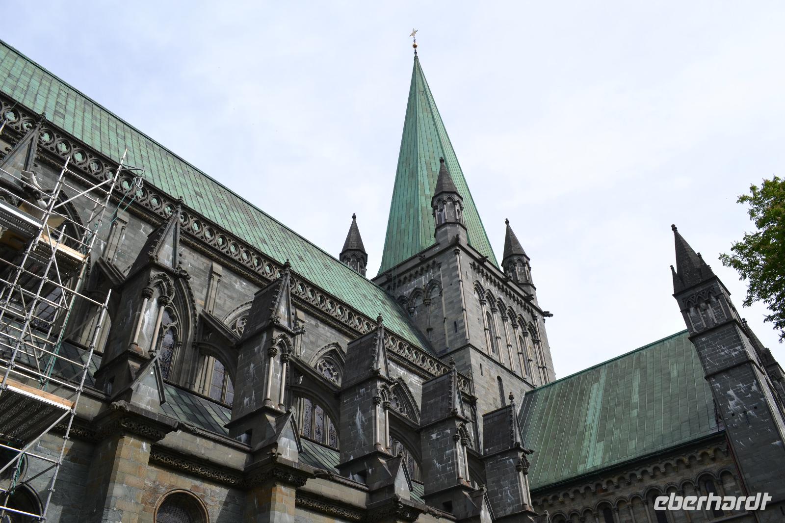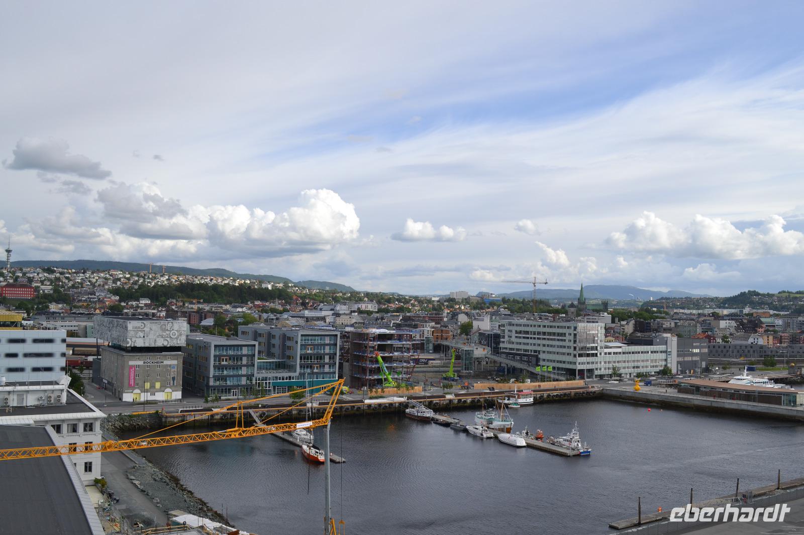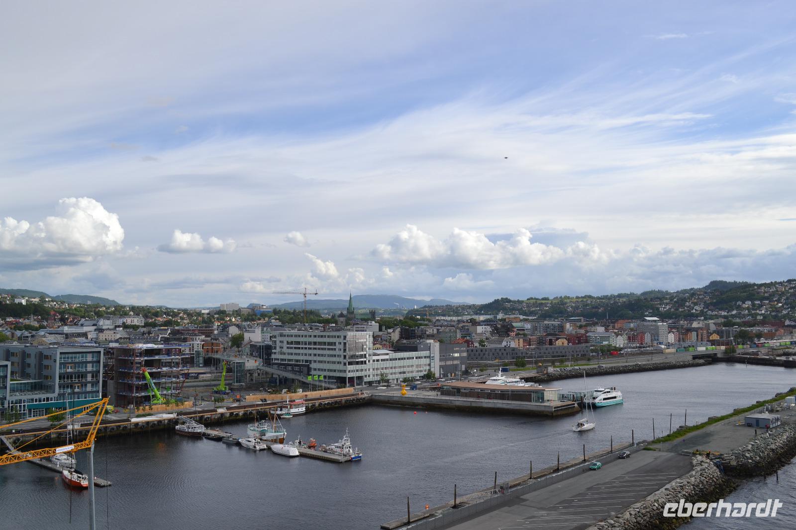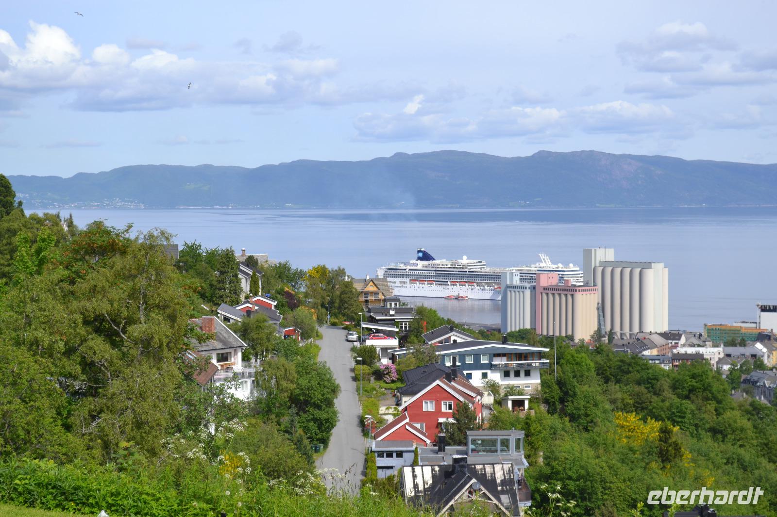 Heute legte die Mein Schiff 3 zum ersten Mal in seiner Laufbahn im Hafen Trondheim an, weshalb es vormittags an Bord noch eine feierliche Plaketten Übergabe gab. Doch für viele Gäste ging es zu dieser Zeit schon zu dem Landausflug in die 3. Größte Stadt Norwegens, mit dem 3. Größten Fjord. Bei einer 2 stündigen Panoramafahrt lernten wir die Stadt grob kennen. Der erste Fotostopp führte uns auf ein erhobenes Plateau mit Blick über die gesamte Stadt. Von dort aus erblickten wir nicht nur unser großes Schiff, sondern auch die Norweigan Cruise Line. Weiter ging es in die Innenstadt, wobei uns die deutsche örtliche Reiseleiterin sehr viel zu den umliegenden Gebäuden erklärte. Vorbei an der Universität, der Burgruinen und hin zum Nidaros Dom mit einer kurzen Fotopause. Danach ging es vorbei an den Speicherhäusern wieder zurück zum Hafen. Am späten Nachmittag legten wir wieder ab und machten uns auf den Weg zum letzten Hafen in Norwegen, vor der Rückreise nach Kiel am Mittwochmorgen.