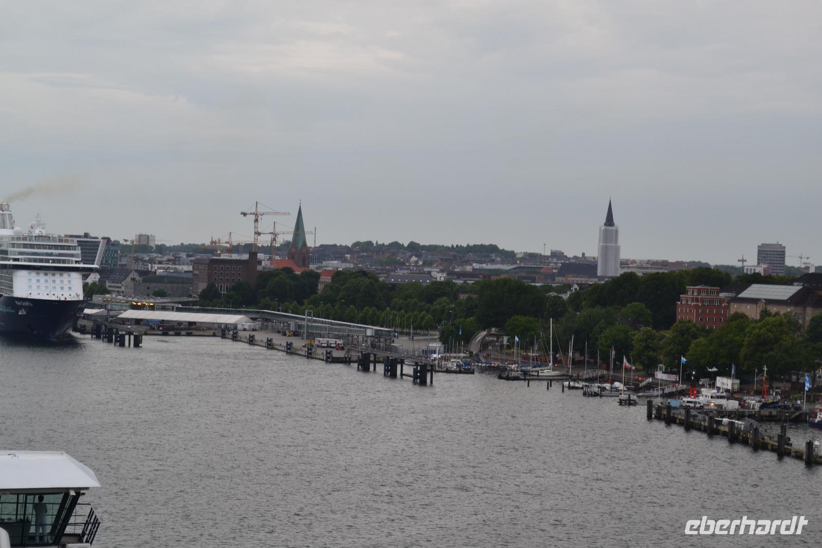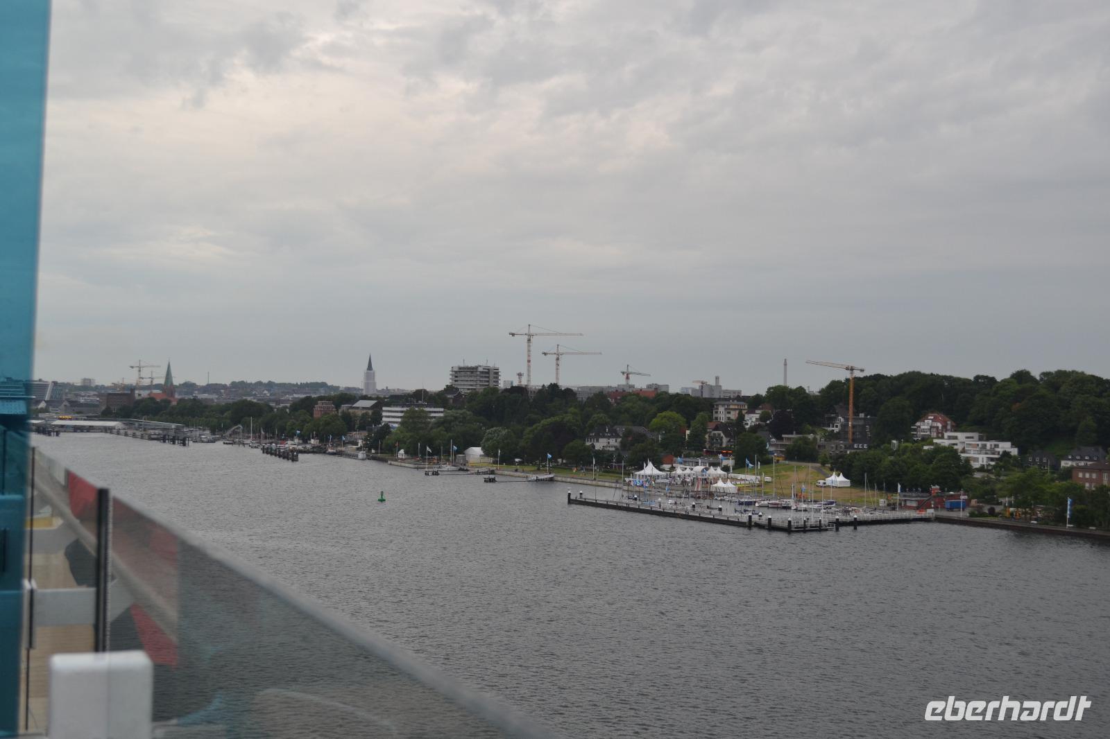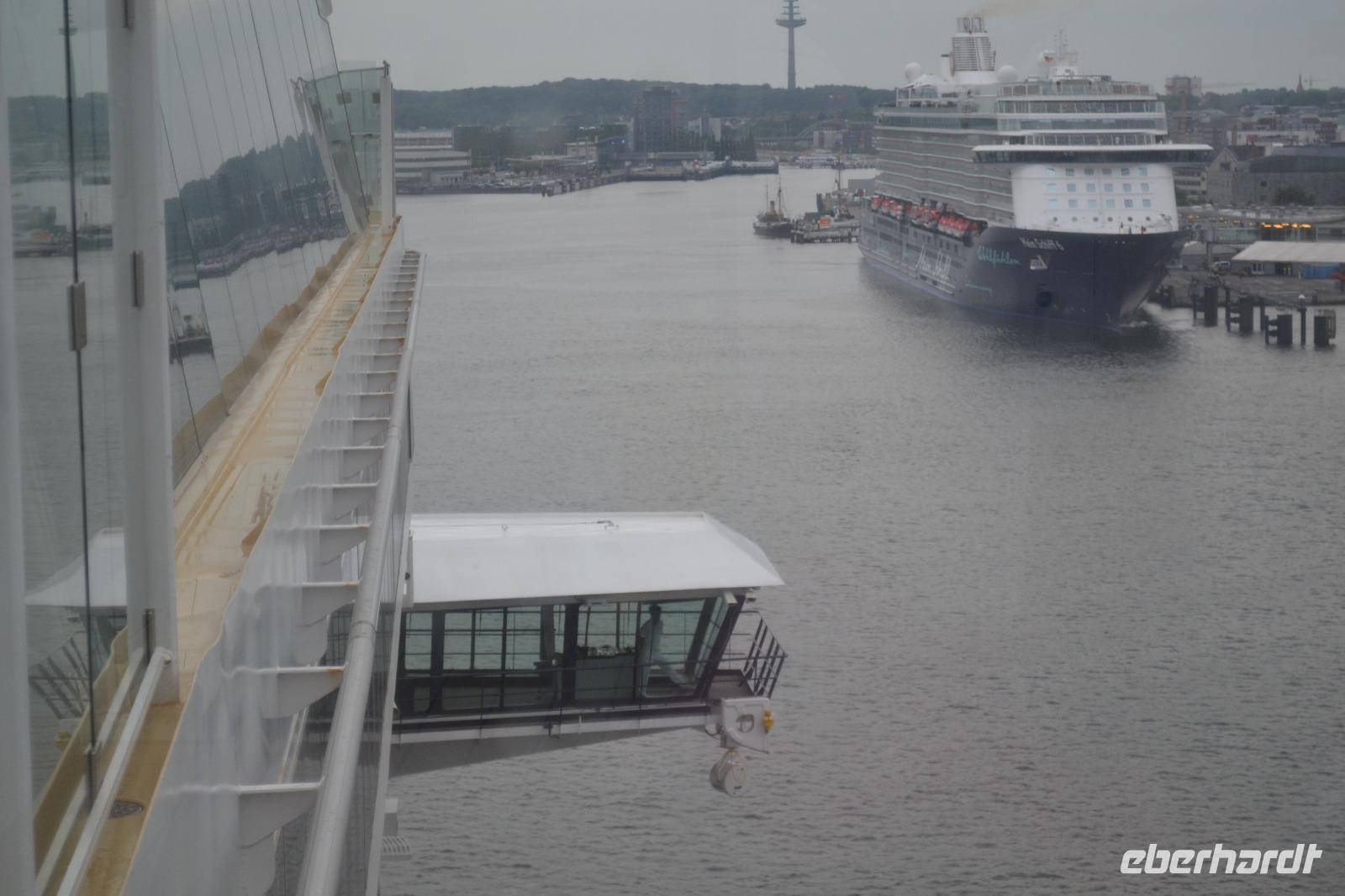 Bereits früh am Morgen starteten 18 Reisegäste von Dresden, über Leipzig und Berlin in Richtung Kiel. Die Fahrt verlief dank unserem Busfahrer Max reibungslos und fast Stau frei. Am frühen Nachmittag erreichten wir das Cruise Terminal am Ostseekai und konnten bereits von weiten das Mein Schiff 3 erblicken. Doch am Check-in mussten wir äußerst genau aufpassen, denn zeitgleich startete auch Mein Schiff 6 und blieb auch noch nach dem Auslaufen aus Kiel eine Weile hinter uns. Wir bezogen dank unseren Bordkarten individuell die Kabinen und nutzten die verbleibende Zeit bis zur Seenotrettungsübung für erste Erkundungen der insgesamt 14 Decks. Im Namen von TUI Cruises und der gesamten Besatzung wurden wir bei der Einführung auf den jeweiligen Musterstationen willkommen geheißen. Vor dem Abendessen genossen wir das atemberaubende Auslaufen aus dem Kieler Hafen mit der Mein Schiff 6 direkt hinter uns.