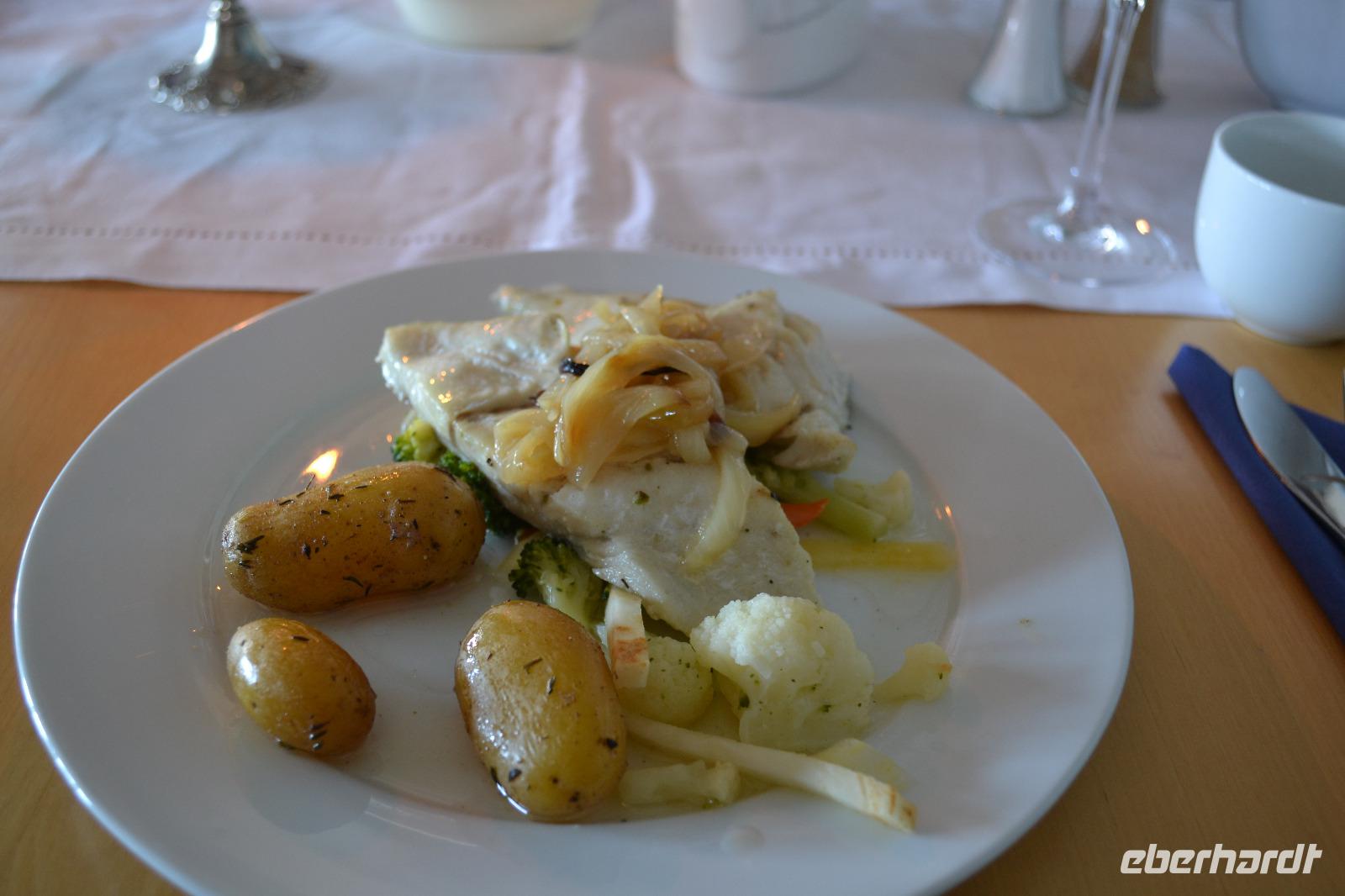 Nach einem ausgewogenen Frühstück starten wir heute den Tag mit viel Sonne im milden Klima der Rosenstadt. Das Ausflugshighlight heute war natürlich die berühmte Atlantikstraße mit einer Länge von 8,3 km und 8 Brücken. Somit ging es für mich und ein Ehepaar zunächst in das beschauliche Fischerdorf Bud am Atlantik. Dort wehte uns eine kalte Meeresbriese um die Nase. Der erste Stopp führte uns auf einen kleinen Hügel mit Blick auf das beschauliche Dorf, bevor wir dann kurz darauf bis an den kleinen Hafen fuhren. Weiter ging unser Ausflug über die Atlantikstraße auf ein Boot, welches uns auf die Insel Håholmen übersetzte. Dort angekommen zeigte uns eine Einwohnerin einen Kurzfilm über die Wikingerboote im Kino. Im Anschluss daran stärkten wir uns bei einem Mittagessen mit einem lecker zubereiteten Dorsch und Dessert. Auf dem Rückweg zum Schiff genossen wir bei dem 1 km Rundgang noch einmal den wahnsinnigen Blick auf die Atlantikstraße und die Fjorde. Am Abend sollte im Theater einen tolle Akrobatik Show stattfinden, doch auf Grund des starken Seeganges musste diese aus Sicherheitsgründen abgesagt werden. Doch das Comedy Ersatzprogramm konnte durchaus mithalten.
