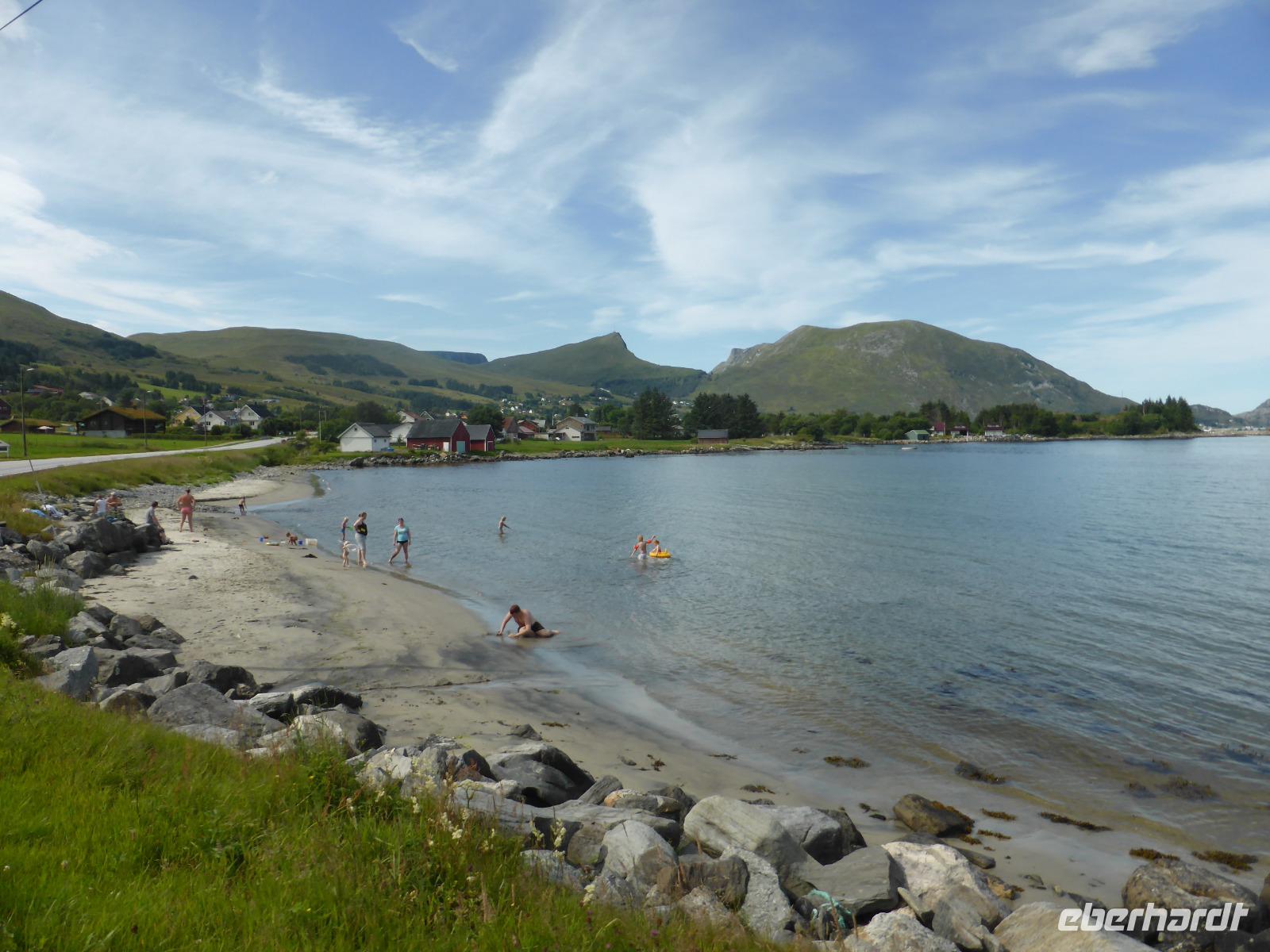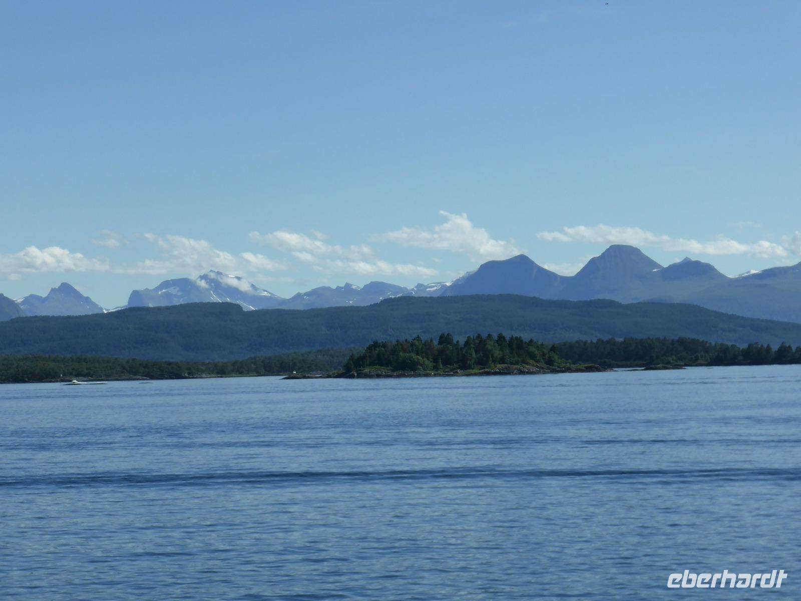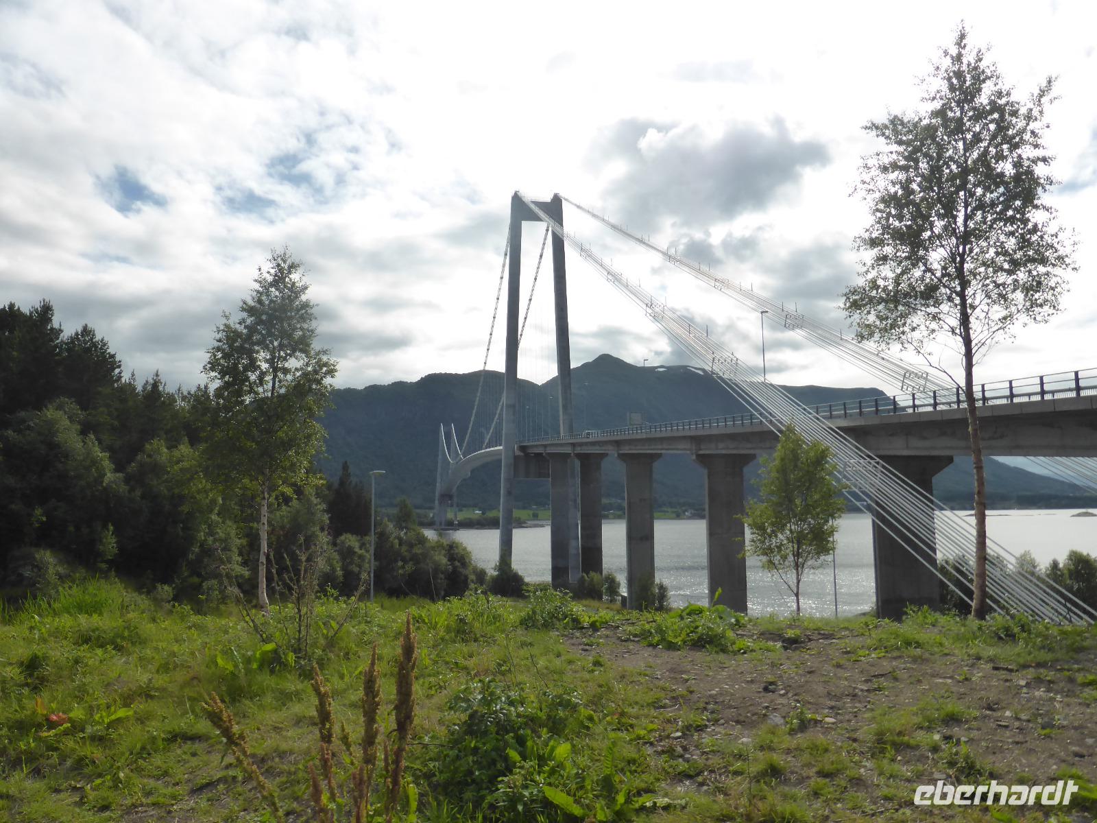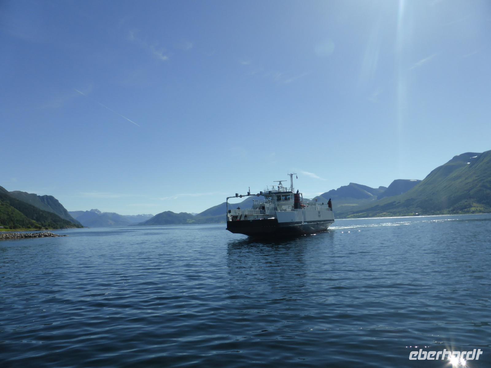 Am Morgen war der Bus wieder 100 prozentig einsatzbereit. Wir fuhren zum Geirangerfjord und von diesem über unzählige Kehren die „Adlerstraße" hinauf bis zum Aussichtspunkt „Ørnesvingen". Von da hatten wir einen tollen Blick auf den Geirangerfjord. Anschießend ging es nach Eidsdal und von dort mit der Fähre nach Linge. An den Gudbrandsjuvet-Stromschnellen legten wir unseren nächsten Halt ein. Hier boten Mädchen frische Erdbeeren an, die von unseren Gästen reichlich gekauft wurden. Auf der Passhöhe an der Grenze der Norddal- zur Rauma-Kommune hielten wir für einen weiteren Fotostopp und unsere große Mittagspause legten wir am Besucherzentrum des Trollstiegen ein. Der Trollstiegen ist eine 18 km lange Serpentinenstraße mit einer Steigung von bis zu 12 Prozent. Nach der Pause fuhren wir die Serpentinen hinunter und über Åndalsnes am Romsdalsfjorden zum Fähranleger in Afarnes um nach Sølsnes überzusetzen. Dort angekommen, hielten wir zunächst für einen Fotostopp an der Holzkirche von Sølsnes und später ein weiteres Mal an der Brücke „Gjemnesundbrua". Gegen 17.30 Uhr kamen wir an unserem Hotel in Kristiansund an. Wer wollte, der konnte nach dem Bezug der Zimmer mit zur Bronzestatue der „Klippfischfrau" gehen. Der Verkauf von Klippfisch und von Heringen war über zwei Jahrhunderte der wichtigste Erwerbszweig in Kristiansund, weshalb der „Klippfischfrau" und dem „Heringsjungen" Denkmäler gesetzt wurde.