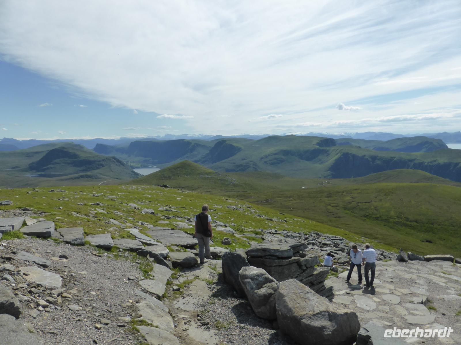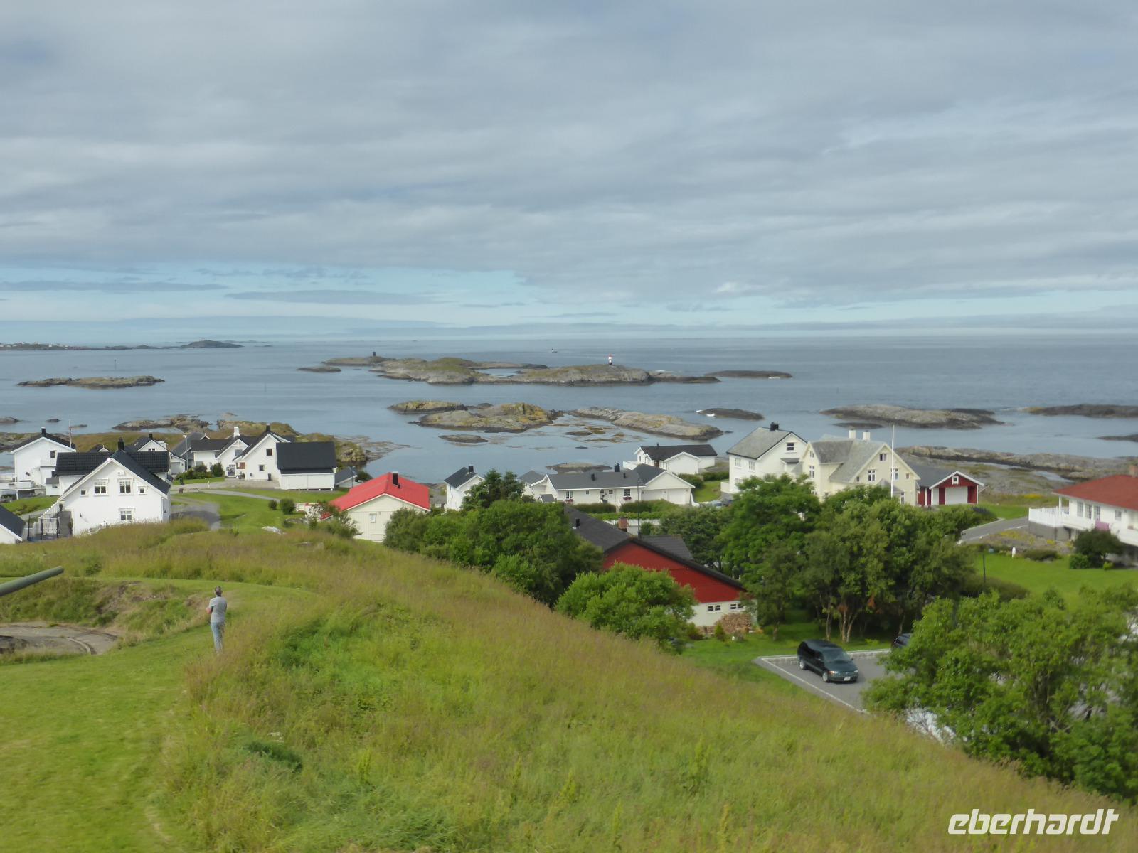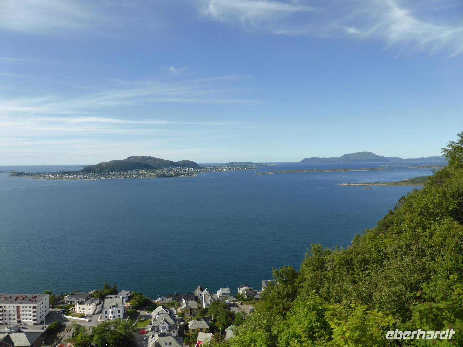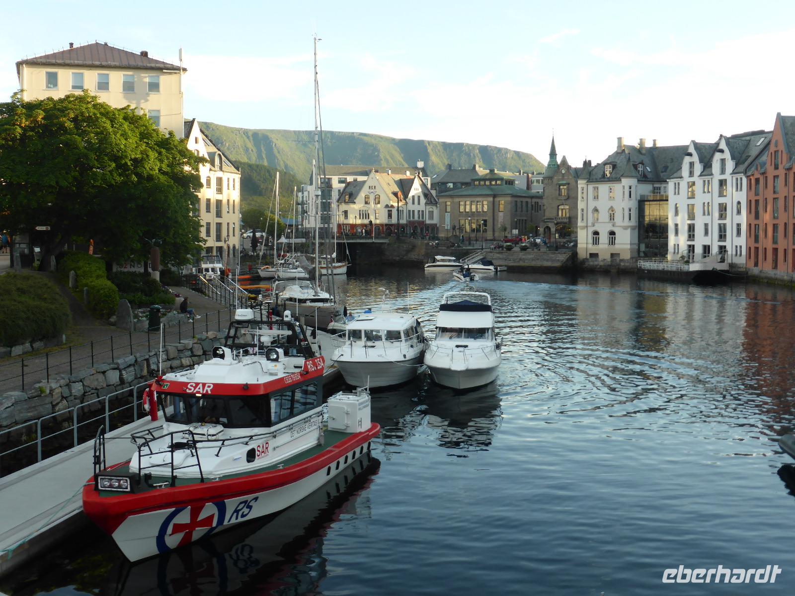 Håholmen Kårvåg spazierten wir auf der kleinen Insel Eidhusøya entlang des Rundweges, um die Brücke „Storseisubdbrua" fotografieren zu können. Dabei sahen wir Moltebeeren und eine Vielzahl weiterer Pflanzen. Unser nächster Halt war in dem kleinen Fischerort Bud. Oberhalb der Ortschaft befinden sich auf einem Hügel ein Steingarten sowie mehrere Artillerie-Geschütze des Atlantik-Walls. Das Ergan-Küstenfort-Museum informiert über die Kriegsgeschichte des Ortes und eine weitere Ausstellung über die Küstenkulturlandschaft. Von Bud aus ging es nach Molde, genauer gesagt auf den Aussichtsberg Varden. Von diesem hatten wir einen spektakulären Blick über die Insel- und Fjordwelt der Küste. Das Wetter war fantastisch. Unter uns, in weiter Entfernung lag Molde. Wir hörten einen Spielmannszug, welcher bestimmt im Zusammenhang mit dem gerade stattfindenden Jazz-Festivals stand. Nach unserem Aufenthalt auf dem Aussichtsberg fuhren wir hinunter zum Fähranleger und spazierten ins Zentrum von Molde. Überall waren Verkaufsstände aufgebaut und an jeder Ecke ertönte eine andere Musik, auch sehr viele Straßenmusiker waren zu sehen. Mit dem Fährschiff fuhren wir anschließend von Molde nach Furneset und von dort mit dem Bus weiter nach Ålesund zum Restaurant „Fjellstua" auf dem Aussichtsberg Aksla. Auch von diesem Berg hatten wir eine fantastische Sicht! Zufällig kam genau zu dieser Zeit das Hurtigrutenschiff an, was deutlich hörbar mit dem Signalhorn angezeigt wurde. Vom Aksla-Berg fuhren wir dann zu unserem Hotel und trafen uns dort nach dem Abendessen zu einem gemeinsamen abendlichen Spaziergang durch Ålesund.