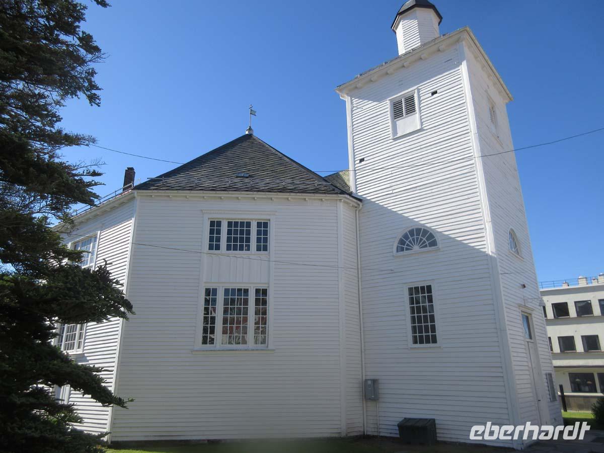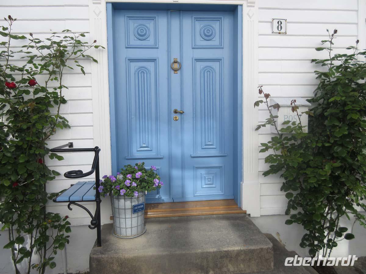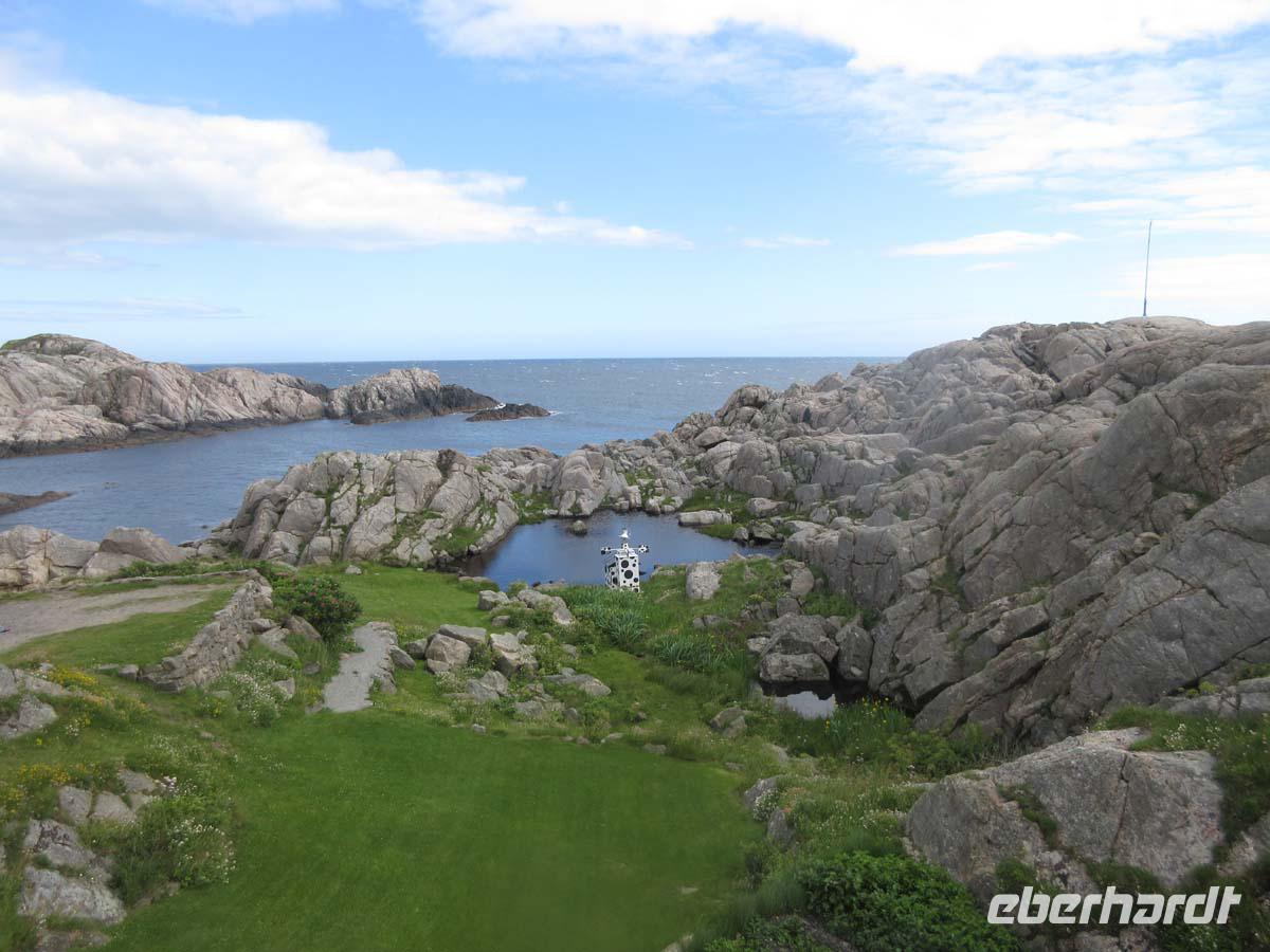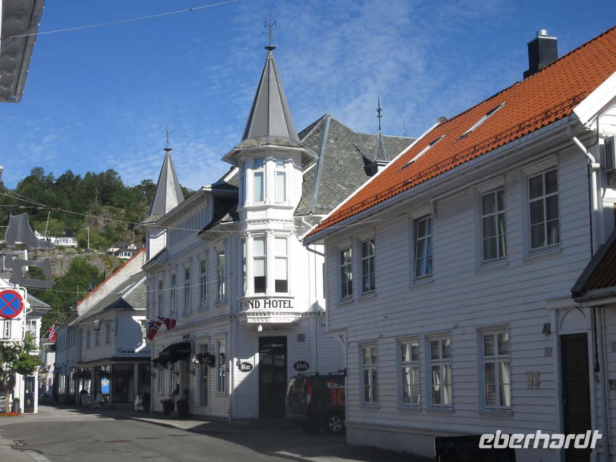 Nach einem recht frühen Morgenmahl befinden wir uns zeitig in Hirtshals vor der Fähre. Von hier aus setzen wir in 2,5 Stunden mit einer Katamaranfähre nach Kristiansand in Norwegen über. Die See ist recht unruhig und es schaukelt ganz gewaltig. Doch schon sind wir angelandet und holen in der Stadt noch 10 Gäste ab, welche mit dem Flugzeug gekommen sind. Einige Gäste nutzen die Gelegenheit auch zum Geld abheben, denn Geldwechsel nehmen norwegische Banken so gut wie gar nicht mehr vor. Man wird freundlichst an die Bankomaten verwiesen. Unser erstes Ziel ist das kleine Städtchen Mandal, welches mit einer schönen Altstadt voller weißer, denkmalgeschützter Häuser besticht. Es verfügt auch über einen neue Kulturhalle mit einer überaus gut sortierten Touristinformation, in der wir uns mit reichlich Infomaterial für die nächsten Ziele eindecken können. Nach einem kleinen Spaziergang durch die Stadt setzen wir unsere Reise zum Kap Lindesnes fort. Vorher jedoch stoppen wir an Rorbuer, den typischen Fischerhütten, von denen in Fururholmen eine ganze Menge zu sehen sind. Dann sind wir am Kap Lindesnes, dem südlichsten in Norwegen auf dem seit 1655 ein Leuchtfeuer existiert. Jedoch sollte man nicht meinen, dass man Dieses ohne Eintritt betreten kann. Ganz geschickt sind Kassenhaus und Visitorcenter so in die schartige Küstenlandschaft gesetzt, dass man das eigentliche Kap entwder gar nicht, oder nach einer halsbrecherischen Klettertour über Granitfelsen nur aus der Ferne sieht. Das soll die Gäste jedoch nicht stören. Eberhardt-travel übernimmt (im Ggs. zu manch anderen) selbstverständlich die Eintrittskosten! Den heutigen Leuchtturm von 1915 kann man besteigen und dort ist es so stürmisch, dass es einen fast wegweht. Zusätzlich sind Kanonenstellungen und Bunker aus dem 2. Weltkrieg zu sehen und eine stattliche Sammlung schicker Miniaturleuchttürme. Für die Eintrittskarte bekommt man im großen Visitorcenter noch einen Kaffee. Unser Tag endet in Farsund. Alle Zimmer unseres Hotels haben einen Balkon mit direktem Blick auf das Wasser. Und dann wieder diese himmlische Ruhe.......