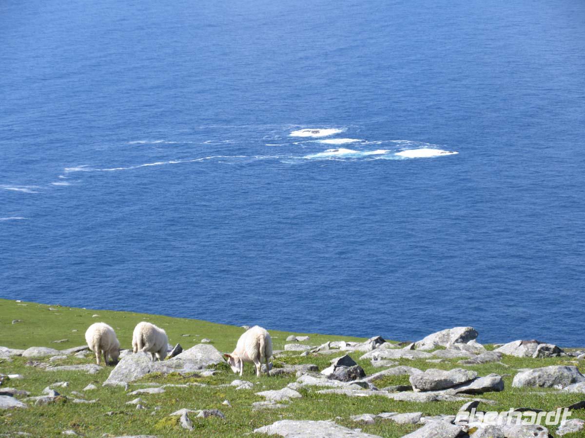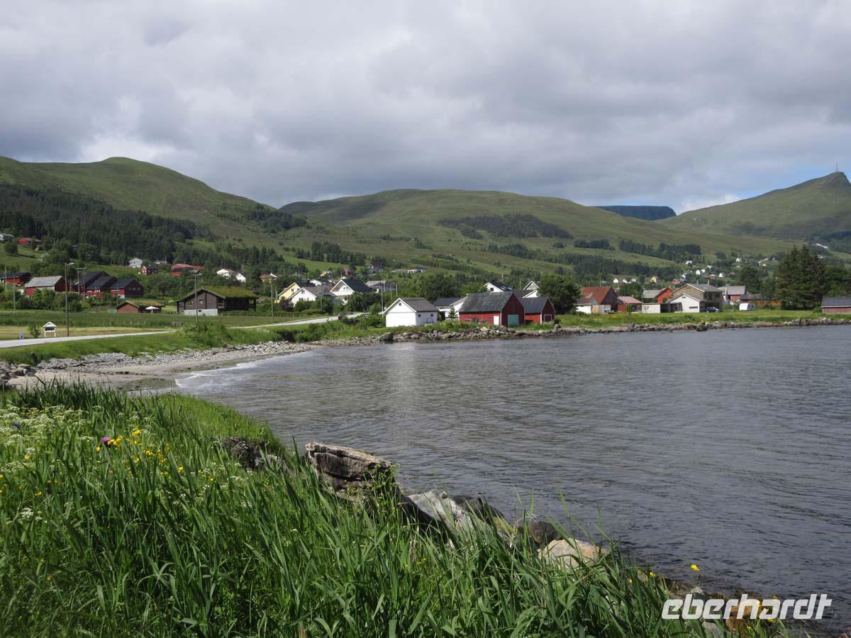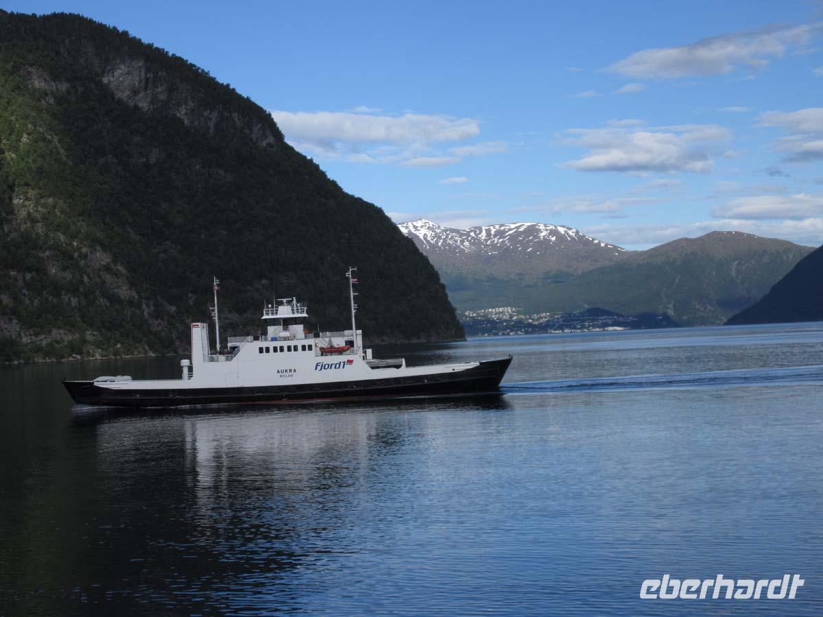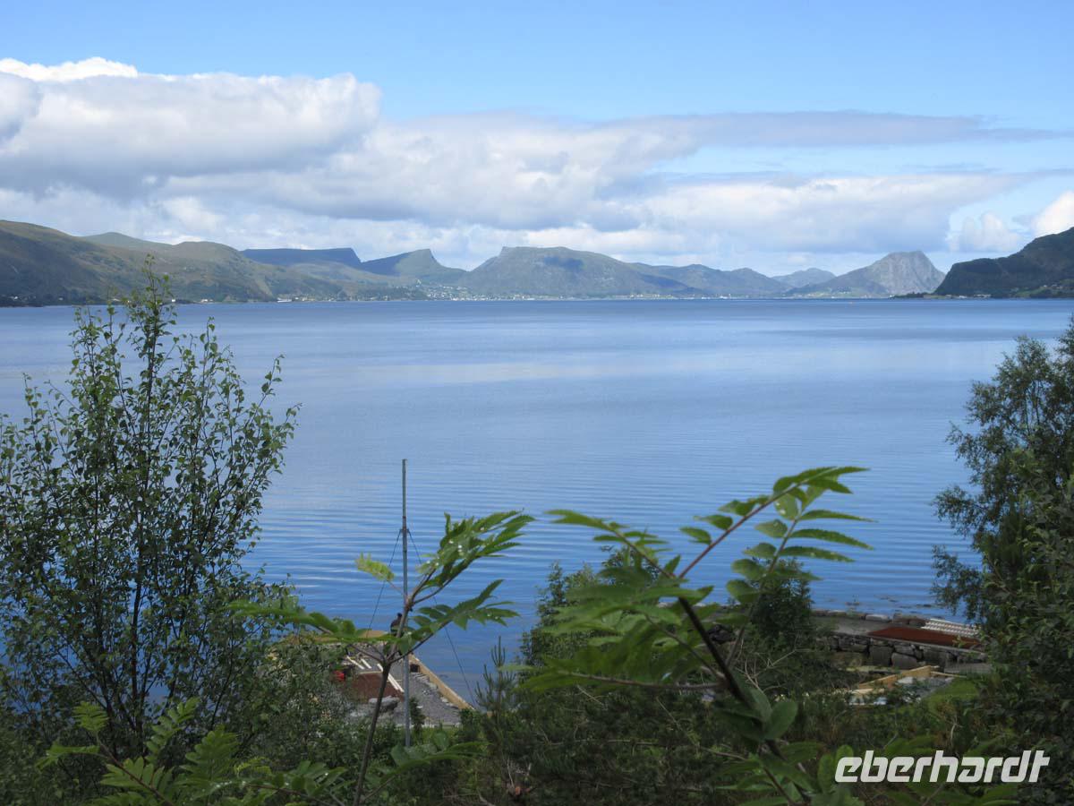 Unser Weg führt uns heute zunächst zum Westkapp. Oberhalb von Slagnes machen wir einen Stop mit prima Panorama auf den Sandnes- und Rovnefjord, sowie noch einen in der Bucht von Leikanger. Hier gibt es sogar einen kleinen Sandstrand. Die Sonne scheint und die Landschaft ist leiblich. Wiesen wechseln sich mit hohen Fichtenbeständen ab. Zum Kap geht es steil bergauf und oben pfeift ein guter Wind. Die Sicht ist klar und man schaut weit auf das Meer hinaus. Der Name Vestkapp stimmt nicht so ganz. Man wollte mit dieser Titulierung mehr Touristen in die Gegend locken. Das scheint nicht sehr gut geklappt zu haben, denn das Cafe auf dem Kap, sowie die Toiletten sind alle zugenagelt. Nur Schafe und eine paar Wohnmobile sind zu sehen. Schön, dass es nicht so überlaufen ist. Das finden wir alle besser. Weiter geht die Reise nach Süden. Wir fahren ein Stück am 109 km langen Nordfjord mit Mittelgebirgscharakter entlang, bevor wir selbigen auf der Fähre von Starheim nach Isane überqueren. Gegen abend erreichen wir das kleine Städtchen Florö, wo wir in einem schönen Hotel direkt am Hafen logieren. Das hervorragende Abendbueffet und das schöne Wetter verlangen geradezu noch nach einem Abendspaziergang in dem leiblichen Örtchen.