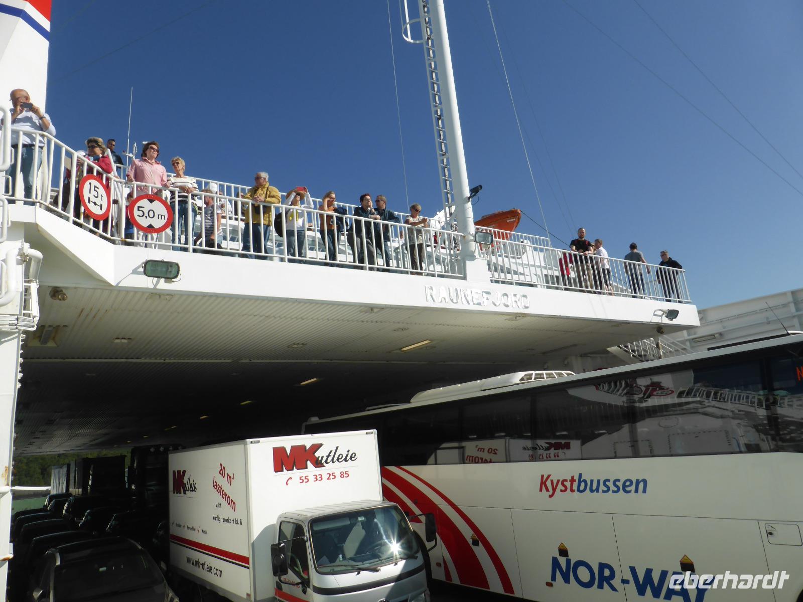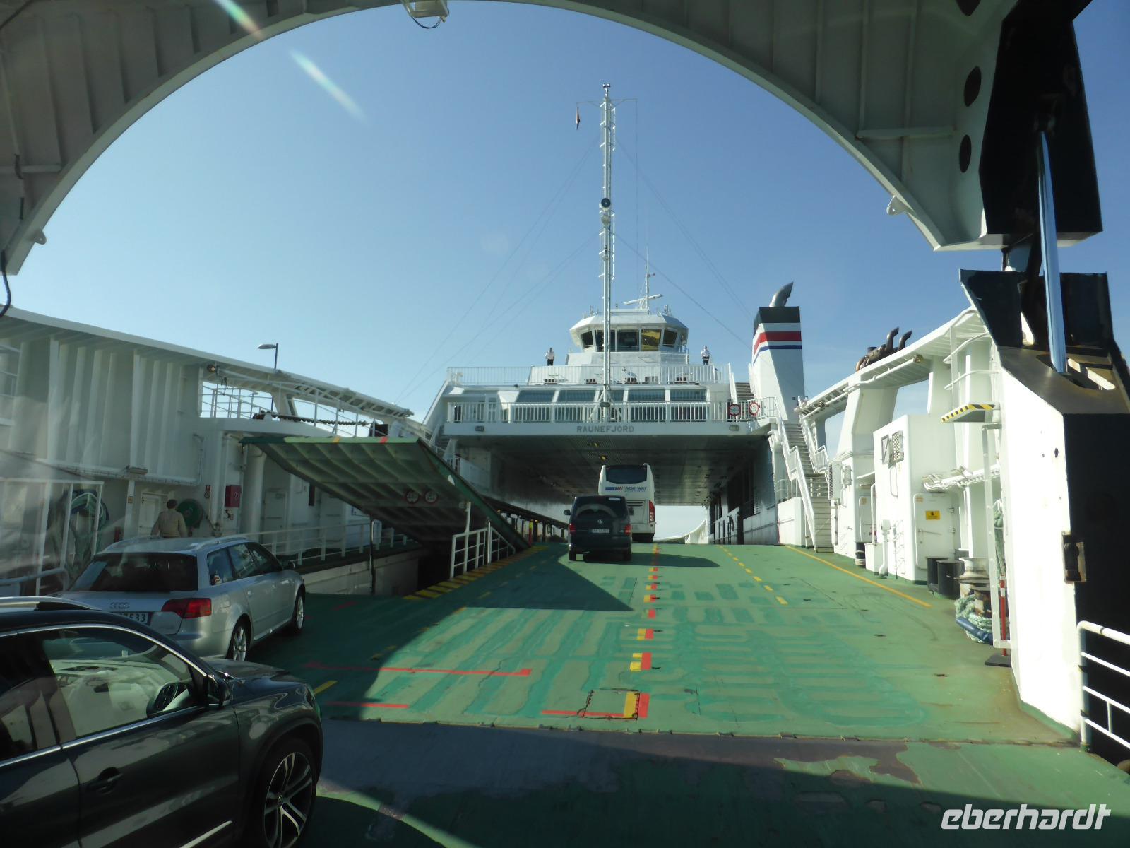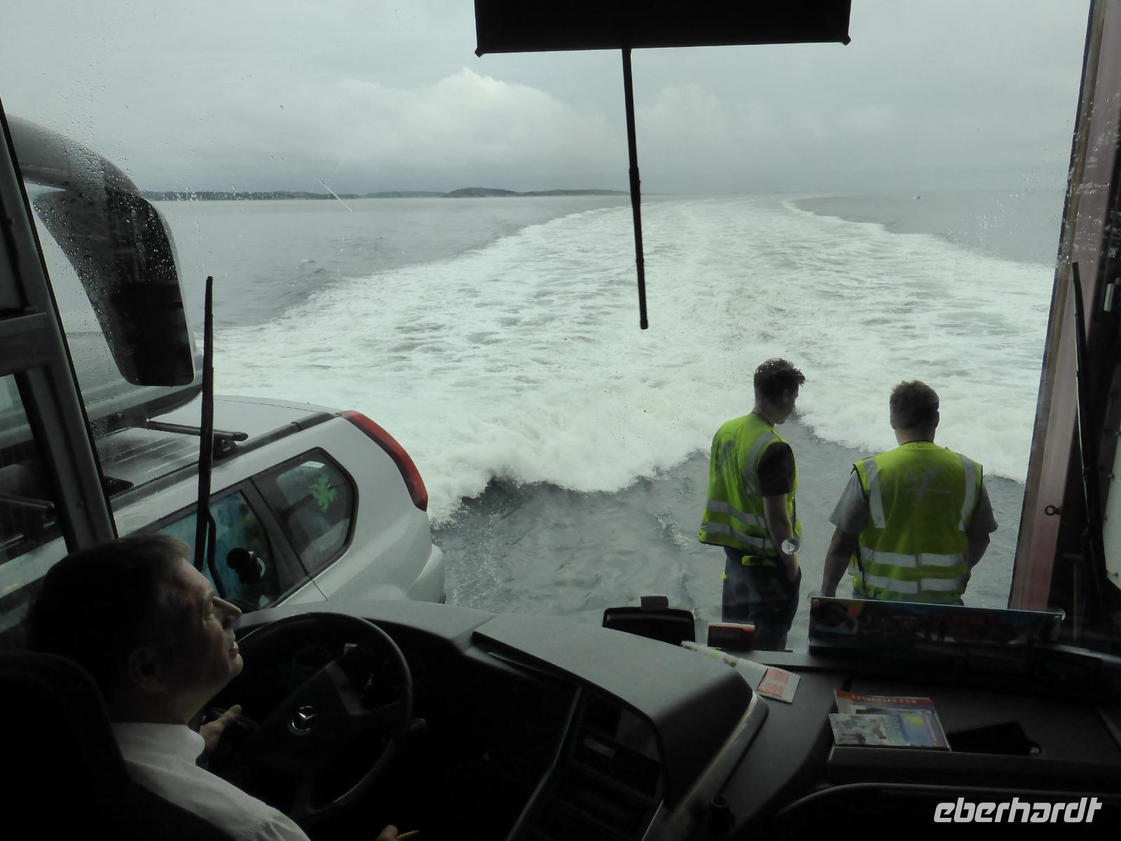Nach dem Frühstück fuhren wir zum Fährhafen nach Hirtshals. Dort angekommen, konnten wir noch bevor unser Bus auf das Schiff fahren durfte, bereits zu Fuss an Bord gehen. Damit waren uns gute Sitzplätze sicher. Erst ganz zum Schluss konnte der Bus auf das Fahrzeugdeck fahren. Es war so mit Fahrzeugen zugestellt, dass die Ladeklappe während der ganzen Fahrt offen bleiben musste.
