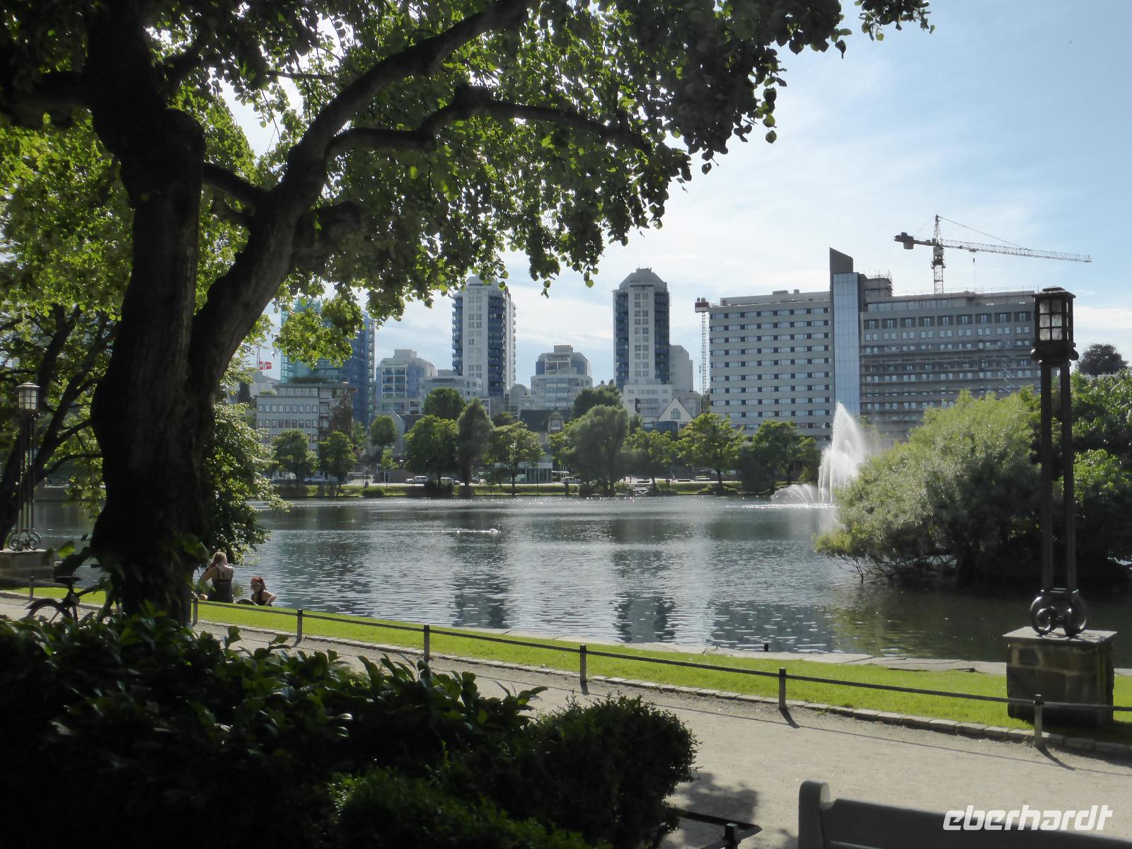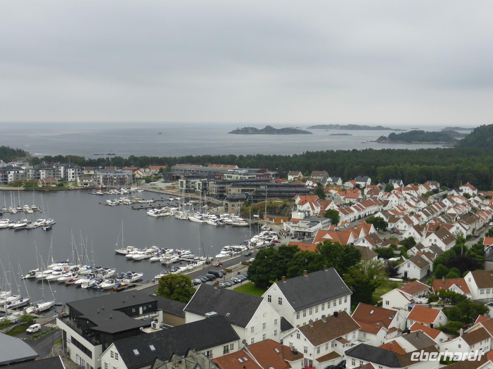 Nach einem Fotostopp am Magma-Geopark erreichten wir Flekkefjord. Zu beiden Seiten des Flusses Danneviga schmücken weiße Holzhäuser das Stadtbild des hübschen und sauberen kleinen Ortes. In der Freizeit spazierten wir vom kleinen Yachthafen am Lafjord bis zur Holzkirche der einstigen „Holländerstadt". Von Flekkefjord aus ging es dann weiter zum Rasthof Veikro/ Vikesa, welcher sich an einem See liegend, fantastisch für unser Picknick eignete. Zuerst nieselte es noch ein wenig, doch nach dem Ende der Vorbereitungen und passend zur Essen-Freigabe hörte es auf. Nach dem Picknick fuhren wir zum Anleger der Rødne-Fjordcruise nach Stavanger. Die Fahrt mit dem Ausflugschiff „M/S Rygertroll" zum Lysefjord war ein Erlebnis. Wir hatten Glück mit dem Wetter und konnten den Prekestolen sehr gut sehen. Zurück in Stavanger bummelten wir durch Alt-Stavanger mit seinen Holzhäuschen, kleinen Vorgärten und Gaslaternen. Hier wohnten im 18./19. Jh. die Fischer, Seeleute und Handwerker. Von Alt-Stavanger ging es dann zum Dom und in die Geschäftsstraßen. Unser Fahrer Jörg holte uns nach der Freizeit mit dem Bus ab und gemeinsam ging es zum Hotel. Unsere Koffer hatte Jörg bereits am Nachmittag ausgeladen und im Hotel untergestellt.