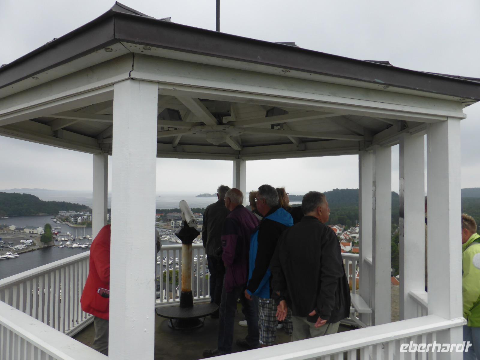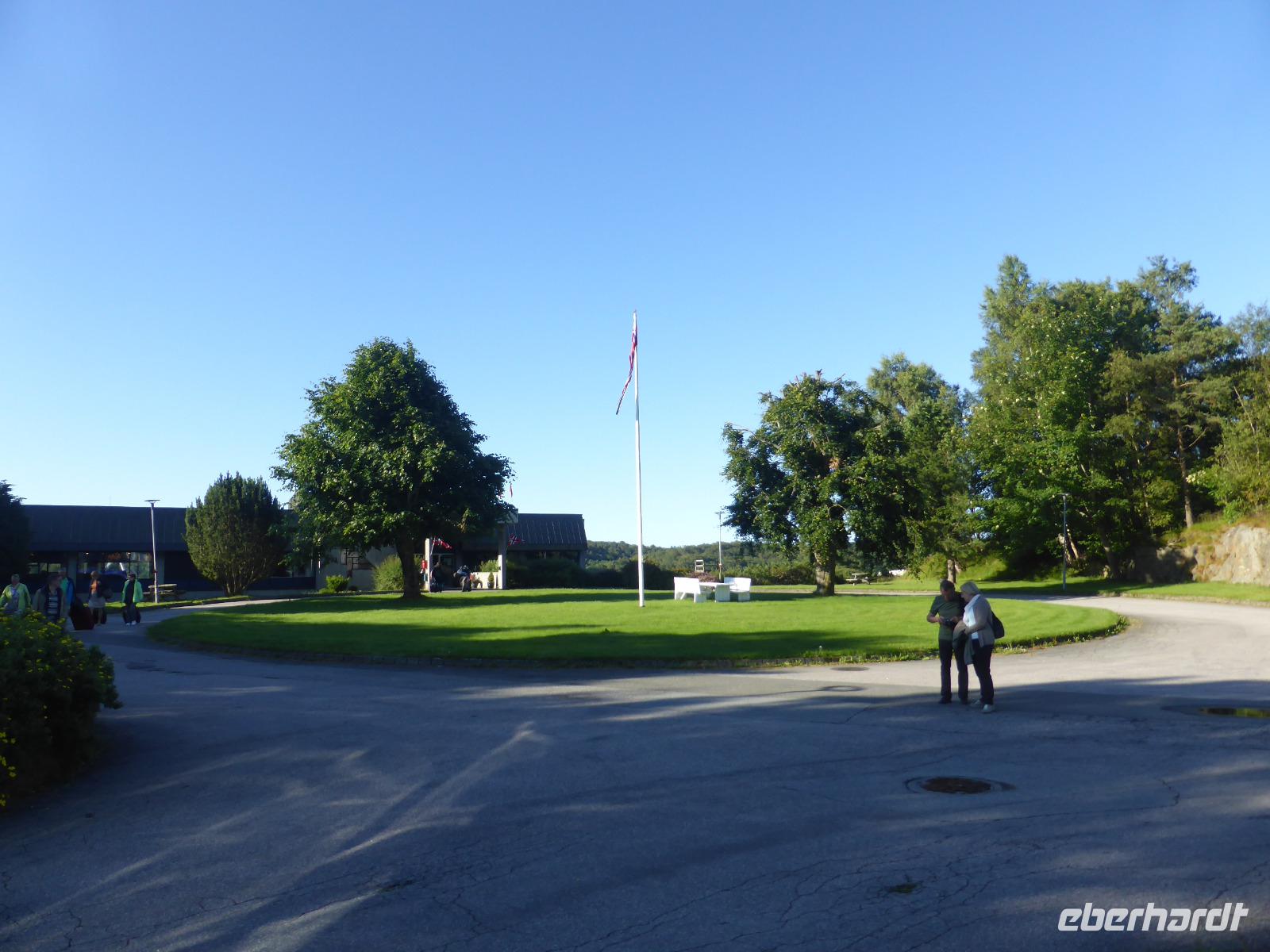 Während der Fährüberfahrt hatten wir schönes Wetter und eine ruhige See. In der norwegischen Stadt Kristiansand angekommen, holten wir zuerst weitere Gäste unserer Reisegruppe, die tags zuvor mit dem Flugzeug angekommen waren, vom Hotel ab. Gemeinsam ging es dann nach Mandal. In diesem hübschen kleinen Ort besuchten wir den Aussichtsberg „Uranienborg", von welchem wir einen schönen Blick auf den Ort und den vorgelagerten Schärengürtel hatten. Anschließend war noch etwas Freizeit für einen kleinen Spaziergang. Nach einem Fotostopp am Strand von Mandal fuhren wir weiter zum Leuchtturm von Lindesnes. Er steht auf dem Kap Lindesnes, dem südlichsten Festlandspunkt Norwegens, und wurde im Jahre 1915 fertiggestellt. Wir genossen die spektakuläre Lage und den Blick auf die Felslandschaft bei strahlendem Sonnenschein. Vom „Südkap" fuhren wir dann noch ca. eine Stunde bis nach Farsund zu unserem Fjordhotel, direkt am Fjord gelegen. Auch alle Zimmer lagen in Richtung des Fjords, so dass jeder von uns das schöne Panorama genießen konnte.