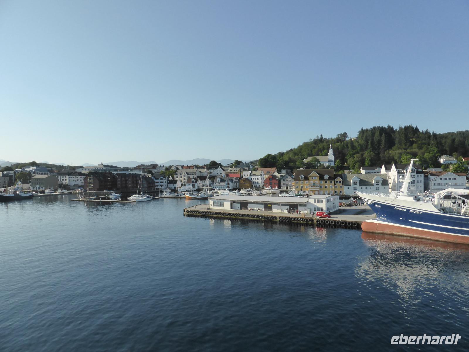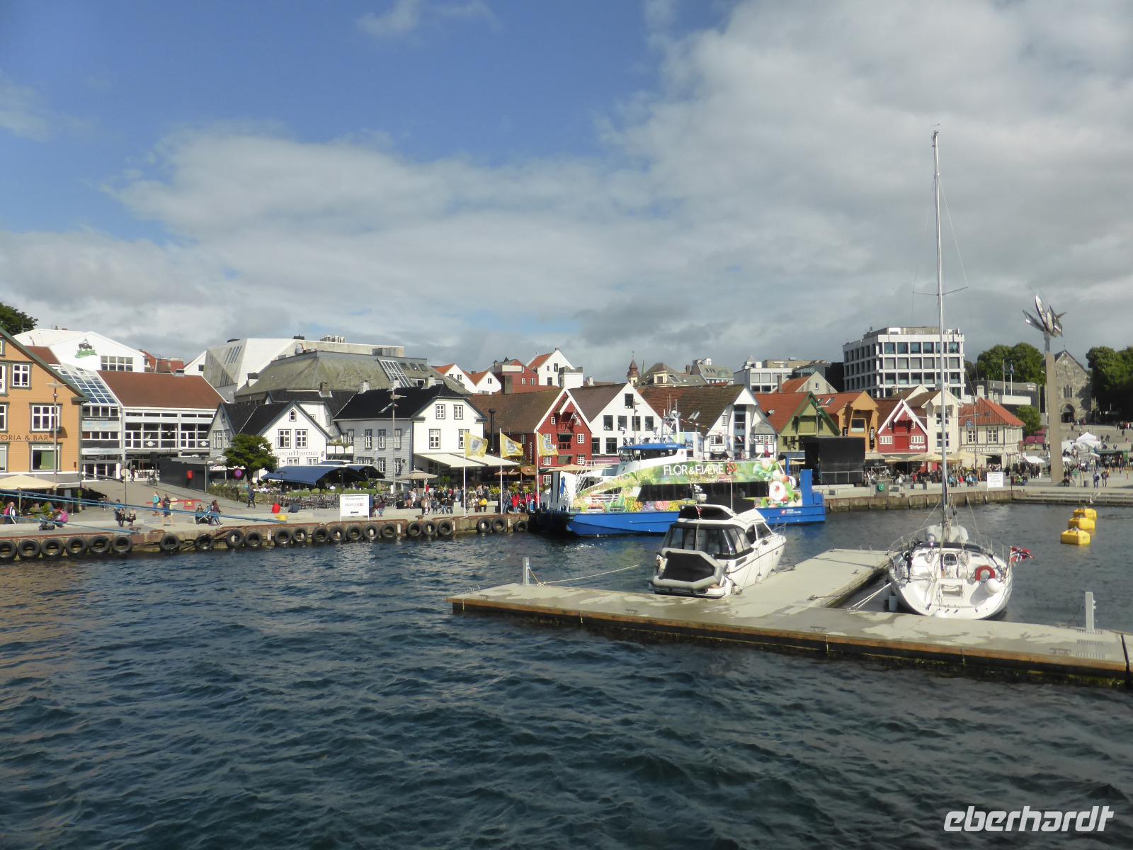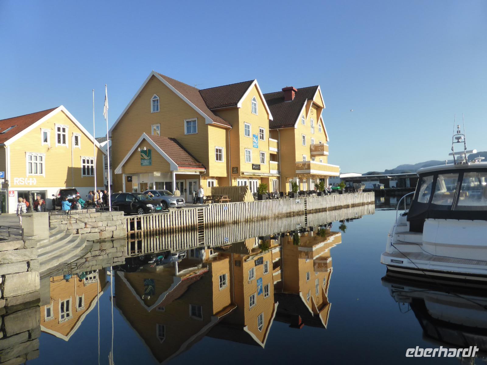 Gegen 16.30 Uhr kamen wir in Stavanger an und wurden im „Thon-Hotel Maritim" zum letzten gemeinsamen Abendessen erwartet. Danach verabschiedeten wir unsere Fluggäste. Sie blieben im Hotel und flogen am nächsten Tag von Stavanger nach Deutschland zurück. Alle anderen Gäste fuhren mit dem Bus zum Fährterminal in Tananger. Nach der Abholung und Ausgabe der Kabinenschlüssel ging es sofort an Bord. Kurz vor 21.00 Uhr legte das Schiff in Richtung Dänemark ab.