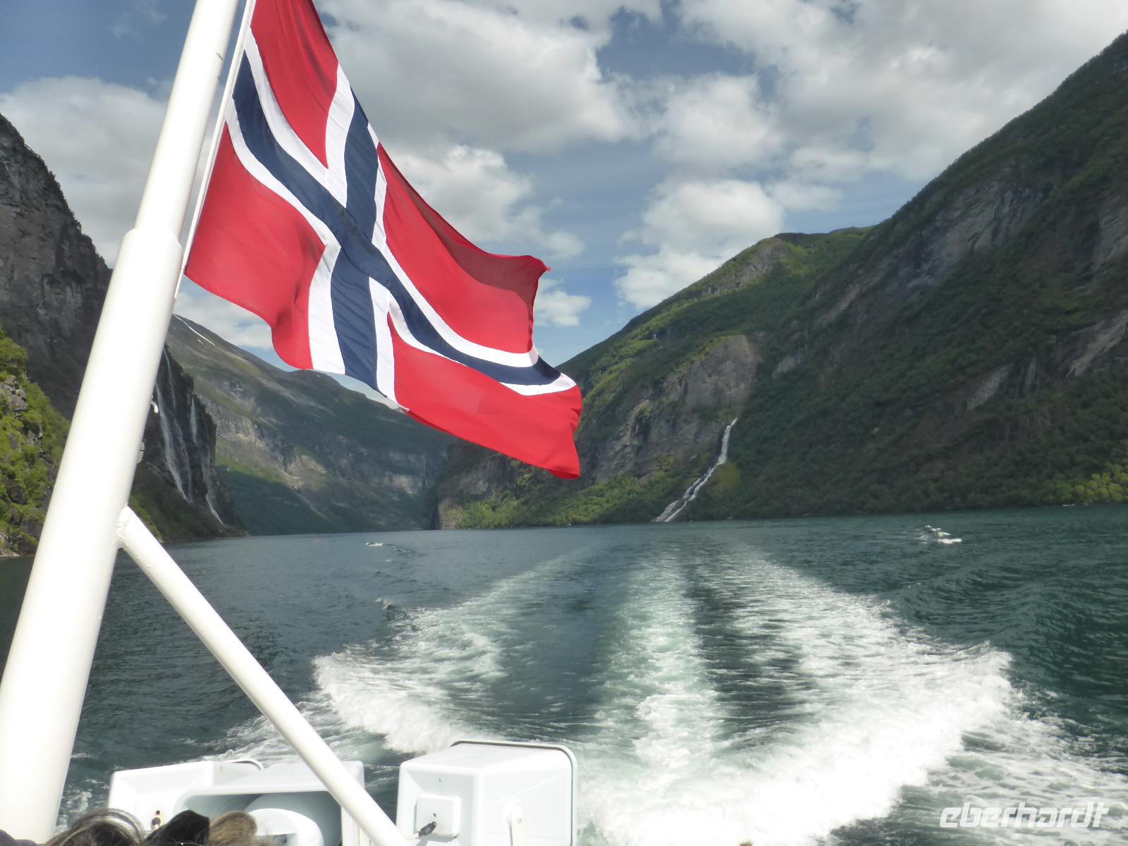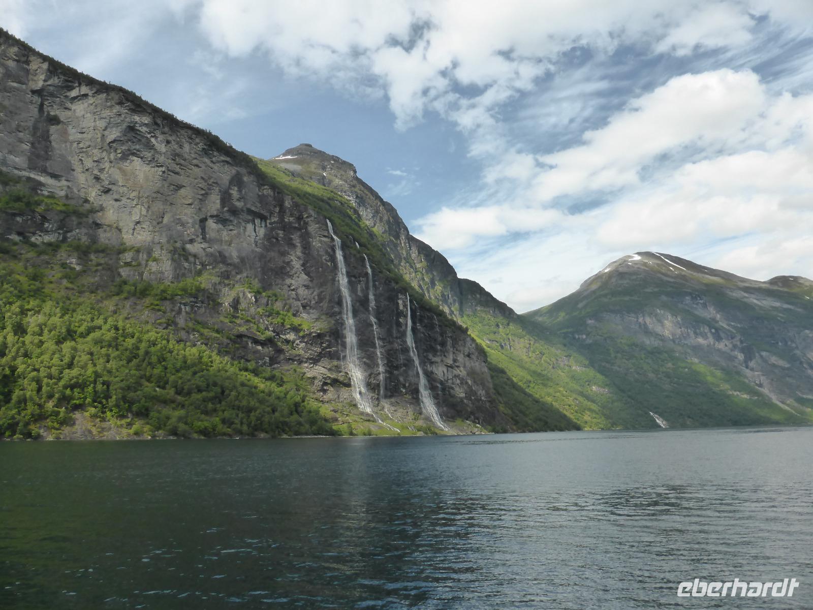 Unsere nächste Station war die Schiffsanlegestelle in Geiranger am Geirangerfjord. Die Fahrt vorbei an den Wasserfällen der „Sieben Schwestern", dem „Freier" und dem „Brautschleier" sowie an den auf Felsvorsprüngen stehenden, zumeist verlassenen Berghöfen war ein einmaliges Erlebnis. Wieder in Geiranger angekommen, fuhren wir nach der Freizeit hinauf zum Aussichtspunkt. Der Blick auf den Fjord und die vielen schönen Fotomotive bildeten einen schönen Tagesabschluss. Danach ging es wieder hinunter nach Geiranger zum „Hotel Union". Hier trafen wir auf eine Hochzeitsgesellschaft und genossen im Anschluss sowie am nächsten Morgen die reichhaltigsten Buffets unserer Reise.