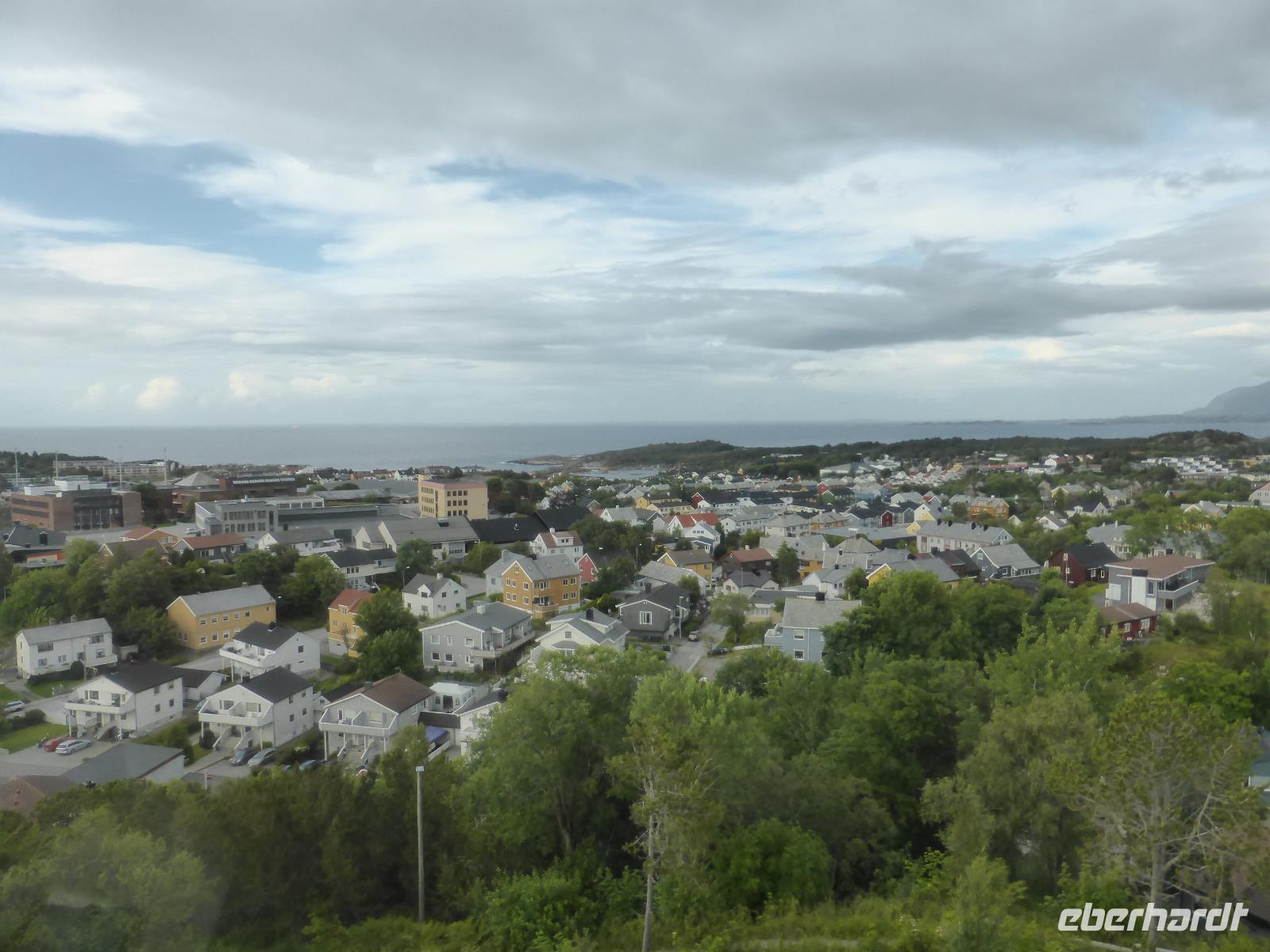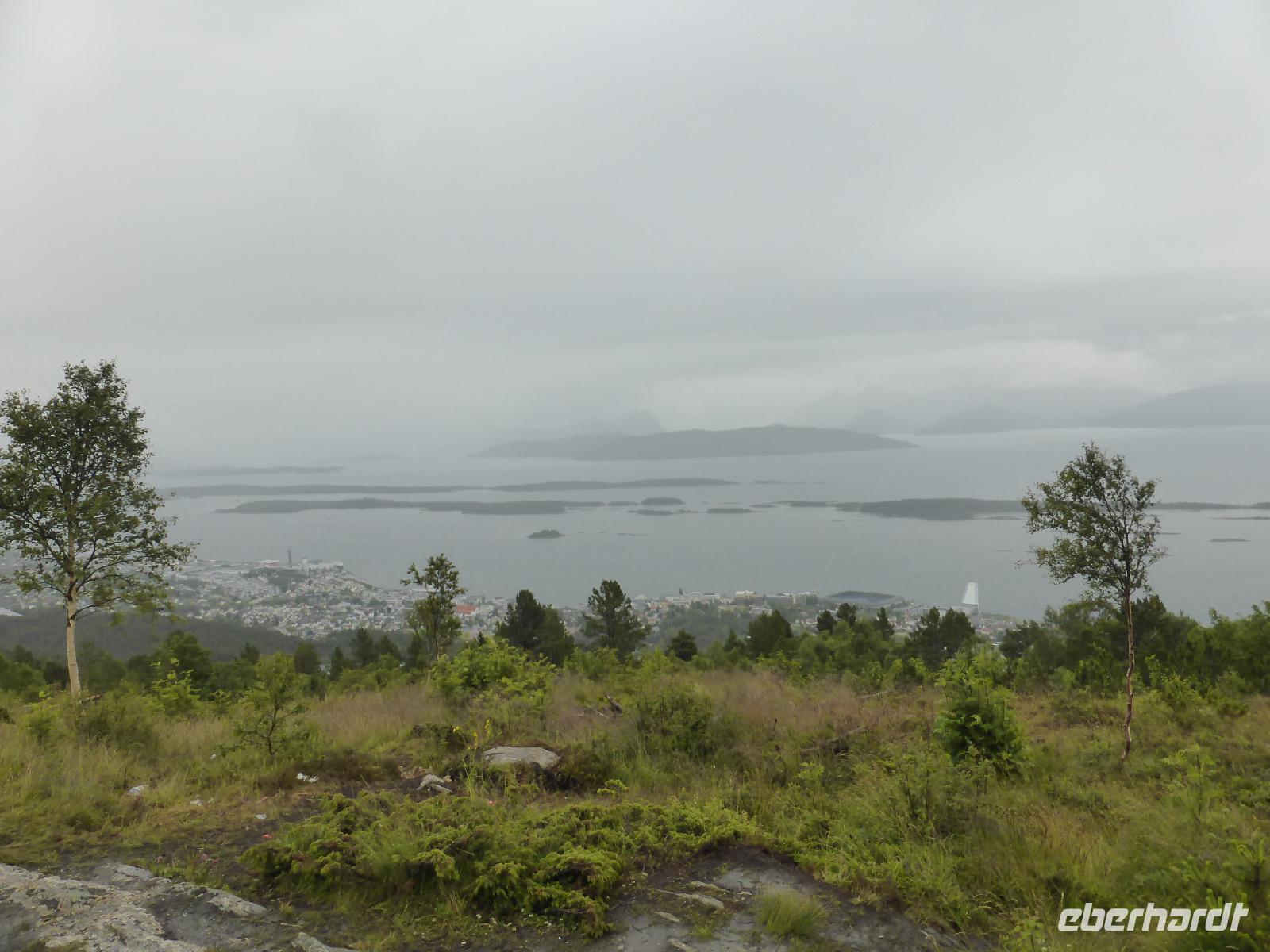 Von Bud aus ging es nach Molde, genauer gesagt auf den Aussichtsberg Varden. Von diesem hatten wir einen recht guten Blick über die Insel- und Fjordwelt der Küste. Was fehlte, war der berühmte Gipfel-Blick. Dafür war die Sicht nicht gut genug. Unter uns, in weiter Entfernung lag Molde, wo . gerade das jährliche Jazz-Festival stattfand. Vom Aussichtsberg fuhren wir hinunter zum Fähranleger und spazierten ins Zentrum der Stadt. Überall waren Verkaufsstände aufgebaut und an jeder Ecke spielten Straßenmusiker. Mit dem Fährschiff fuhren wir anschließend nach Furneset und von dort mit dem Bus weiter nach Alesund zum Restaurant „Fjellstua" auf dem Aussichtsberg Aksla. Auch von diesem Berg hatten wir eine recht gute Sicht, obwohl der Himmel bedeckt war. Vom Aksla-Berg fuhren wir dann hinunter zu unserem Hotel in Alesund.
