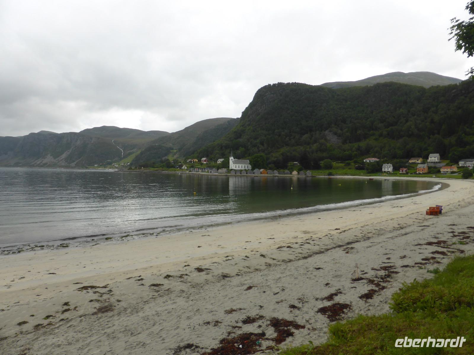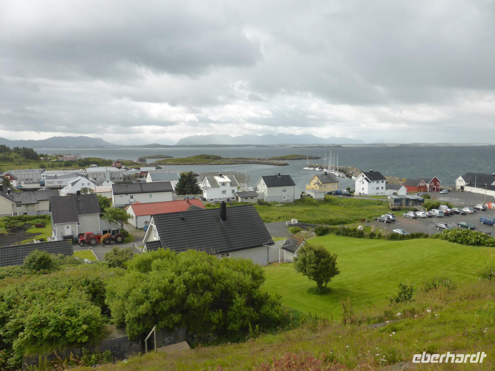 Håholmen Kårvåg spazierten wir auf der kleinen Insel Eidhusøya entlang des Rundweges, um die Brücke „Storseisubdbrua" fotografieren zu können. Dabei sahen wir Moltebeeren und eine Vielzahl weiterer Pflanzen. Unser nächster Halt war in dem kleinen Fischerort Bud. Oberhalb der Ortschaft befinden sich auf einem Hügel ein Steingarten sowie mehrere Artillerie-Geschütze des Atlantik-Walls. Das Ergan-Küstenfort-Museum informiert über die Kriegsgeschichte des Ortes und eine weitere Ausstellung über die Küstenkulturlandschaft. Leider goss es während unseres Aufenthaltes aus allen Kübeln! Zum Glück boten uns die Mitarbeiterinnen des Museums an, einen Film im Museumskino anzusehen.