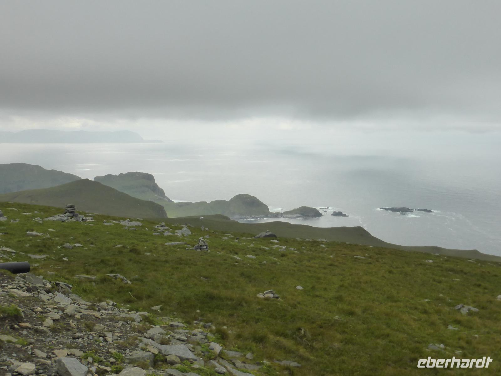 Am Vormittag standen wieder zwei Fährüberfahrten auf dem Programm, die Fähre von Sulesund nach Hareid und die Fähre von Arvik nach Koparnes. Mit dem Bus ging es dann durch traumhafte Landschaften entlang des Syltefjorden und Vanylvsfjorden ans Westkap. Als ob man in den Himmel hineinfahren würde, so kamen uns die letzten Kilometer der Anfahrt vor. Erst kurz vor der Ankunft öffnet sich das Panorama in seiner ganzen Breite. Das Westkap ist ungefähr 496 Meter hoch. Um bis zur höchsten Stelle zu gelangen, gingen wir vom Parkplatz aus noch etwa 200 Meter und wurden oben mit einem Rundum-Blick belohnt.