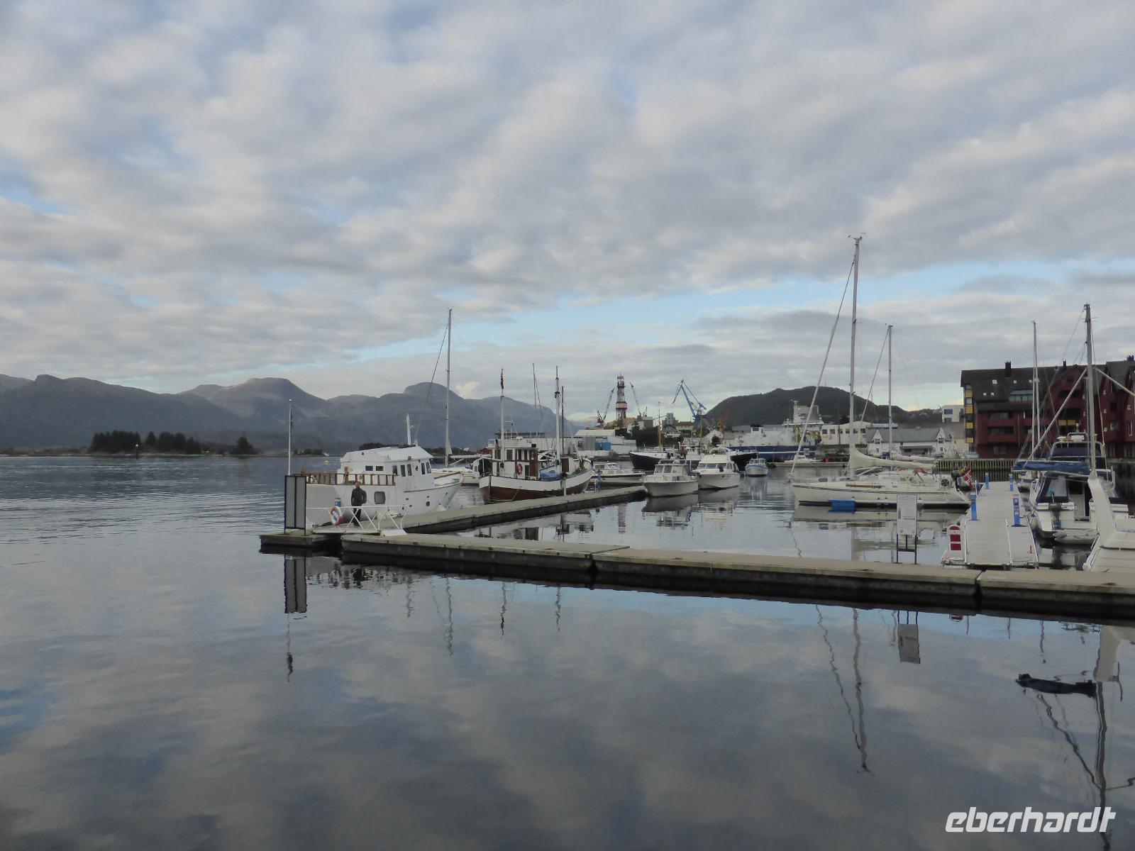 Am Nachmittag erreichten wir den Fähranleger Stoerheim. Mit der Fähre ging es über den Nordfjord nach Isane und von dort nach einem weiteren Fotostopp an einem beeindruckenden Wasserfall zu unserem Hotel in Floroe. Die Stadt ist die westlichste Norwegens und unser Hotel lag direkt am Hafen mit Blick in den Norddalsfjord. Bei tiefstehender Sonne genossen wir die Kulisse des kleinen Hafens und der in Szene gesetzten Lagerhäuser.