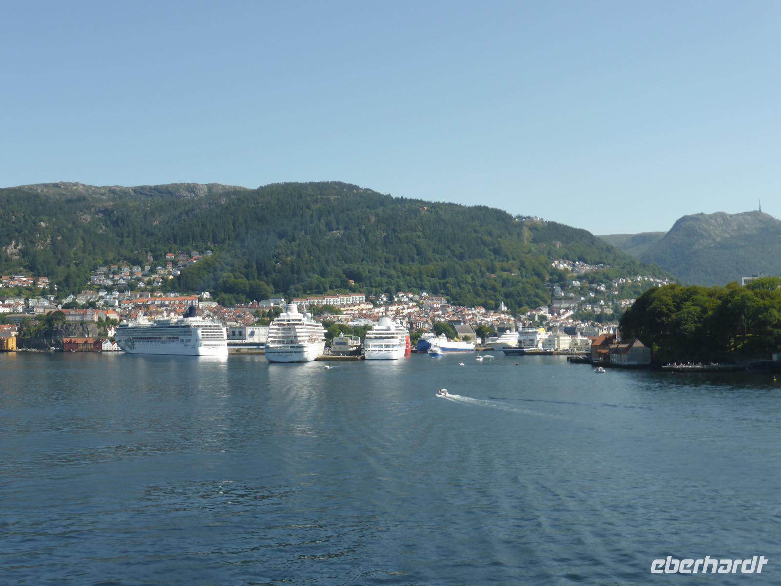 10.Tag: Mittwoch, den 19.07.17: Hurtigruten von Florø nach Bergen – Stadtführung in Bergen (237 km)
