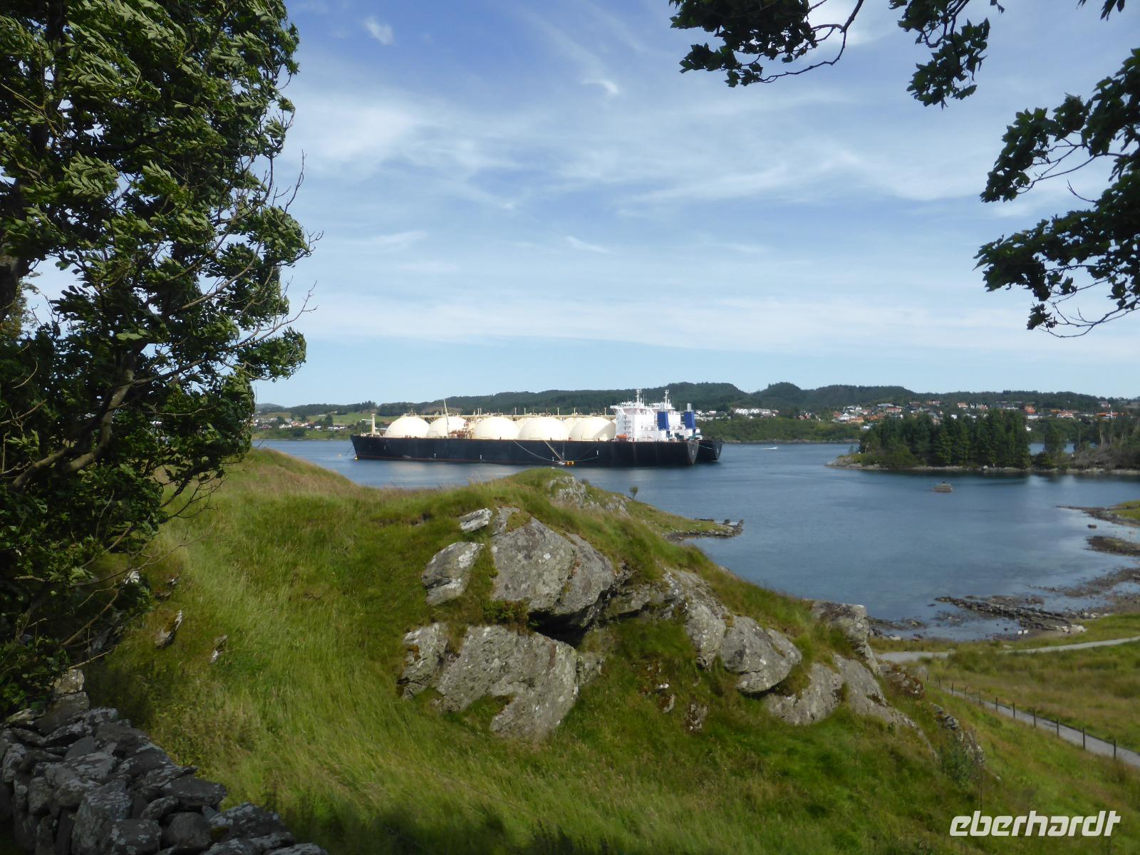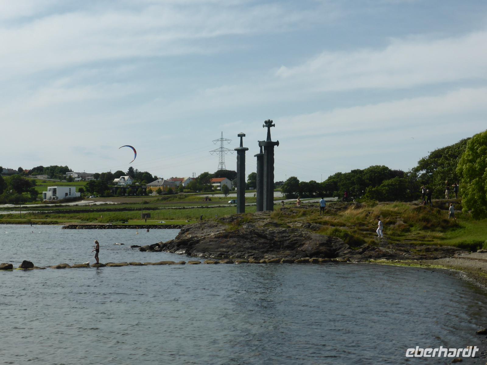 Nach dem Frühstück verließen wir Bergen und fuhren zur Fähre nach Halhjelm. Von dort setzten wir nach Sandviksåg über und fuhren weiter nach Haraldshaugen. Angeblich befindet sich an dieser Stelle das Grab von Harald Schönhaar, welcher im Jahre 872 ganz Norwegen vereinte. Von Haraldshaugen fuhren wir weiter nach Avaldnes, wo es zu seiner Zeit im 9.Jh. einen Königssitz gegeben haben soll. Hier befindet sich auch die älteste Steinkirche Norwegens, die Olavskirche, in der gerade ein Violinen-Konzert stattgefunden hatte. Von Avaldnes ging es dann nach Arsvågen und von dort mit der Fähre nach Mortavika. Anschließend fuhren wir durch den Byfjord, welcher mit 223 Metern unter dem Meeresspiegel einer der tiefsten Unterwassertunnel der Welt ist. Er befindet sich 45 Meter unterhalb des Meeresgrundes. Bevor wir in Stavanger zum Abendessen zu unserem Hotel fuhren, legten wir am Hafrsfjord beim Denkmal „Svord i Fjell" einen Fotostopp ein. Der Künstler Fritz Roeed schuf die drei meterhohen Schwerter zum Gedenken an die Reichsbildung nach der Schlacht am Hafrsfjord im Jahre 872.