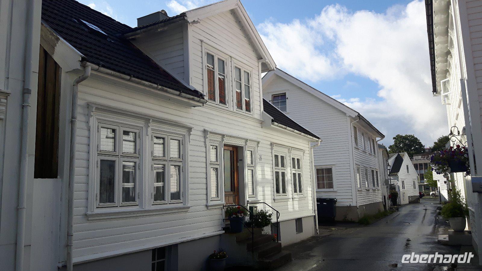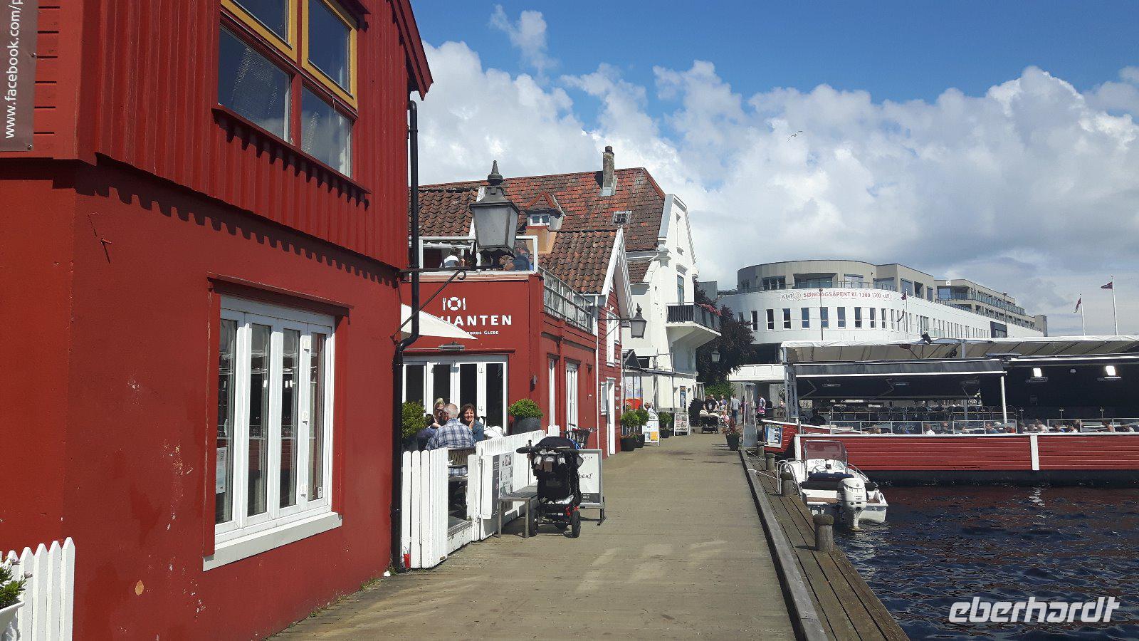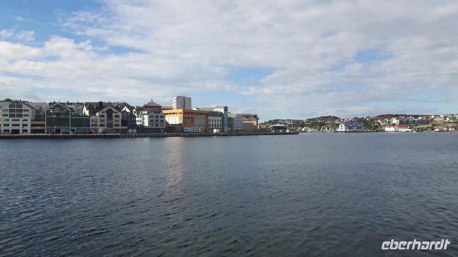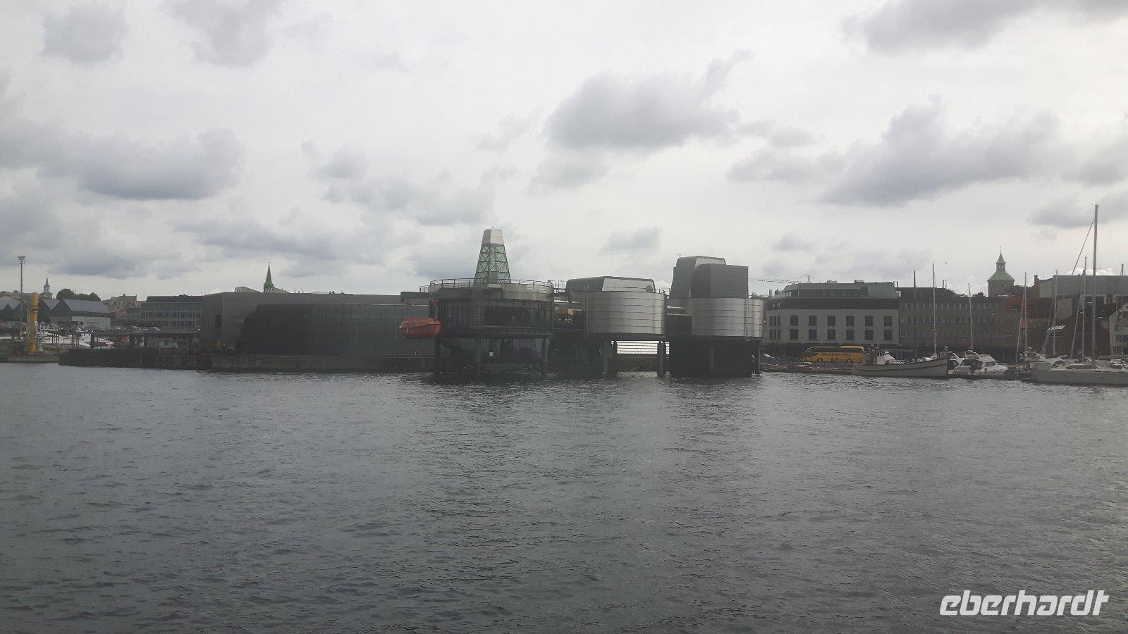 Gegen 8 Uhr brachen wir auf, um dem Ort Flekkefjord einen Besuch abzustatten. Bei unserer Ankunft wurden wir jedoch mit Starkregen überrascht und somit warteten wir geduldig im Bus, bis der Regen nachgelassen hatte. Und siehe da, die Sonne setzte sich sogar durch und einem gemeinsamen Spaziergang durch das schöne kleine Städtchen stand nichts mehr im Wege. Der Ort war im 19. Jahrhundert ein wichtiger Holzexporteur in die Niederlande, woran das Altstadtviertel "Hollenderbyen" - die "Stadt der Holländer" - mit schmalen Gassen, malerischen Bootsschuppen und eben auch im "holländischen" Stil erbauten Holzhäusern bis heute erinnert. Wir schlenderten durch dieses imposante Viertel - ein einzigartiges Architektur-Ensemble aus vergangenen Jahrhunderten! Anschließend fuhren wir in Richtung Stavanger weiter, wo wir gegen Mittag ankamen und sogleich zum Stadthafen Vågen spazierten. Wir unternahmen eine ca. 3-stündige Katamaran-Fahrt durch die Fjorde rund um Stavanger. Höhepunkt war natürlich der grandiose Lysefjord mit der berühmten Felskanzel "Preikestolen", die sich 604 Meter über dem Fjord erhebt. Uns wurde erklärt, dass der Anstieg zum Plateau gut zwei Stunden dauert und das einen, wenn man einmal oben ist, eine geniale Aussicht erwartet - nicht umsonst zieht diese ungewöhnliche Felsebene Jahr für Jahr weit über 200.000 Besucher bzw. Wanderfreunde an! Wir begnügten uns für heute mit dem Blick von unten, denn auch das Wetter hatte mittlerweile umgeschlagen - nicht gerade ideal zum Wandern (das war übrigens auch so für uns nicht vorgesehen)! Bereits am frühen Abend checkten wir in unserem zentral gelegenen Hotel "Scandic Stavanger City" ein. Somit konnte jeder Gast vor dem Abendessen noch einen kleinen individuellen Spaziergang durch diese moderne und multikulturelle Stadt unternehmen.