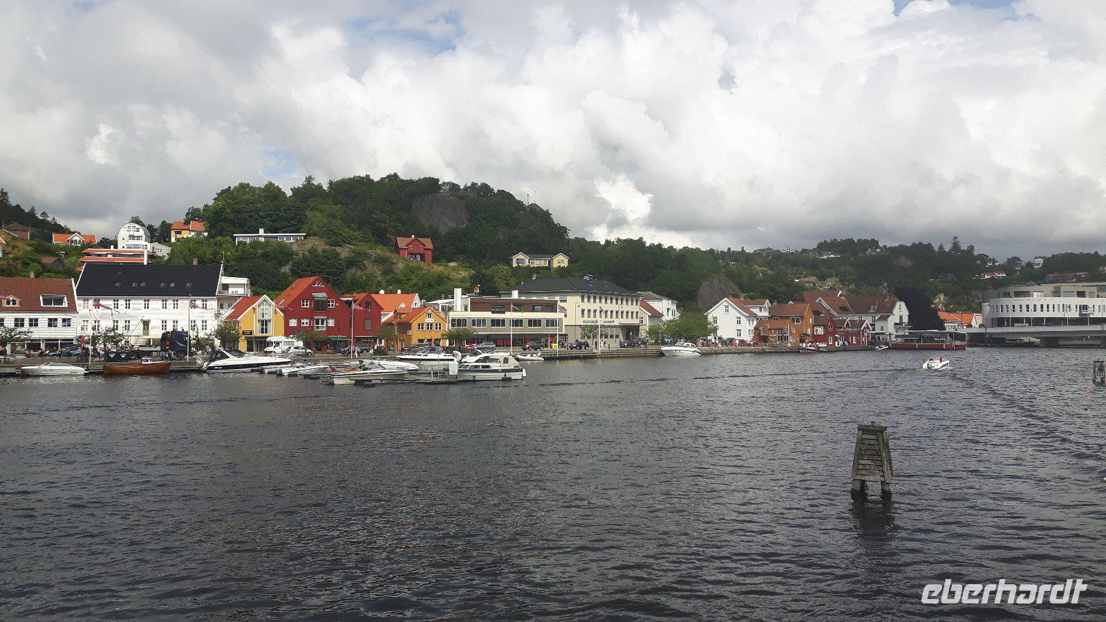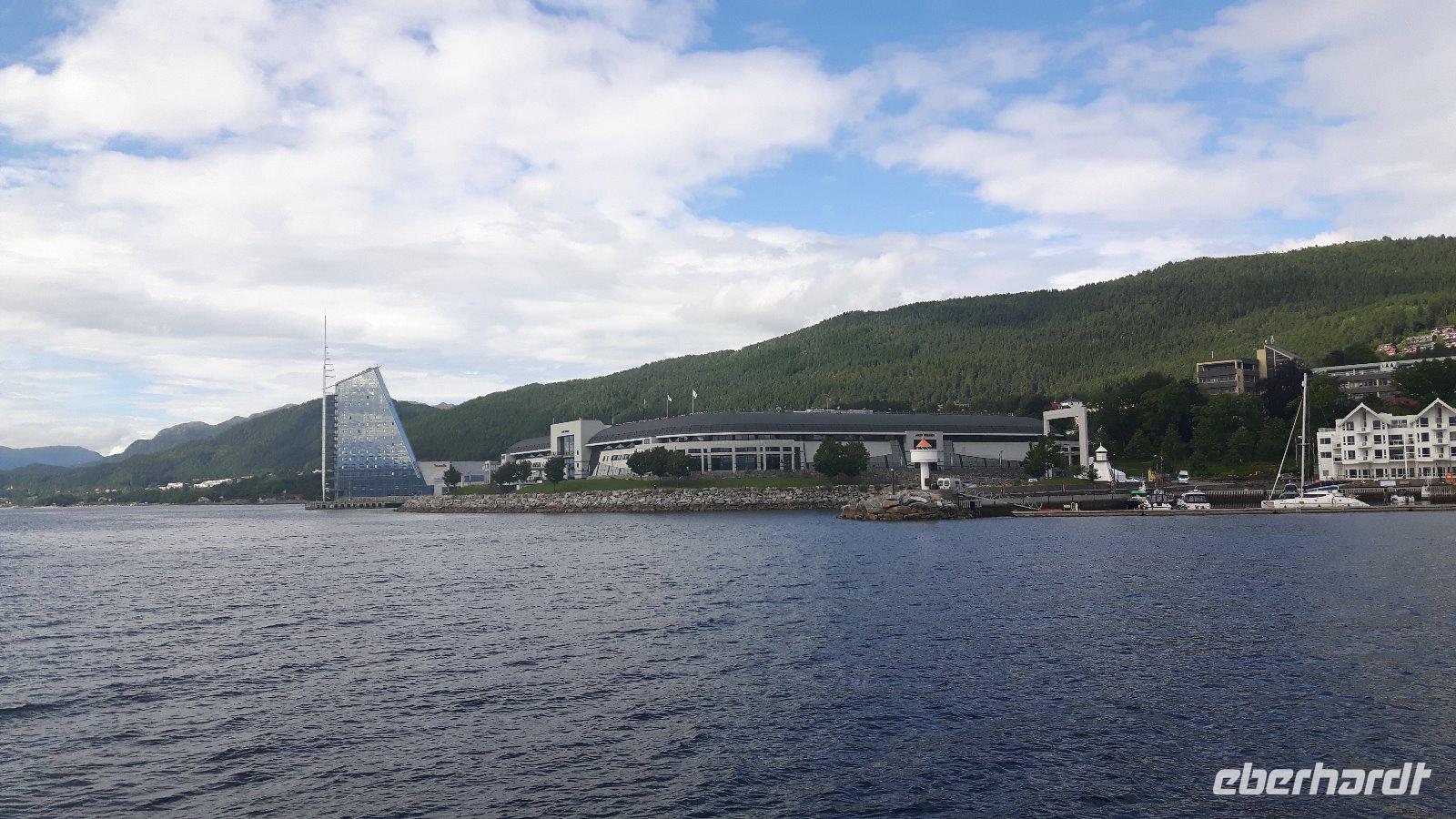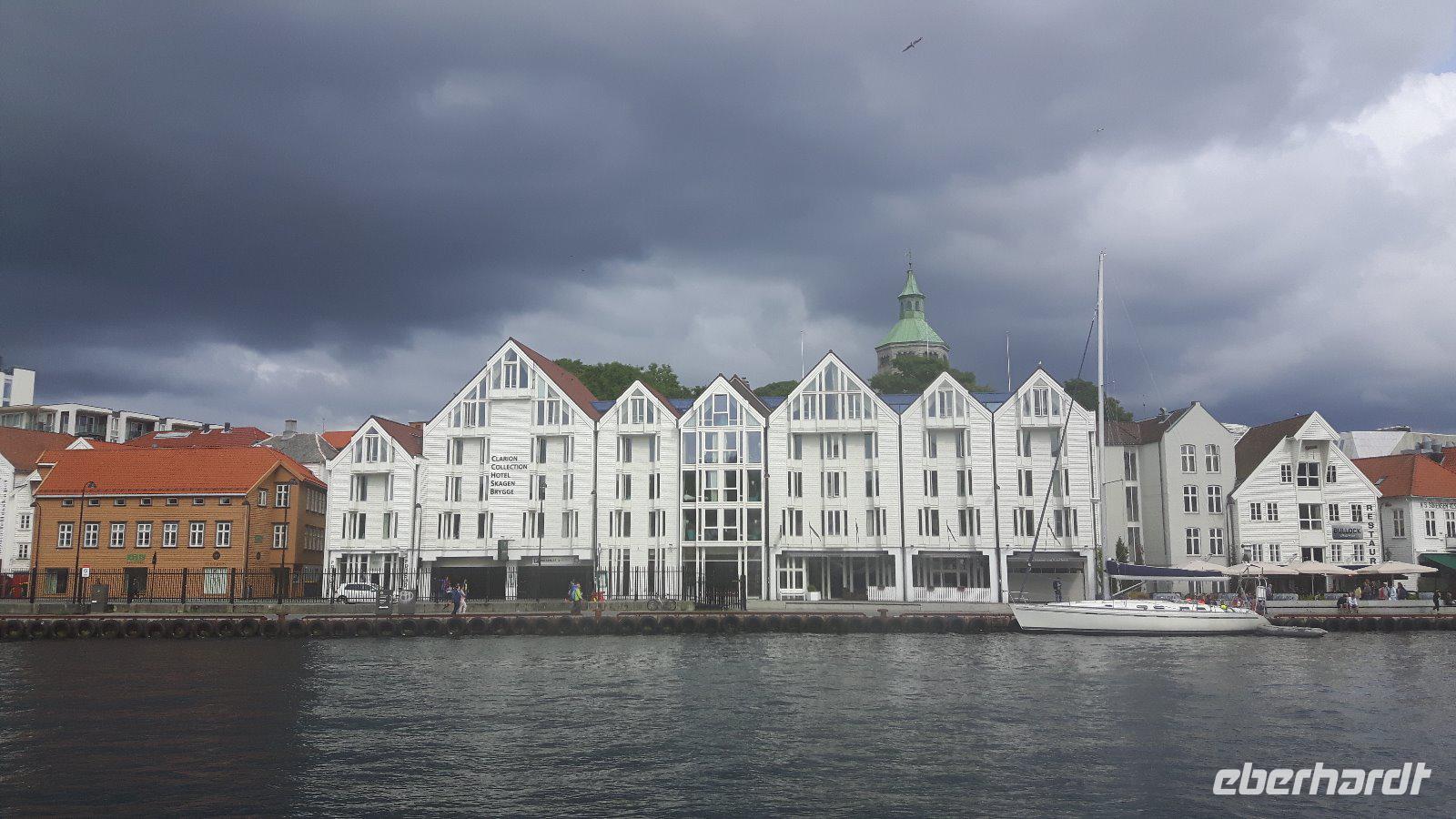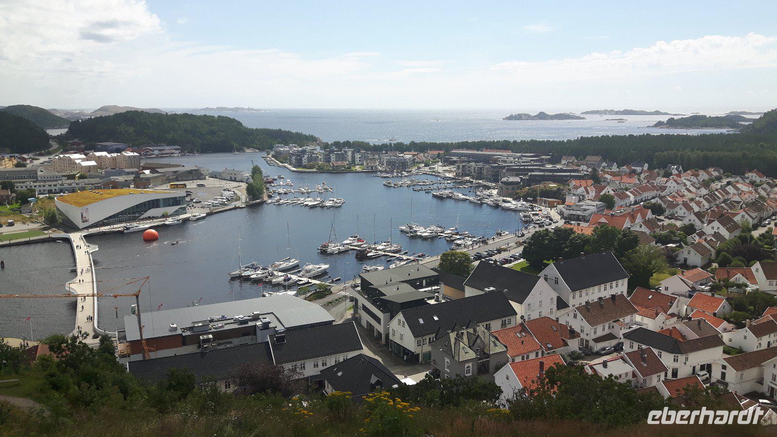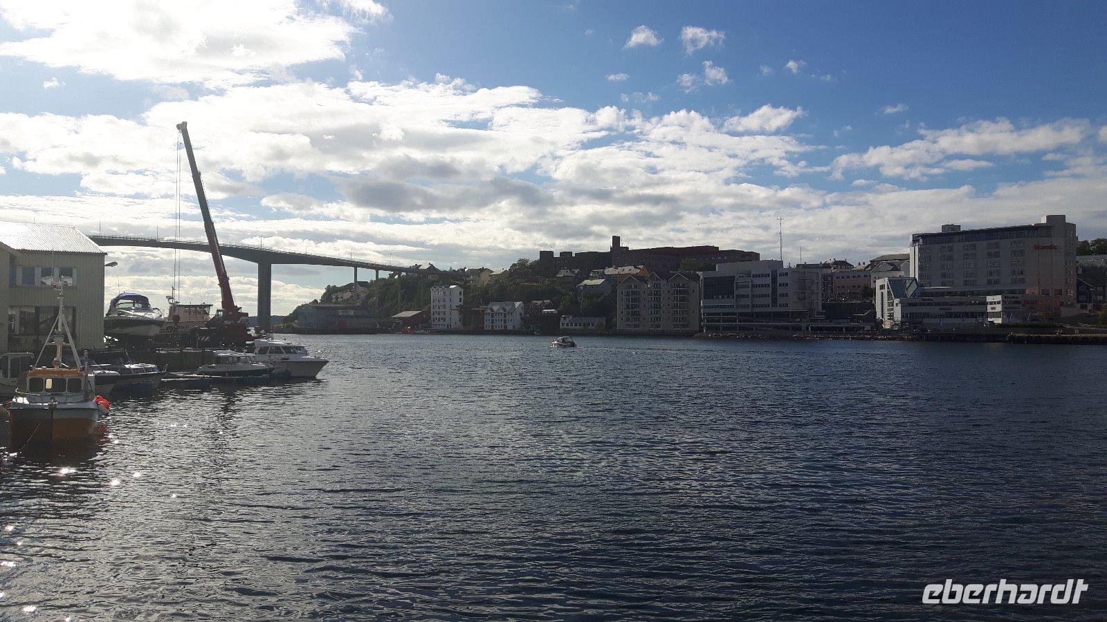 Gegen 8 Uhr brachen wir auf, um dem Ort Flekkefjord einen Besuch abzustatten. Bei unserer Ankunft wurden wir jedoch mit Starkregen überrascht und somit warteten wir geduldig im Bus, bis der Regen nachgelassen hatte. Und siehe da, die Sonne setzte sich sogar durch und einem gemeinsamen Spaziergang durch das schöne kleine Städtchen stand nichts mehr im Wege. Der Ort war im 19. Jahrhundert ein wichtiger Holzexporteur in die Niederlande, woran das Altstadtviertel "Hollenderbyen" - die "Stadt der Holländer" - mit schmalen Gassen, malerischen Bootsschuppen und eben auch im "holländischen" Stil erbauten Holzhäusern bis heute erinnert. Wir schlenderten durch dieses imposante Viertel - ein einzigartiges Architektur-Ensemble aus vergangenen Jahrhunderten! Anschließend fuhren wir in Richtung Stavanger weiter, wo wir gegen Mittag ankamen und sogleich zum Stadthafen Vågen spazierten. Wir unternahmen eine ca. 3-stündige Katamaran-Fahrt durch die Fjorde rund um Stavanger. Höhepunkt war natürlich der grandiose Lysefjord mit der berühmten Felskanzel "Preikestolen", die sich 604 Meter über dem Fjord erhebt. Uns wurde erklärt, dass der Anstieg zum Plateau gut zwei Stunden dauert und das einen, wenn man einmal oben ist, eine geniale Aussicht erwartet - nicht umsonst zieht diese ungewöhnliche Felsebene Jahr für Jahr weit über 200.000 Besucher bzw. Wanderfreunde an! Wir begnügten uns für heute mit dem Blick von unten, denn auch das Wetter hatte mittlerweile umgeschlagen - nicht gerade ideal zum Wandern (das war übrigens auch so für uns nicht vorgesehen)! Bereits am frühen Abend checkten wir in unserem zentral gelegenen Hotel "Scandic Stavanger City" ein. Somit konnte jeder Gast vor dem Abendessen noch einen kleinen individuellen Spaziergang durch diese moderne und multikulturelle Stadt unternehmen.