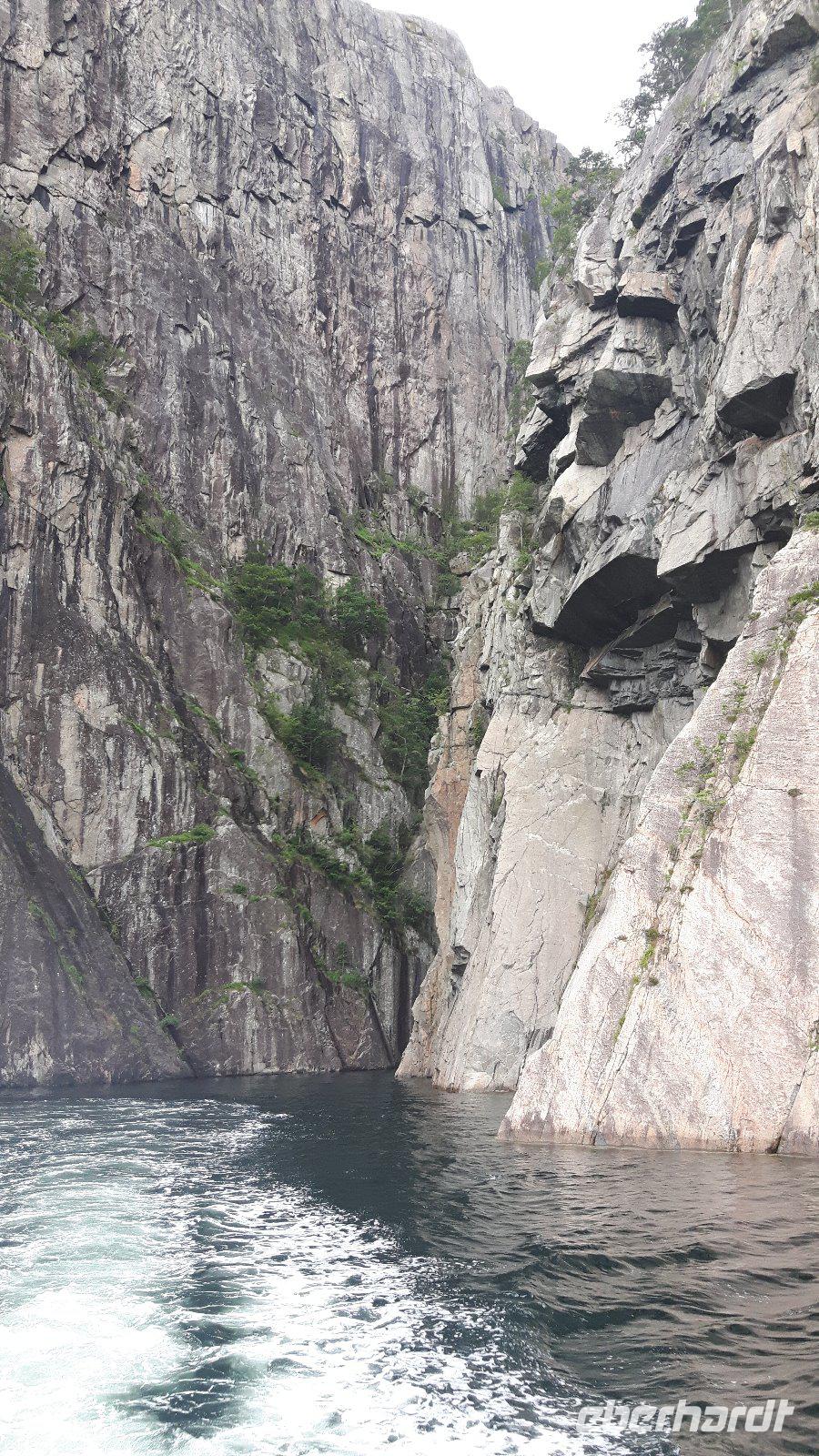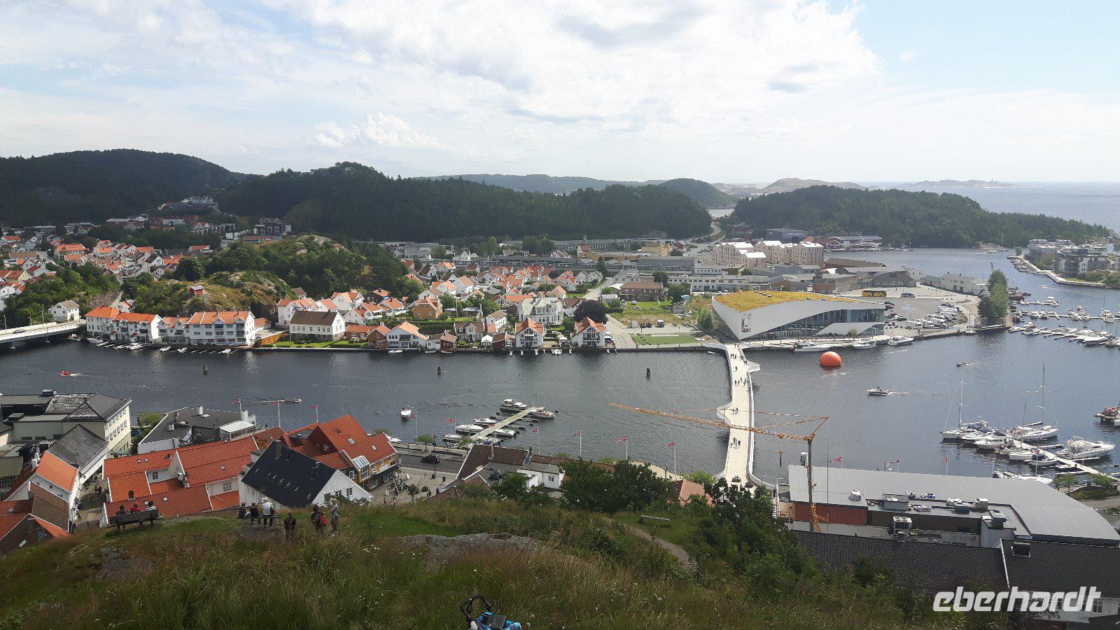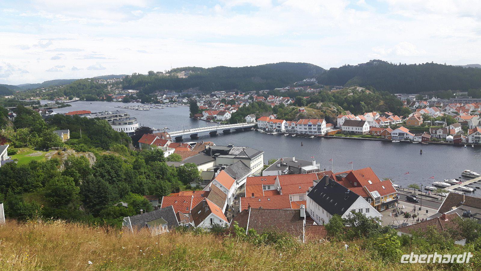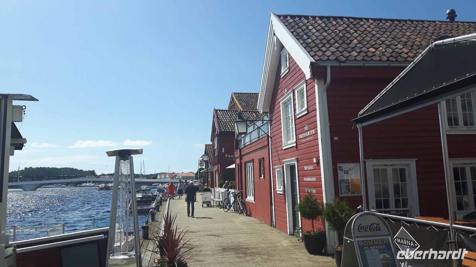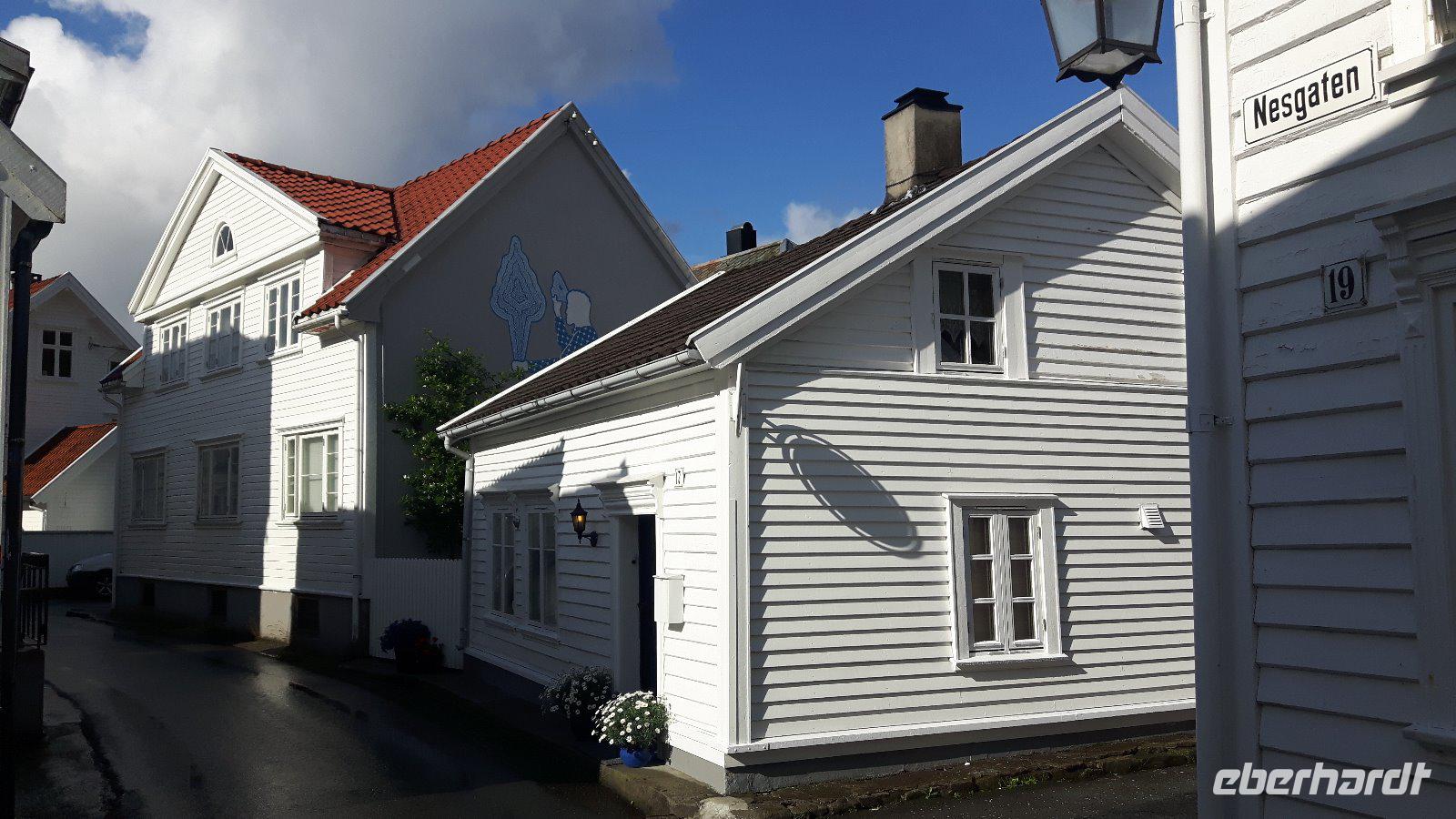Gegen 8 Uhr brachen wir auf, um dem Ort Flekkefjord einen Besuch abzustatten. Bei unserer Ankunft wurden wir jedoch mit Starkregen überrascht und somit warteten wir geduldig im Bus, bis der Regen nachgelassen hatte. Und siehe da, die Sonne setzte sich sogar durch und einem gemeinsamen Spaziergang durch das schöne kleine Städtchen stand nichts mehr im Wege. Der Ort war im 19. Jahrhundert ein wichtiger Holzexporteur in die Niederlande, woran das Altstadtviertel "Hollenderbyen" - die "Stadt der Holländer" - mit schmalen Gassen, malerischen Bootsschuppen und eben auch im "holländischen" Stil erbauten Holzhäusern bis heute erinnert. Wir schlenderten durch dieses imposante Viertel - ein einzigartiges Architektur-Ensemble aus vergangenen Jahrhunderten! Anschließend fuhren wir in Richtung Stavanger weiter, wo wir gegen Mittag ankamen und sogleich zum Stadthafen Vågen spazierten. Wir unternahmen eine ca. 3-stündige Katamaran-Fahrt durch die Fjorde rund um Stavanger. Höhepunkt war natürlich der grandiose Lysefjord mit der berühmten Felskanzel "Preikestolen", die sich 604 Meter über dem Fjord erhebt. Uns wurde erklärt, dass der Anstieg zum Plateau gut zwei Stunden dauert und das einen, wenn man einmal oben ist, eine geniale Aussicht erwartet - nicht umsonst zieht diese ungewöhnliche Felsebene Jahr für Jahr weit über 200.000 Besucher bzw. Wanderfreunde an! Wir begnügten uns für heute mit dem Blick von unten, denn auch das Wetter hatte mittlerweile umgeschlagen - nicht gerade ideal zum Wandern (das war übrigens auch so für uns nicht vorgesehen)! Bereits am frühen Abend checkten wir in unserem zentral gelegenen Hotel "Scandic Stavanger City" ein. Somit konnte jeder Gast vor dem Abendessen noch einen kleinen individuellen Spaziergang durch diese moderne und multikulturelle Stadt unternehmen.