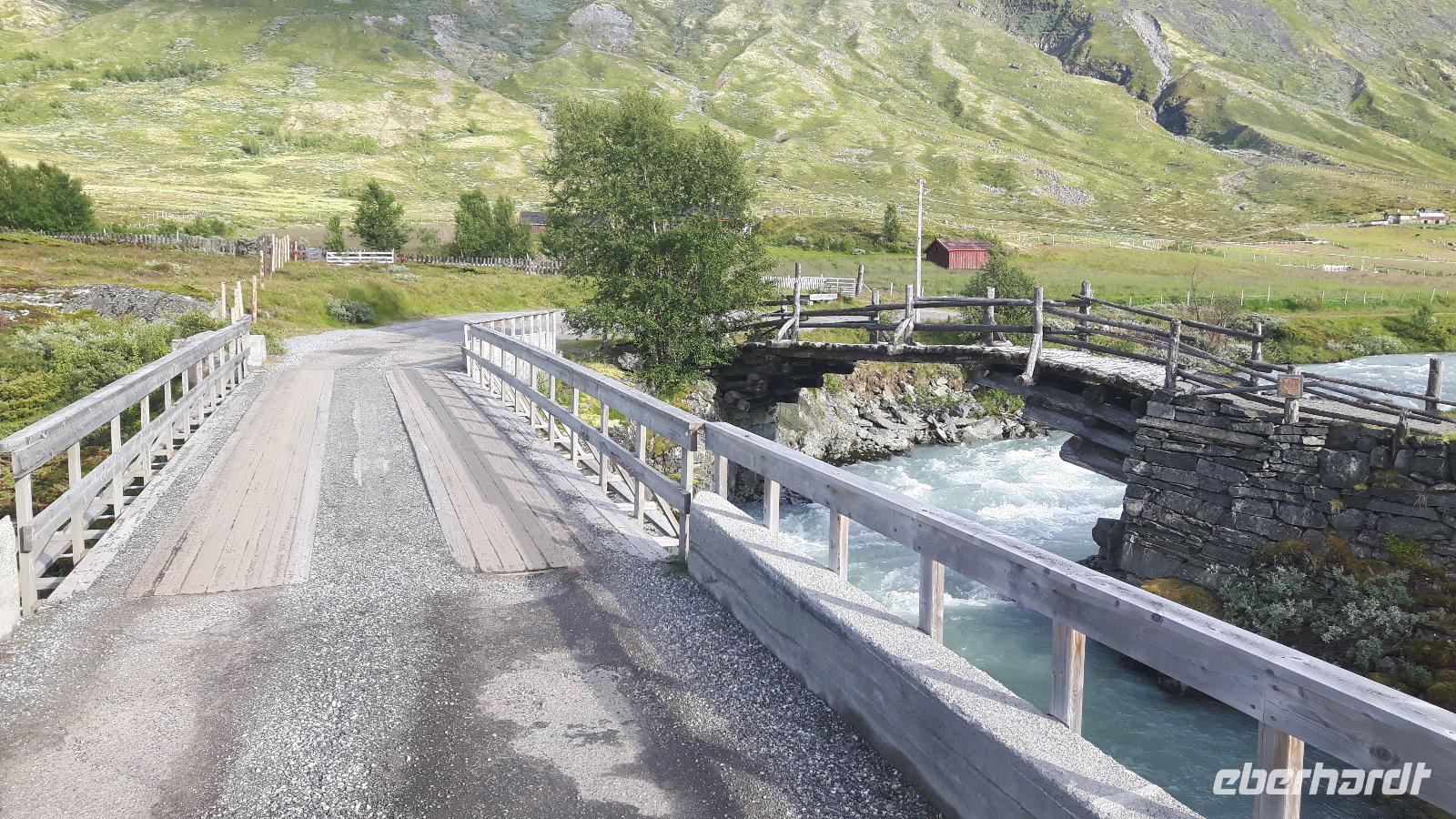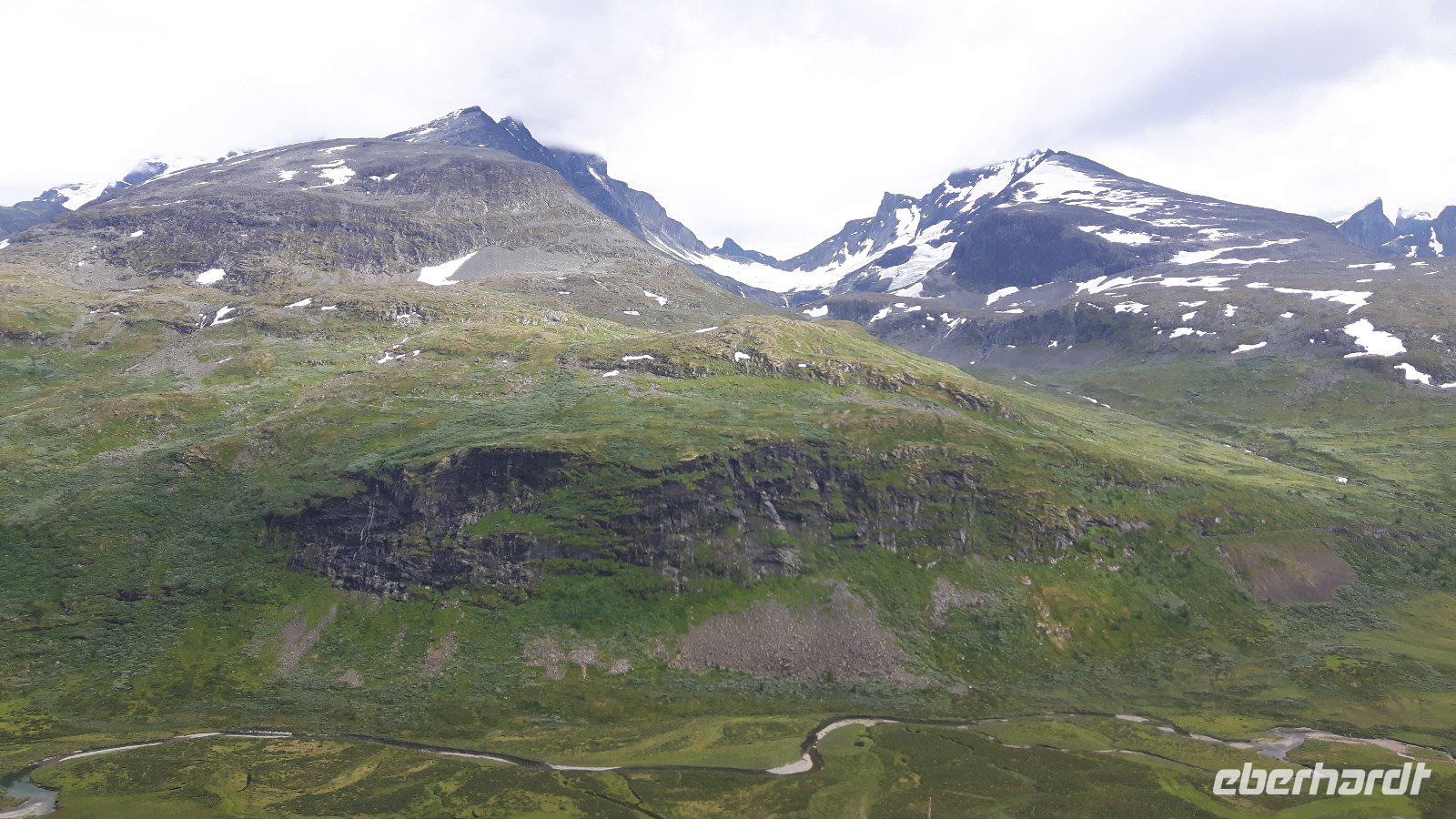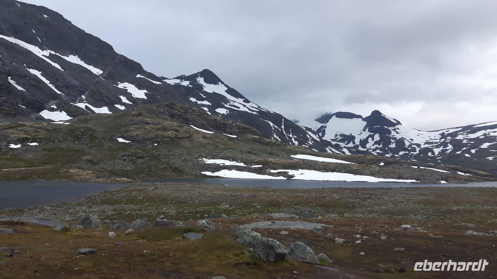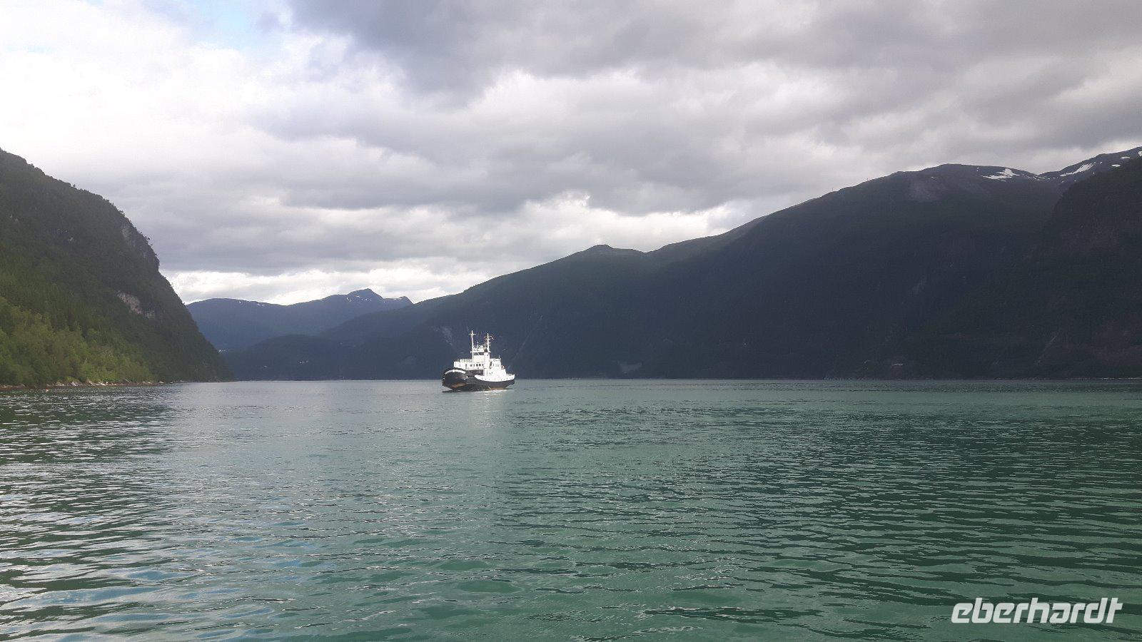 Am heutigen Tag stand zunächst ein Fotostopp an der erst im Jahre 2013 eröffneten Hardanger-Brücke auf dem Programm - diese ist mit 1.380 Metern Länge eine der weltweit längsten Hängebrücken. Über Voss erreichten wir einen meiner persönlichen "Lieblings-Wasserfälle", den Wasserfall Tvindefossen, der sich in mehreren Stufen ins Nærøytal hinunter stürzt. Weiter ging es über Gudvangen und anschließend durch den über 11 Kilometer langen Gudvangen-Tunnel nach Flåm, bekannt durch die spektakuläre Flåmbahn. Wir hatten glücklicherweise etwas Zeit und konnten uns in dem kleinen Ort umschauen oder auch das Flåmbahn-Museum besuchen. Von hier aus fuhren wir über eine der schönsten und abwechslungsreichsten Passstraßen Norwegens, dem sogenannten "Aurlandsvegen", hinüber nach Lærdal. Was uns auf dieser Straße erwarten sollte, war großartig - denn diese 46 Kilometer lange Straße ist eine der 18 Landschaftsrouten Norwegens und übrigens nur im Sommer geöffnet. Der höchste Punkt liegt immerhin bei 1.306 Meter über dem Meeresspiegel. Hier sahen wir auch mitten im Sommers noch etwas Schnee - einfach genial und überwältigend! Nicht zu Unrecht hat diese Route schließlich auch den Beinamen "Schneeweg". Wir erlebten zudem phantastische Aussichtpunkte, unter anderem das Panorama von der neuen Aussichtsplattform "Stegastein" mit einem genialen Blick auf den Aurlandsfjord! Eine kurze Fährüberfahrt über den Sognefjord und schon stand eine erneute Panorama-Fahrt bevor. Entlang der Nordseite des Lustrafjords und mit herrlichen Blicken auf den Fjord und die zahlreichen Wasserfälle ging es zunächst nach Skjolden, am inneren Ende des Sognefjords und etwa 200 Kilometer vom Meer entfernt gelegen. Wir setzten unsere eindrucksvolle Fahrt über die Sognefjellstraße, der Reichsstraße 55, fort. Der mit 1.434 Metern höchstgelegene Gebirgspass Nordeuropas ist seit 1938 für Autos befahrbar. Die Passüberquerung ist eine der ältesten Verbindungswege zwischen West und Ost, sie war die Hauptroute vom gesamten Gudbrandsdal zu den Küstensiedlungen in Sogn und bis nach Bergen. An Waren wurden hier hauptsächlich Salz, Hering und Fisch aus dem Westen und Häute, Butter, und Eisen aus dem Osten transportiert - in beiden Richtungen auf dem eigenen Rücken oder zu Pferd. Unterwegs nutzten wir die reichlichen Möglichkeiten für Fotostopps, obwohl es das Wetter heute zeitweise nicht so gut mit uns meinte. Nichts desto trotz, der nächste Höhepunkt des Tages wartete bereits... Um zu unserem heutigen Quartier zu gelangen, fuhren wir weit ins Leirdalen hinein, übrigens abseits von jeglicher Zivilisation! Aber gerade diese etwas abenteuerliche Situation machte es immer spannender. Voller Erwartungen kamen wir am Abend im Hotel "Leirvassbu Mountain Lodge" an und wir wurden nicht enttäuscht! Kein Handy-Empfang und auch kein TV - warum auch? Die Lodge liegt am Ufer des Sees Leirvatnet, einer atemberaubenden Berglandschaft auf ca. 1.400 Metern Höhe und was will man da mehr? Es war unbeschreiblich schön hier! Das ganze Anwesen ist wie eine altnorwegische Götter-Wohnstätte gestaltet, und jeder Raum trägt einen Namen aus der nordischen Mythologie.