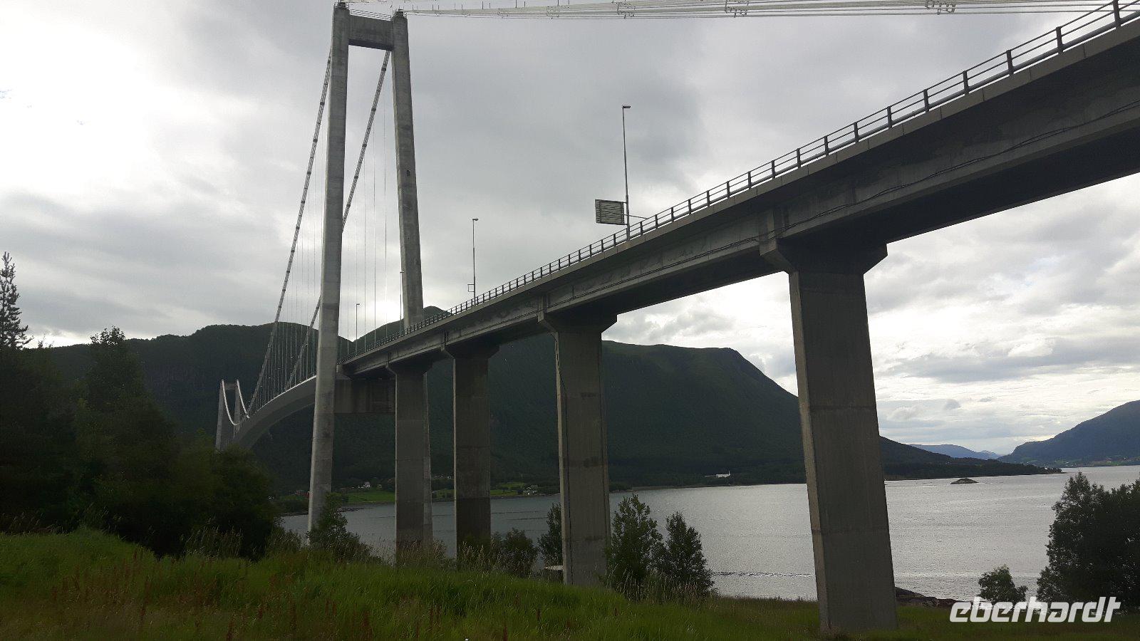 Zuerst ging es heute die von Geiranger aus mit elf Haarnadelkurven versehene Adlerstraße (Ørnevegen) hinauf und nochmals konnten wir somit die Schönheit dieser Gegend genießen! Diese Straße verbindet ganzjährig das Dorf Geiranger am gleichnamigen Fjord mit Eidsdal, das wiederum am Norddalsfjord liegt. Wir überquerten den Norddalsfjord von Eidsdal nach Linge und kamen ins Valldal, bekannt für die leckersten Erdbeeren weit und breit! Im oberen Valldal stoppten wir an der Gudbrandsjuvet-Schlucht und schließlich erreichten wir die Trollstigen. Die Bergwelt ist schroff - Namen wie Kongen (König), Dronningen (Königin) und Bispen (Bischoff) bestätigen die Majestät dieser Bergwelt! Hoch oben stürzt sich der Stigfossen ins Isterdal, und mittendurch steigt die Trollstigen-Straße an der Bergseite empor. Nach einer Bauzeit von acht Jahren wurde der Trollstigen 1936 eröffnet und selbst heute ist die Straße ein gutes Beispiel für hohe Ingenieur- und Baukunst. Übersetzen könnte man den Namen "Trollstigen" übrigens mit "Zauberweg". Was sind nun eigentlich Trolle? - Es sind im nordischen Volksglauben Dämonen in Riesengestalt. Bereits seit grauer Vorzeit leben in den Bergen und in den alten Hünengräbern Norwegens die Trolle. Sie sind - wie auch die Wichteln und Zwerge - elbische Wesen. Ihre Herkunft ist unbekannt. Einem Geistlichen, der sie vertreiben wollte, klagten sie einmal, sie seien herabgestürzte Engel. Einer anderen Geschichte zufolge sind sie Nachkommen der alten Riesen, die immer weiter geschrumpft sind und weiter schrumpfen. Die Trolle sind gedrungene, plumpe, erdfarbene Wesen mit mächtigen Knollennasen; manche haben einen Schwanz und einen zotteligen Pelz. Die Kleider sind grün wie das Moos an einem Waldsee oder grau wie die Flechten auf den Fjellen. Es ist nicht leicht, Bekanntschaft mit einem Troll zu machen - das gelingt angeblich nur um die Mittagszeit geborenen Sonntagskindern oder den neunten Kindern von Eltern, die selbst neunte Kinder ihrer Eltern waren. Und das ist auch gut so! Es gibt nämlich ganz unterschiedliche Trolle. Die einen sind den Menschen freundlich und wohlgesonnen. Sie sind gutmütige Geschöpfe, die oft in der Nähe von Menschen wohnen und nachbarschaftlichen Umgang pflegen. Ihnen zu begegnen ist eine Freude und ein besonderes Erlebnis. Andere Trolle aber sind sehr böse, und vor ihnen muss man sich in Acht nehmen. Die norwegischen Bauern wissen ein Lied davon zu singen, wenn das Trollweib zur Saatzeit als Wirbelwind über den Acker fegt und mit ihrem Kleid die Saat auffängt. Auch vertauschen manche Trolle die Kinder der Menschen und legen an ihrer Stelle ein Trollkind unter, einen missgestalteten Wechselbalg. Es gibt also viel zu berichten über die Trolle..., wir mussten aber weiter. Durch das grüne Isterdal ging es dann mit einer weiteren Fähre von Afarnes nach Sølsnes bis Kristiansund weiter. Wir sahen auf dieser Fahrt gigantische Brücken und Unterwassertunnel, wie beispielsweise die Bolsøysundbrücke, den Fannefjord-Tunnel, die Gjemnesund-Hängebrücke und den Freifjord-Tunnel. In Kristiansund besuchten wir dann zunächst eines der Wahrzeichen, das sogenannte "Klippfischweib", denn die Stadt hatte seine einstige Bedeutung und deren Reichtum vor allem den Frauen zu verdanken, in deren Hand die Klippfischproduktion lag. Die Stadt liegt auf mehreren Inseln und im südlichen Stadtteil bzw. der kleinsten Stadtinsel Innlandet, bezogen wir das maritime "THON Hotel" in bester Lage. Ein Spaziergang durch das Viertel mit den bestbewahrten Häusern des alten Kristiansund lohnte in jedem Fall!