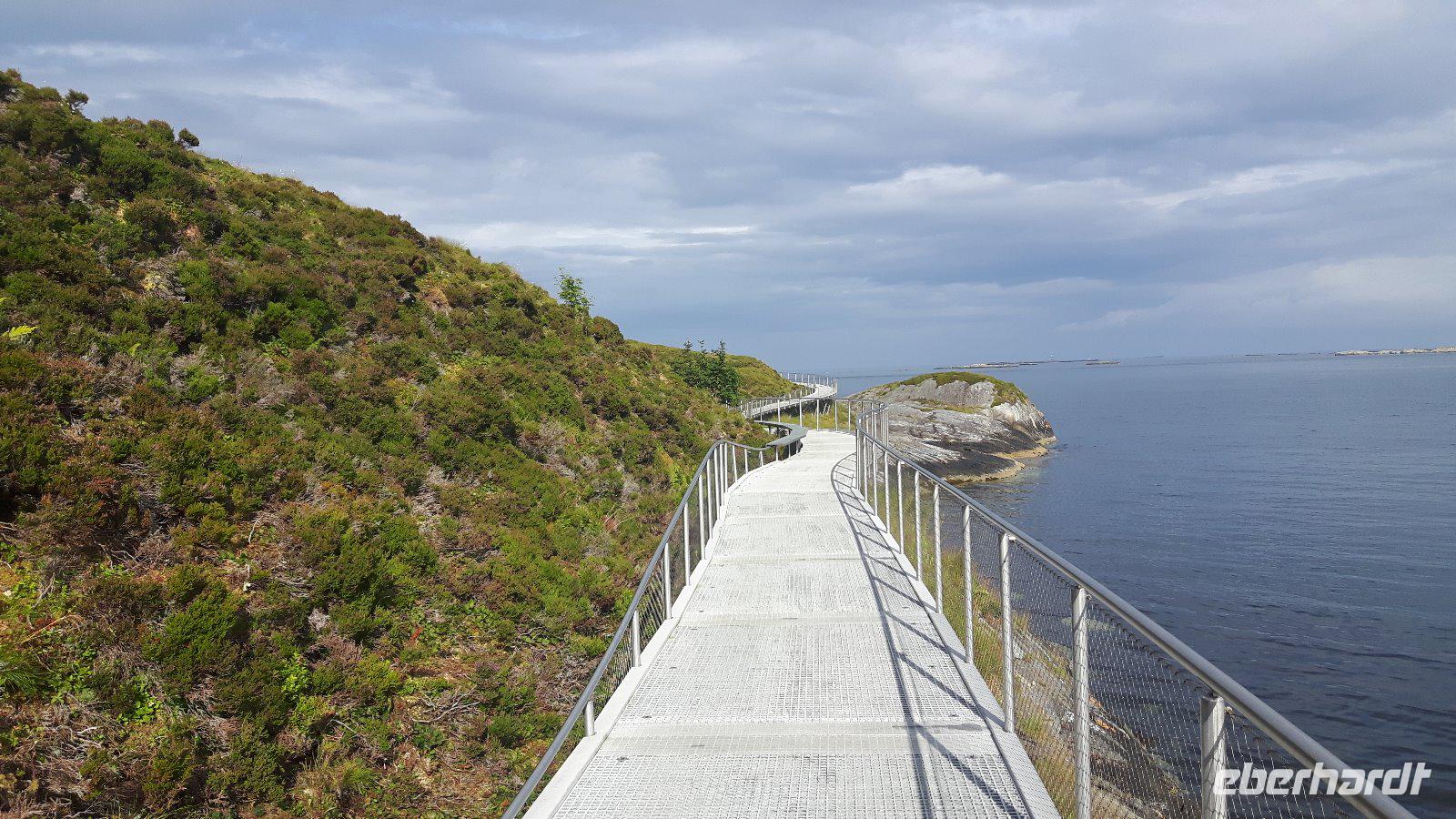 Bestens gestärkt vom guten Frühstücksbuffet konnte es weiter gehen und Hirtshals, ganz im Norden Dänemarks, war unser erstes Ziel. Im Terminal der Fjordline wurden die Tickets für die Fährüberfahrt nach Norwegen organisiert und schon konnte es losgehen...! Vorerst war allerdings noch etwas Geduld gefragt, denn zuerst wurden kleinere Fahrzeuge auf die Fähre gelassen und wir standen mit unserem über 12 Meter langen Bus etwas auf dem "Abstellgleis"! Naja, es funktionierte letztendlich alles prima und mit der Schnellfähre HS "Fjord Cat" fuhren wir die reichlich 130 Kilometer lange Seestrecke über den Skagerrak, einem Teil der Nordsee. Nach reichlich zwei Stunden waren wir in Kristiansand und betraten damit erstmals norwegischen Boden. Westlich und der Europastraße 39 folgend, gelangten wir durch waldreiche Landschaften nach Mandal, der südlichsten Stadt Norwegens! Die im 15. Jahrhundert gegründete und durch Holz- sowie Lachsexport zu frühem Reichtum gekommene Ortschaft gilt auch als "Perle Sørlands". Den besten Blick genießt man übrigens vom Hausberg "Uranienborg" - die Aussicht ist einfach nur traumhaft und der Aufstieg lohnt sich in jedem Fall! In Mandal befindet sich auch Norwegens größte Holzkirche mit einer Kapazität von 1.300 Sitzplätzen - leider klappte es mit einer Innenbesichtigung nicht, da die Kirche geschlossen hatte! Der Wettergott meinte es heute sehr gut mit uns und somit ging es gut gelaunt weiter zum südlichsten Festlandspunkt Norwegens, dem Kap Lindesnes! Das Nordkap kennt jeder, aber wen verschlägt es schon zum "Südkap"? Die Fahrt führte uns über eine Halbinsel bzw. durch viele kleine Fischerdörfer mit besonderen Naturreizen, an deren äußerstem Zipfel sich ein Leuchtturm erhebt. Die Landschaft präsentierte sich hier felsdurchsetzt und vom Wind geprägt, aber auch herrliche Sandbuchten taten sich auf. Vom Leuchtturm aus genossen wir ein herrliches Panorama auf die zerklüftete und nahezu vegetationslose Felsküste, an der sich die mächtigen Wellen der Nordsee brechen. Hier befanden wir uns immerhin 2.518 Kilometer vom Nordkap entfernt! Mit vielen schönen ersten Eindrücken von Norwegen im Gepäck gelangten wir nach Farsund, wo wir im idyllisch gelegenen "Farsund Fjordhotel" die erste Nacht in Norwegen verbrachten und ein schmackhaftes Abendbuffet rundete den Tag ab.