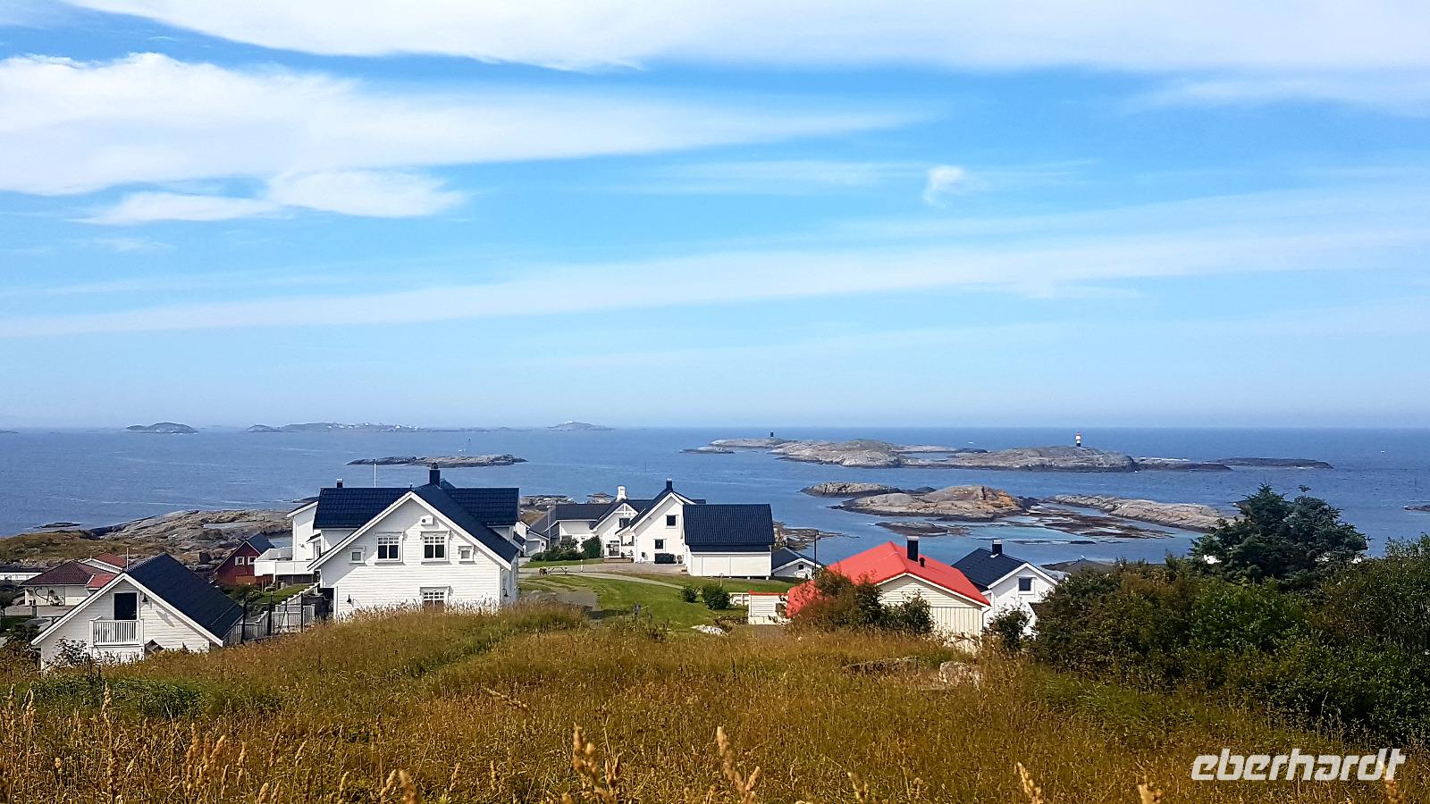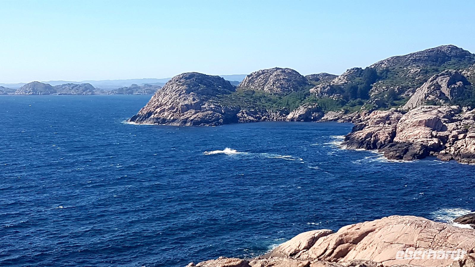 Nun legen wir nur noch die 100 km bis Hirtshals zurück, um mit der Speedfähre nach Norwegen zu gelangen. In gut zwei Stunden erreichen wir so Kristiansand und holen hier vom Hotel die Gäste ab, die gestern per Flugzeug angereist sind. Diese konnten sich Kristiansand näher anschauen, wir fahren nur kurz hindurch, um unseren Weg nach Norden fortzusetzen. Unser erstes ziel für einen Spaziergang ist das beschauliche Örtchen Mandal. Wir fahren gleich an den langen Sandstrand, der der schönste an der Küste Norwegens sein soll und machen hier unsere Mittagspause. Den Ort selbst, haben wir uns bei der Durchfahrt vom Bus angeschaut, da der Parkplatz durch eine Veranstaltung belegt war. So konnten wir mehr Zeit, bei diesem herrlichen Wetter, an unserem nächstem Ziel, dem südlichsten Festlandspunkt Norwegens, dem Kap Lindesnes, verbringen.