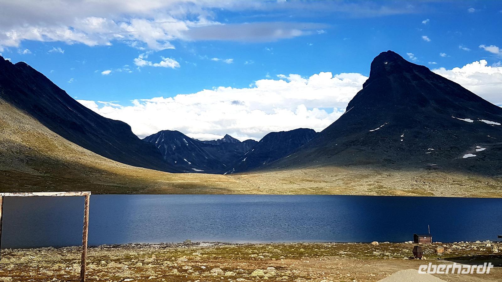 Nun ist es an der Zeit, zu unserem heutigen Hotel, der „Leirvassbu Mountain Lodge" zu fahren. In ein Seitental geht es über eine 15 km lange Privatstrasse zu unserer Unterkunft. Einzigartige Natur und ungewohnte Stille umgibt uns. Wir sind fasziniert und berührt zugleich. Die Lodge begeistert mit Flair und Athmosphäre, das Essen ist ganz lecker.