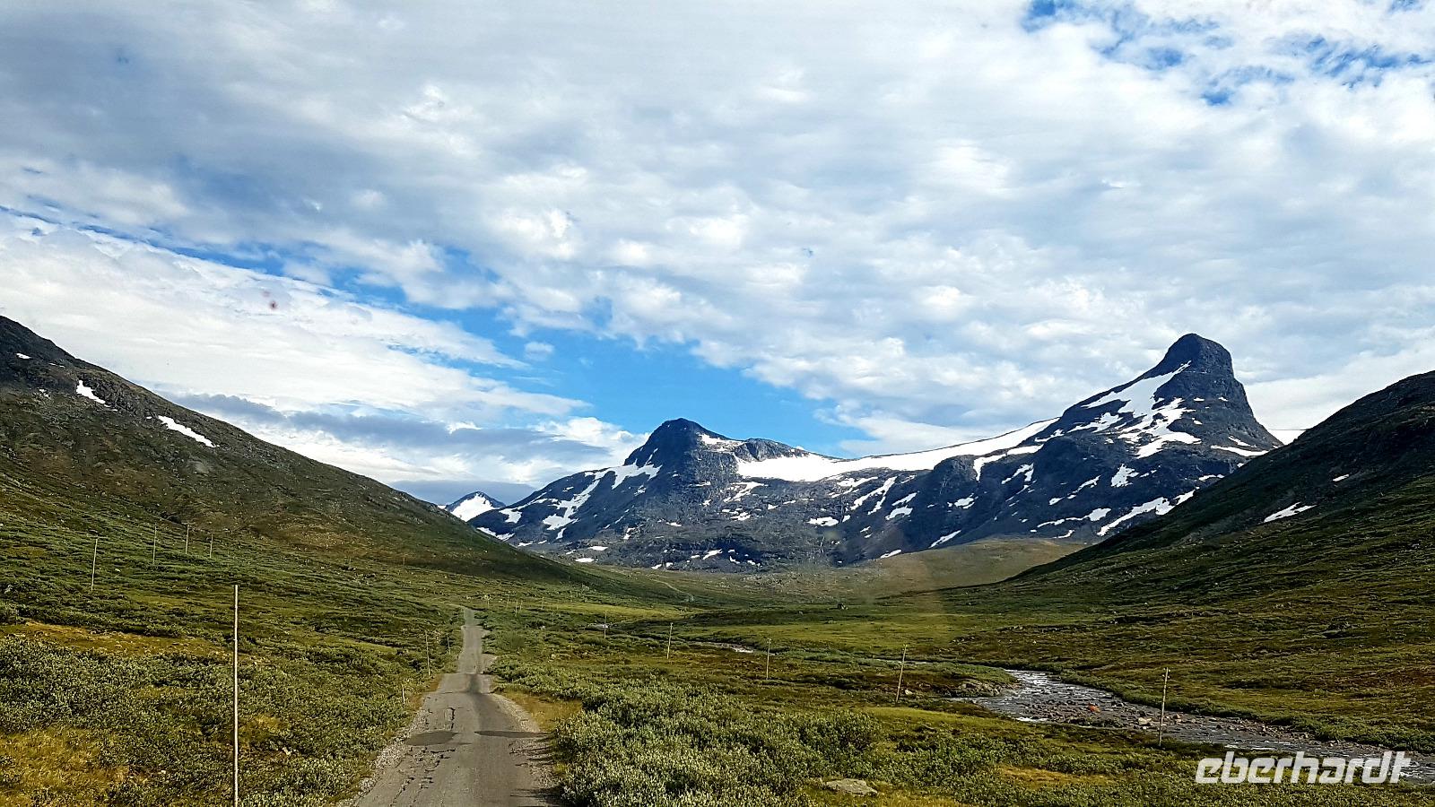 Über die bekannte Adlerstraße verlassen wir diesen Fjord, mit einem wehmütigen Blick zurück. Weiter geht es zur Fähre, mit der wir einen weiteren fördern überqueren, um über das Vallsdal, mit seinen Erdbeerfeldern und bei einem Zwischenstopp am Gutbrandswasserfall auf dem Parkplatz oberhalb der Trollstigen anzukommen.