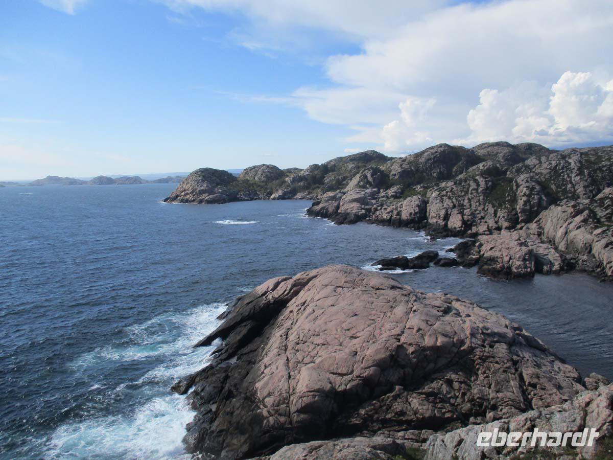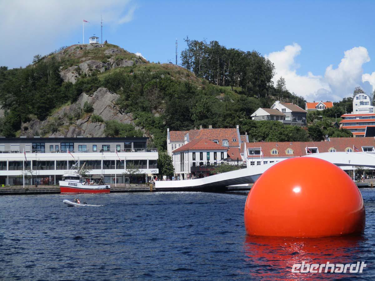 Nach einem recht frühen Morgenmahl befinden wir uns zeitig in Hirtshals vor der Fähre. Von hier aus setzen wir in 2,5 Stunden mit einer Katamaranfähre nach Kristiansand in Norwegen über. Die Stadt wurde 1641 vom Dänenkönig Christian IV. gegründet. Die See ist recht unruhig und es schaukelt recht gewaltig. Doch schon sind wir angelandet und holen in der Stadt noch 3 Gäste ab, welche mit dem Flugzeug gekommen sind. Einige Gäste nutzen die Gelegenheit auch zum Geld abheben, denn Geldwechsel nehmen norwegische Banken so gut wie gar nicht mehr vor. Unser erstes Ziel ist das kleine Städtchen Mandal, welches mit einer schönen Altstadt voller weißer, denkmalgeschützter Häuser besticht. Der Ort ist schon im 14. Jh. erwähnt worden und wurde ersten durch den Handel mit seinem hervorragenden Lachs reich, und zweitens durch den Umschlag von Holz, welches vornehmlich in die Niederlande verschifft wurde. Mandal verfügt auch über eine neue Kulturhalle mit einer überaus gut sortierten Touristinformation, in der wir uns mit reichlich Infomaterial für die nächsten Ziele eindecken können. Nach einem kleinen Spaziergang durch die Stadt erklimmen wir den 65 m hohen Aussichtsberg Uranienborg, von wo aus man wirklich bei strahlendem Sonnenschein einen herrlichen Blick auf das Städtchen und die Schärenlandschaft vor der Küste hat. setzen wir unsere Reise zum Kap Lindesnes fort. Am Kap, dem südlichsten Festlandspunkt in Norwegen auf dem seit 1655 ein Leuchtfeuer existiert, bekommen wir eine kleine Einführung auf deutsch und schauen uns einen recht informativen Film zur Einstimmung an. Danach heißt es das Kap erkunden und auch den heutigen Leuchtturm von 1915 zu erklimmen. Zusätzlich sind Kanonenstellungen und Bunker aus dem 2. Weltkrieg zu sehen. Unser Tag endet in Farsund. Alle Zimmer unseres Hotels haben einen Balkon mit direkten Blick auf das Wasser. Und dann wieder diese himmlische Ruhe.......