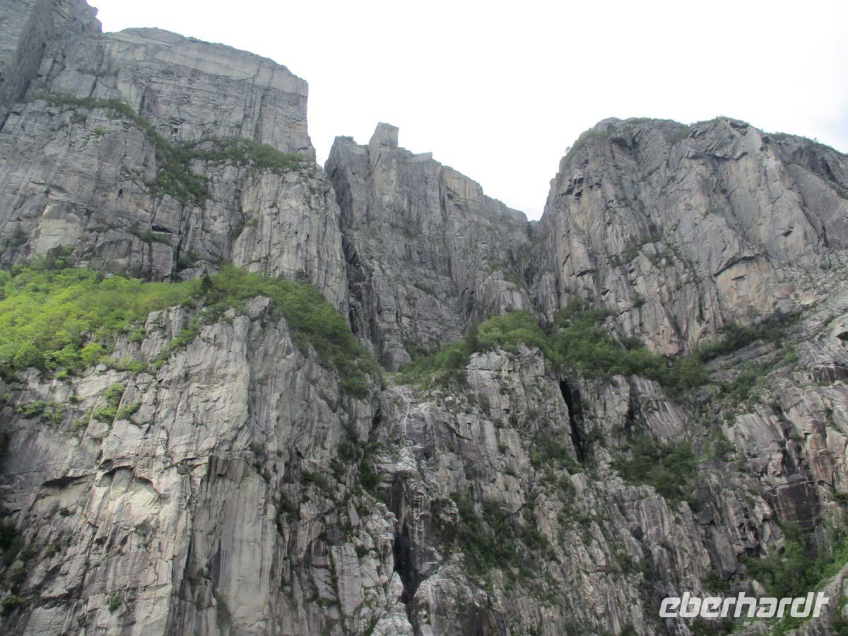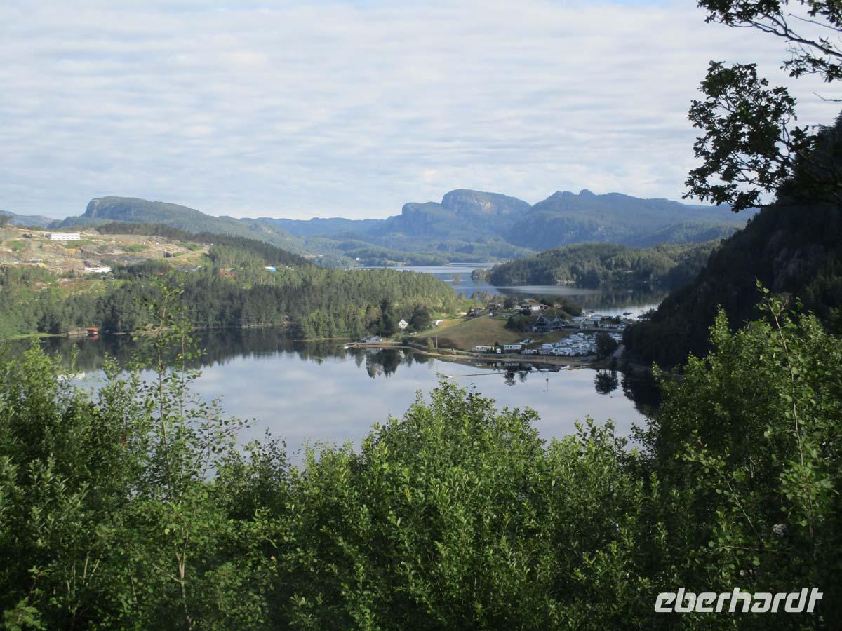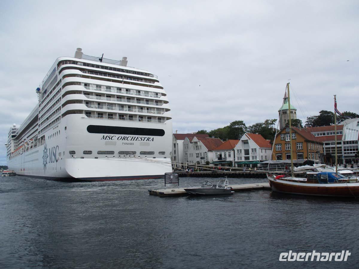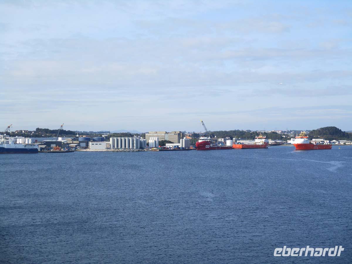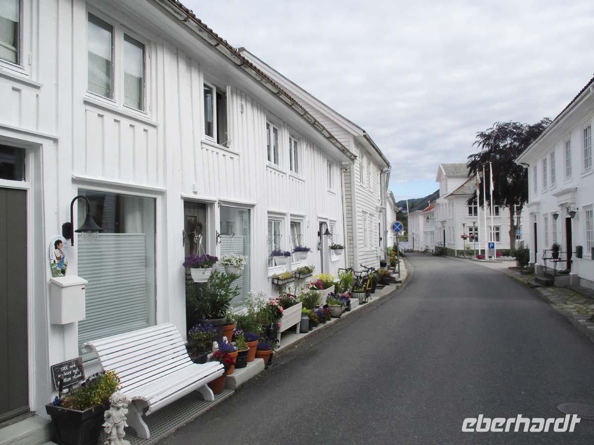 Der Nordsommer macht sich hier schon stark bemerkbar. Es will nachts einfach nicht mehr richtig dunkel werden. Dementsprechend früh sind viele auf den Beinen. Wir begeben uns zunächst nach Flekkefjord. Auch in diesem Städtchen betören wieder wie in Mandal die reinweiß gestrichenen Holzhäuschen, welche mitunter auch reichlich mit Blumen geschmückt sind. Ab 1660 unterhielt die Stadt enge Beziehungen zu den Niederlanden. Zunächst durch Holzhandel, später durch Fischfang. Viele Bewohner verdingten sich als Arbeitskräfte selbst in den Niederlanden und brachten Geld mit nach Haus. Das Holländerviertel mit seinen durchweg weiß getünchten Wohnhäusern ist dann auch der Blickfang des kleinen Städtchens. Mittags erreichen wir Stavanger und begeben uns zum Hafen. Leider ist dieser vollständig mit zwei riesigen Kreuzfahrtriesen ausgefüllt, welche den kompletten Rahmen der Stadt sprengen und die Sicht auf das andere Ufer des alten Hafens versperren. Winzig klein wirken neben diesen Schiffen die alten Speicherhäuser am Hafen. Dafür überschwemmen förmlich fast 6000 Kreuzfahrtgäste die enge Stadt. Schon betreten wir das Schiff, welches uns durch einen der schönsten Fjorde schippert: Den bis zu 500 m tiefen Lysefjord. Bekannteste Sehenswürdigkeit ist hier natürlich der 600 m hohe Preikestolen, der Predigtstuhl. Die Fjordrundfahrt ist sehr schön gestaltet. Oft mit Musik von Edward Grieg untermalt, fahren wir bis dicht ans Ufer zu einer alten Höhle von Wegelagerern, die Fantehola und dicht an den Wasserfall Hengjanefossen heran, dessen klares Wasser etliche in Bechern auffangen, um es gleich zu genießen. Wieder an Land machen wir noch eine Runde durch die alten Gassen. Wir beginnen mit dem 1125 fertig gestellten Dom, der ältesten Bischofskirche Norwegens und die einzige Kirche im echt anglonormannischen Stil. Hieß doch auch der erste Bischof hier Reinald von Winchester - und schon wird die Verbindung zum angelsächsischen Siedlungsraum klar. Bis hinauf zum Valberget mit seinem alten Feuerwachtturm von 1858 spazieren wir. Er erstetzte einen hölzernen aus dem frühen 17. Jh. Mit einem reichhaltigen Bueffet lassen wir diesen ereignisreichen Tag ausklingen.