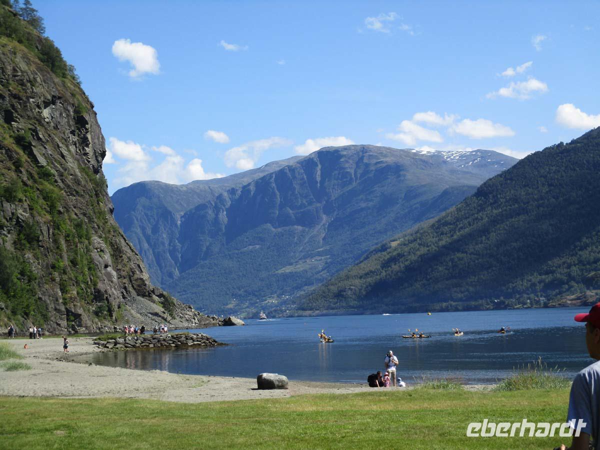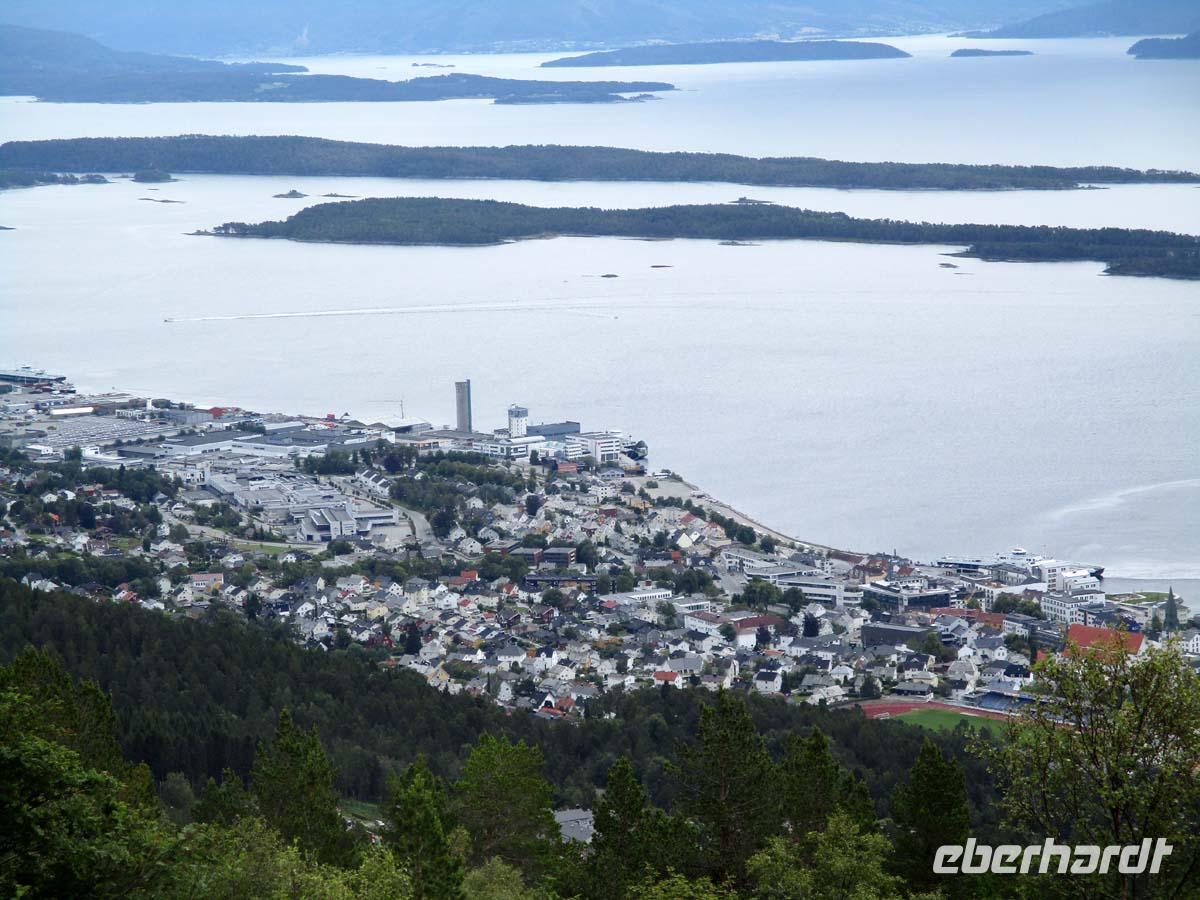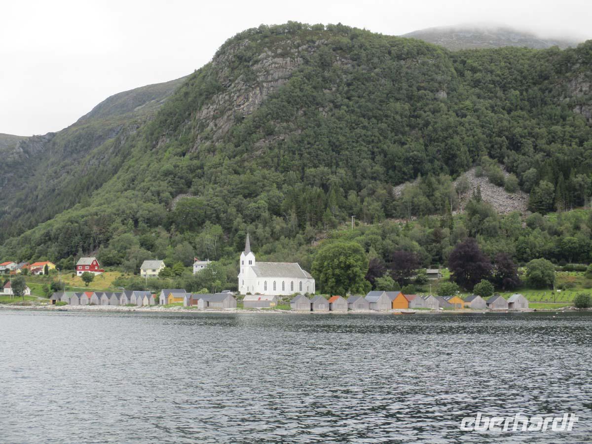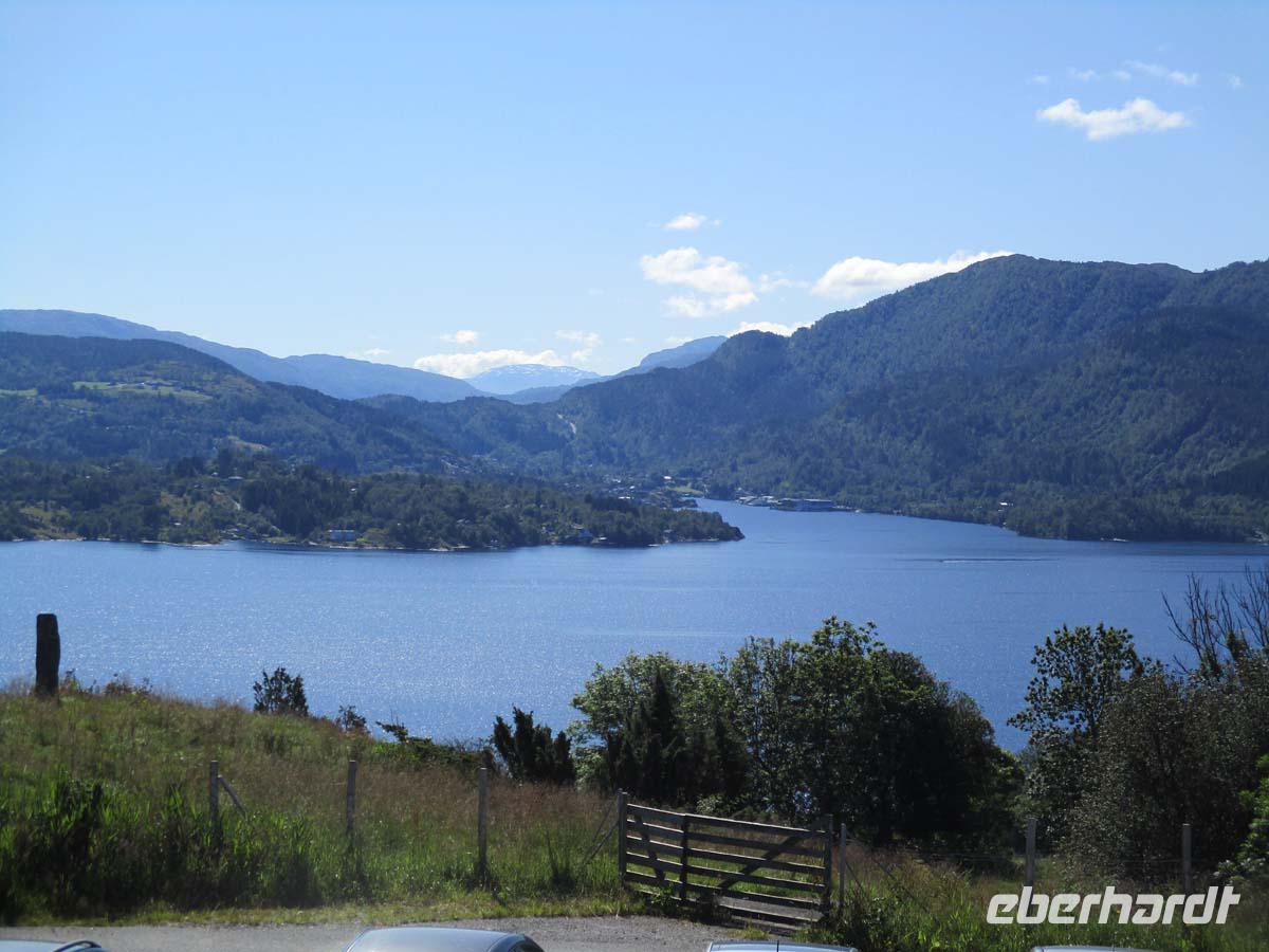 Nachdem wir auf unserer Reise nach Süden mit Fähren den Solafjord und den Rövdalfjord überquert haben, legen wir am Vanlysfjord zunächst eine kurze Pause ein, und können hier schon einen Blick auf die Halbinsel Stadlandet werfen, an deren Ende sich das Vestkap befindet. Auf dem Weg dorthin besuchen wir den kleinen Ort Selje, gegenüber dessen die Insel Selja mit der gleichnamigen Klosterruine liegt. Mit Selje, das sogar einen Sandstrand besitzt, ist eng die heilige Sunniva verbunden, die Schutzheilige von ganz Westnorwegen. Die Sonne scheint und die Landschaft ist lieblich. Wiesen wechseln sich mit hohen Fichtenbeständen ab. Zum Kap geht es steil bergauf und oben pfeift ein guter Wind. Plötzlich finden wir uns mitten in den Wolken wieder und die Sicht ist gleich Null. So beschließen wir spontan, wieder abwärts zu fahren und finden über dem Dorf Arvik einen Platz, wo wir unser Mittag einnehmen, und freien Blick auf Meer und Fjord haben, sowie auf das in den Wolken hängende Vestkap. Der Name Vestkap stimmt nicht so ganz. Man wollte mit dieser Titulierung mehr Touristen in die Gegend locken. Wir fahren auf dem Weg nach Förde ein Stück am 109 km langen Nordfjord mit Mittelgebirgscharakter entlang, bevor wir selbigen auf der Fähre von Starheim nach Isane überqueren. Nach einer Pause am Eickefjord erreichen wir am frühen Abend unser Hotel. Das gute Abendbueffet und das schöne Wetter verlangen geradezu noch nach einem Abendspaziergang, oder dem Genießen auf den Balkonen.
