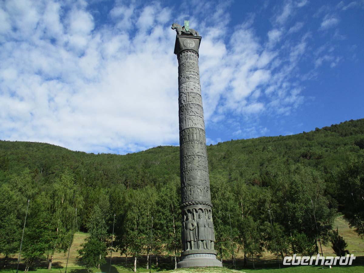 Heute müssen wir pünktlich zu unserer Führung in der Stabkirche in Lom sein, denn schon gegen 10 Uhr ist dort unsere deutschsprachige Führung. Auf der Reise durch das Böverdal lassen wir es uns aber nicht nehmen, einen kurzen Stopp an der Sagasäule einzulegen. Sie wurde von W. Rasmussen geschaffen, aber bis 1940 war sie erst zu 50 Prozent fertig. Sie zeigt Geschehnisse aus der norwegischen Geschichte von 872 - 1814, dem Jahr der Verfassungsgebung. Nach dem Krieg wurde das Vorhaben auf Eis gelegt, die fertig zu stellende Säule vor dem Parlament in Oslo aufzustellen. Dem damaligen Eigentümer des Elveseter Hotels ist es zu verdanken, dass er sie „rettete" und bei seinem Hof aufstellte. Die Stabkirche von Lom gehört zu den bliebtesten Attraktionen des Ortes. Sie stammt aus dem 12. Jh. und weißt im Innern sogar zwei Runeninschriften auf. Imposant sind auch die Dämonen vertreibenden Drachenköpfe an Ihren Firstgiebeln. Weiter reisen wir durch das schöne Ottadal zu den Donfoss Stromschnellen. Und am Djupvassee ist ein schöner Ort ist ein schöner Ort für die Mittagspause. In Geiranger angekommen, begeben wir uns nach etwas Freizeit auf das Schiff, welches uns auf eine Fahrt über den Fjord bringen wird. Dieser gehört zum Unesco Welterbe, nicht zuletzt wegen seiner Schönheit. Weltberühmt sind auch die Wasserfälle der 7 Schwestern und des gegenüber liegenden Freiers. Alles wird, mit Musik unterlegt, durch Audioguides erläutert. Nachdem wir den Geirangerfjord vom Wasser aus begutachtet haben, wollen wir ihn uns noch von oben anschauen. Das tun wir vom Aussichtspunkt auf dem 1476 m hohen Dalsnibba. Atemberaubend ist die Aussicht von hier oben, denn wir haben strahlenden Sonnenschein. Zudem sind wir von dicken Schneefeldern umgeben. Wir reisen nochmals die Serpentinen hinab zu unserem Hotel. Es liegt direkt am Fjord, in den auch große Kreuzfahrtschiffe fahren können. Hier erwartet uns ein riesiges Abendbueffet.7.Tag: So. 25. 06. 2017 Adlerstrasse - Trollstigen - Krinstiansund