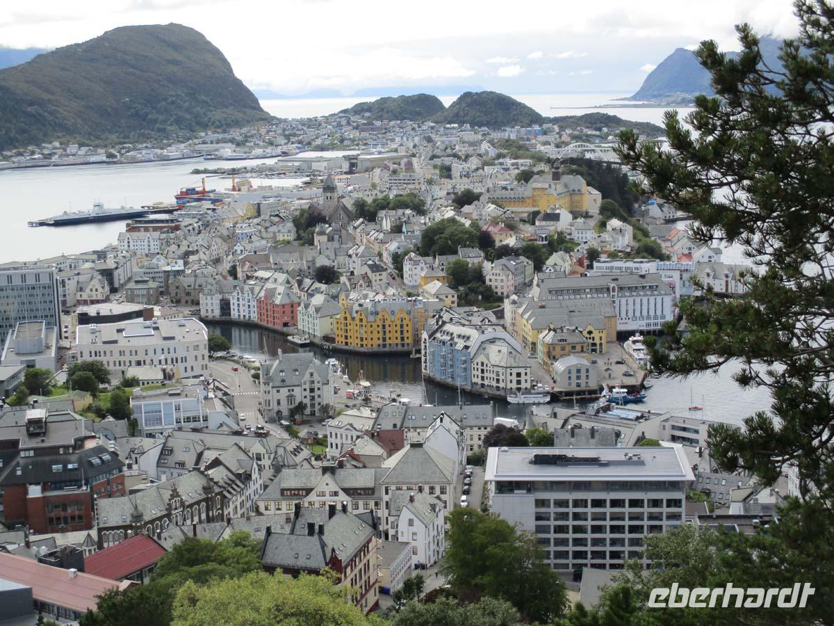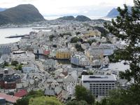 Die Atlantikstraße war eigentlich als Bahnlinie geplant. Im Grunde bezeichnet sie einen knapp 9 km langen Weg mit 8 Brücken durch Schären und kleine Inselchen. Mitunter weiß man nicht, wo das Land beginnt und das Meer endet. Stops legen wir auf dn Inseln Haholmen und Eidhysöya ein mit Blick auf die Storseisundbrücke. Nächstes Ziel ist das Fischerdorf Bud. Hier wurde 1533 die letzte vollständig von Dänemark unabhängige Reichsversammlung abgehalten, woran ein Bautastein erinnert. Bautasteine sind das Adäquat zum französischen Menhir. Sie kennzeichnen Grabstellen aber auch Ereignisse, von denen niemand etwas weis. Denn sie sind unbeschriftet. Aber die senkrecht stehenden hohen Stelen werden auch heute als Bautastein bezeichnet. Neben dem Museum sind zudem Geschützstellungen und Bunker des Atllantikwalls zu sehen, aber auch ein schöner Ausblick auf die vorgelagerten Schären im Meer. Weiter führt uns unser Weg in die Rosenstadt Molde. Wir nehmen unser Mittag auf dem Hausberg Varden ein, von dem man einen herrlichen Blick über den Moldefjord, auf die Stadt selbst und das berühmte Moldepanorama hat. Bei guter Sicht zeigen sich so 222 teils schneebedeckte Gipfel. In der Stadt ist es noch so mild, dass hier Rosen hier gedeihen, wie auch Kastanien und Erlen, die sonst nur weiter südlich zu finden sind. Bevor wir zum Abschluß des Tages nach Alesund hinein fahren erklimmen wir per Bus erst einmal dessen Hausberg, den Aksla. Von hier kann man die gesamte Stadt hervorragend überblicken und gleich schauen, wohin man am Abend noch gehen möchte. Alesund ist die Stadt des Jugendstils. Nach einem verheerenden Brand leistete Kaiser Wilhelm II, der sich sehr gerne dort aufhielt eine Menge Wiederaufbauhilfe Finanzieller und praktischer Art. Eine Straße in der Stadt ist nach wie vor nach ihm benannt und in der Stadtkirche prangt in einem Fenster das preußische Wappen. Wir beziehen unser Hotel im Zentrum. Vor und nach dem Abendessen ziehen es alle vor, individuell die Stadt zu erkunden, was bei dem mittlerweile wieder sonnigen Wetter doppelt Freude macht.