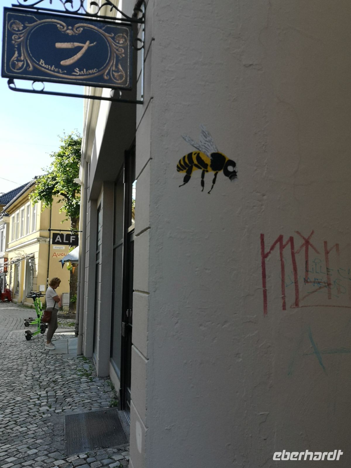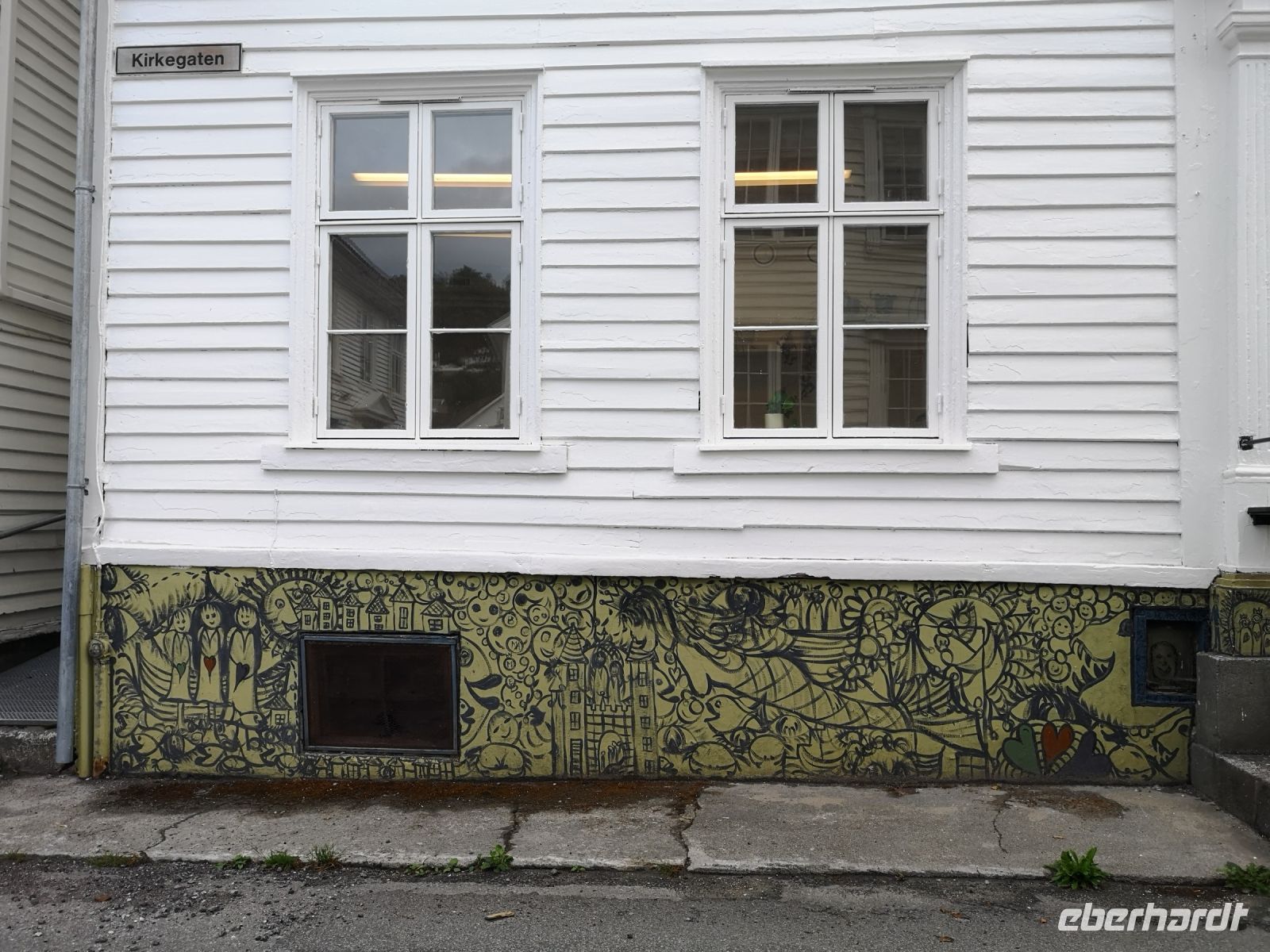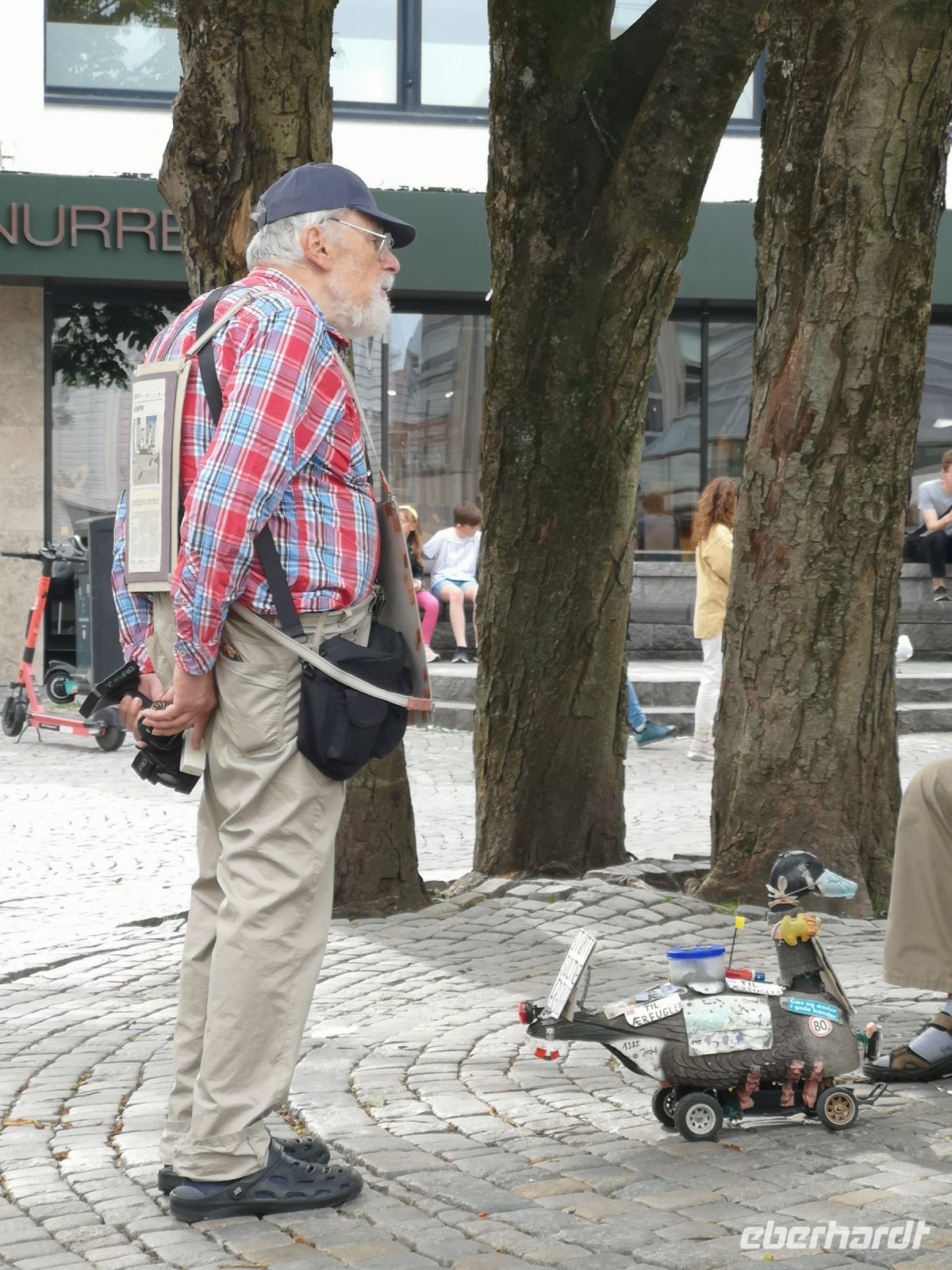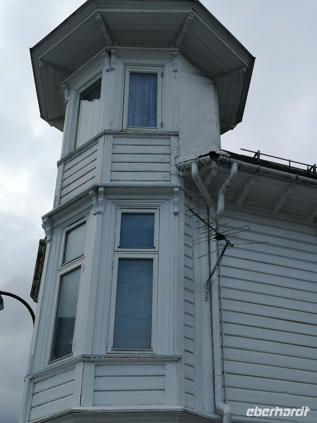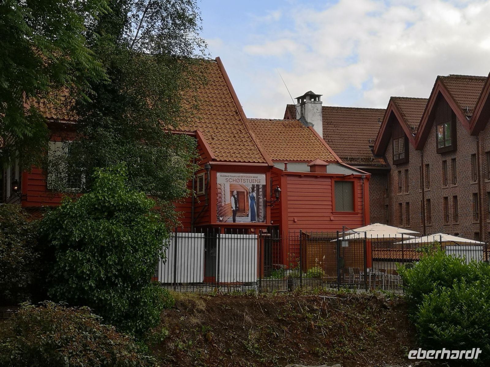 In Stavanger gab es noch etwas Zeit die Bunte Straße zu besuchen. Und ich wollte Norwegen nicht verlassen, ohne eine einzige Zimtschnecke vertilgt zu haben. Ein schönes Kaffee wurde ausfindig gemacht, Schnecke bestellt und geviertelt, weil ich sie mit meinen Damen aus dem Bus solidarisch teilen wollte – kam aber anders: eine Möwe teilte die Schnecke mit mir. Von mir nicht gewollt und von der Möwe gar nicht gefragt. Da habe ich erkannt, warum alle Einheimischen im Kaffee sitzen und draußen nur die Touris.