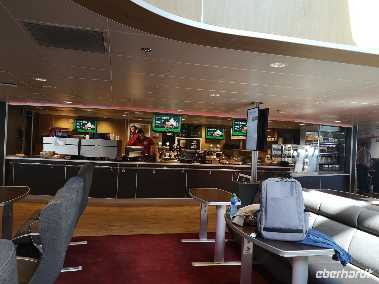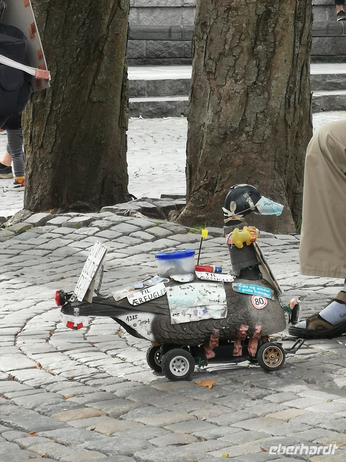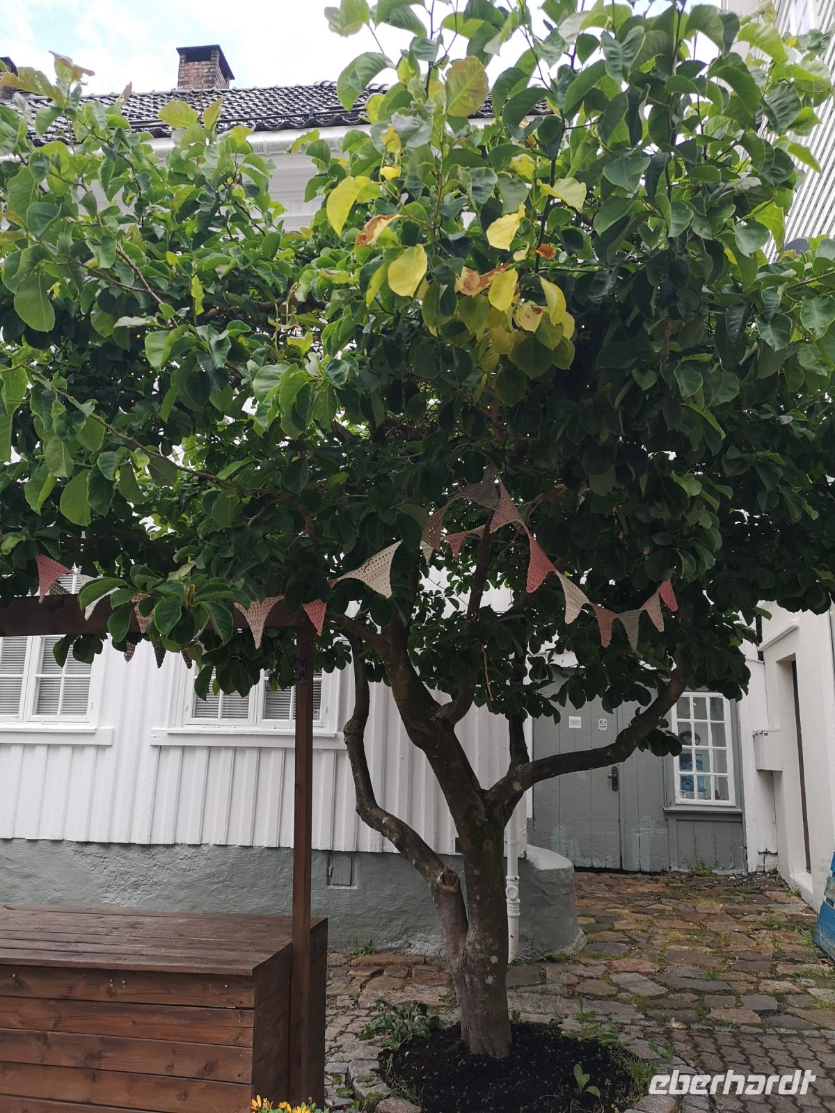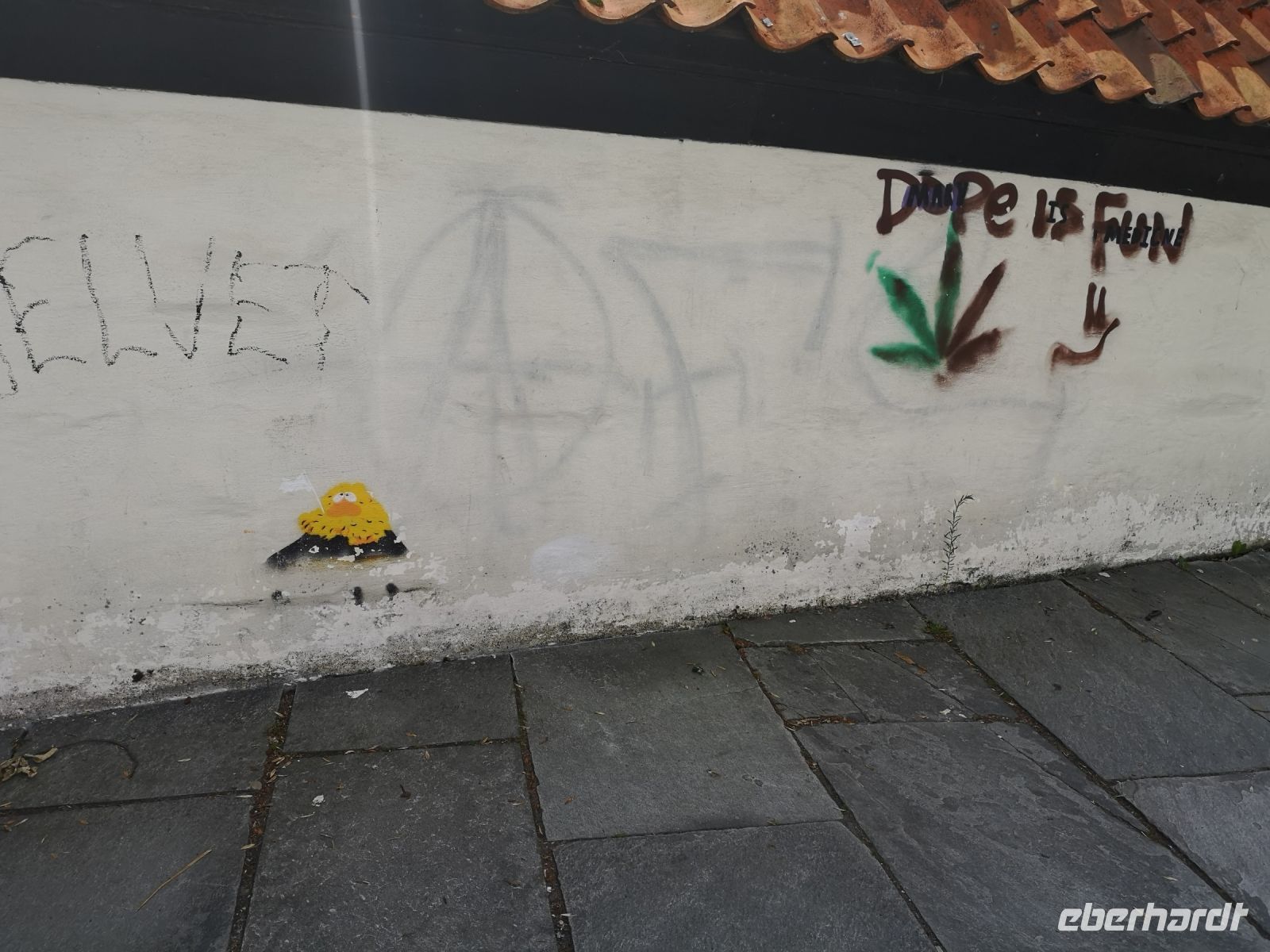 In Stavanger gab es noch etwas Zeit die Bunte Straße zu besuchen. Und ich wollte Norwegen nicht verlassen, ohne eine einzige Zimtschnecke vertilgt zu haben. Ein schönes Kaffee wurde ausfindig gemacht, Schnecke bestellt und geviertelt, weil ich sie mit meinen Damen aus dem Bus solidarisch teilen wollte – kam aber anders: eine Möwe teilte die Schnecke mit mir. Von mir nicht gewollt und von der Möwe gar nicht gefragt. Da habe ich erkannt, warum alle Einheimischen im Kaffee sitzen und draußen nur die Touris.