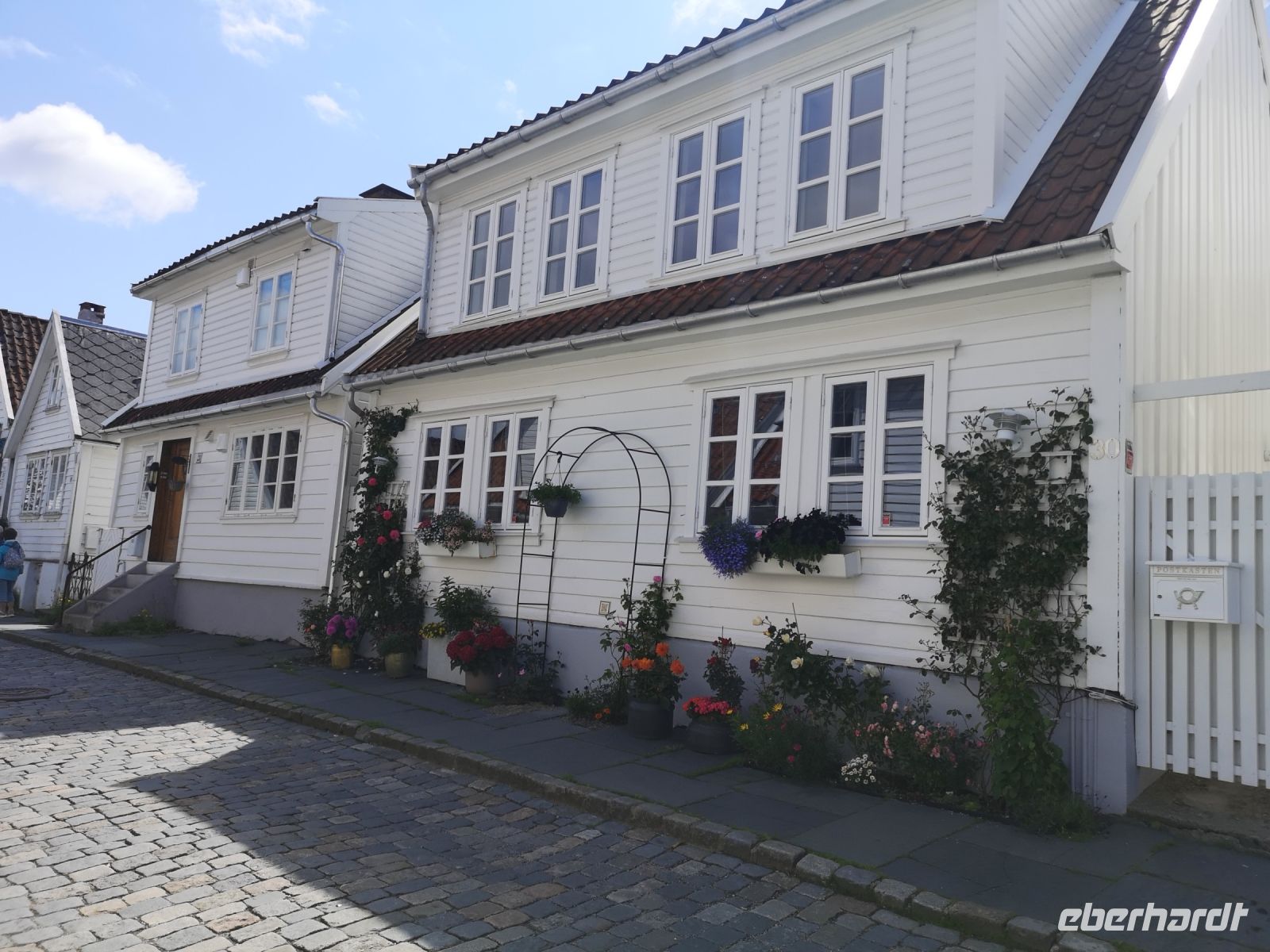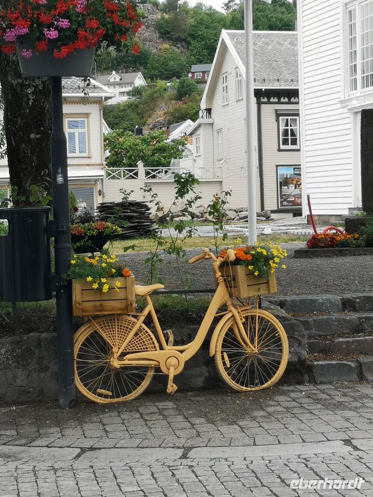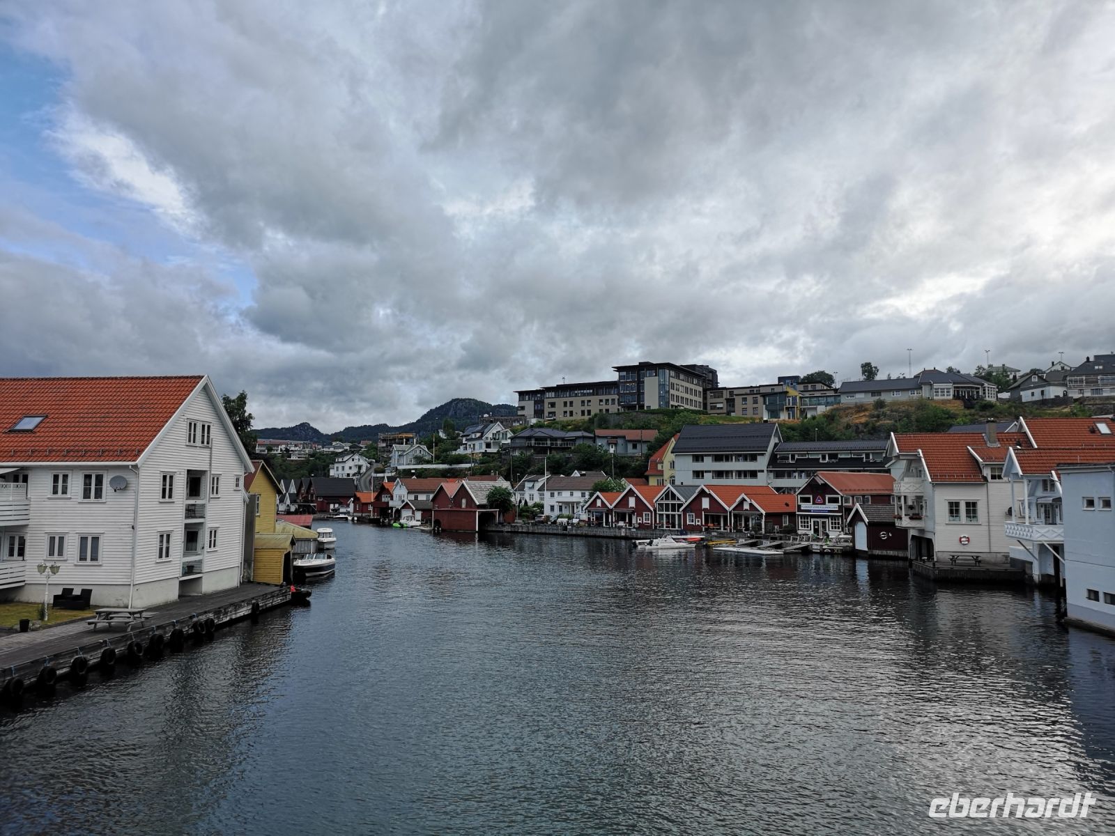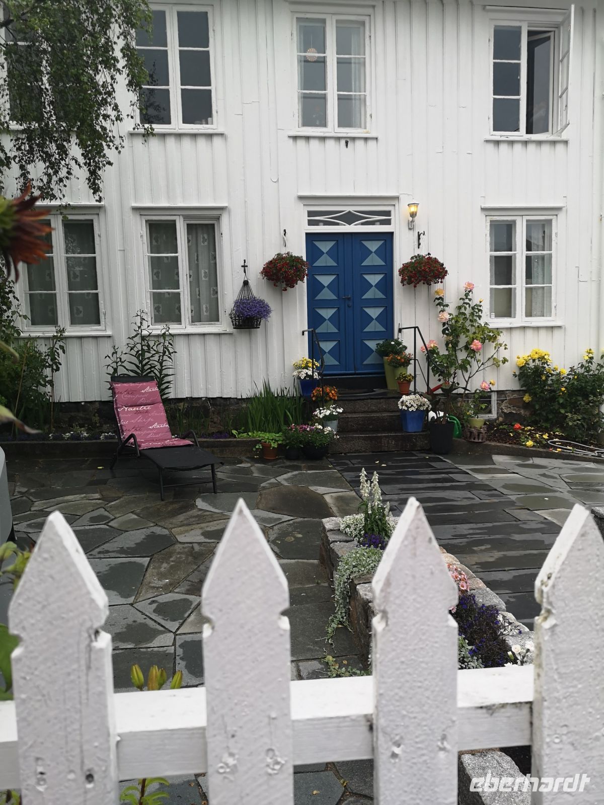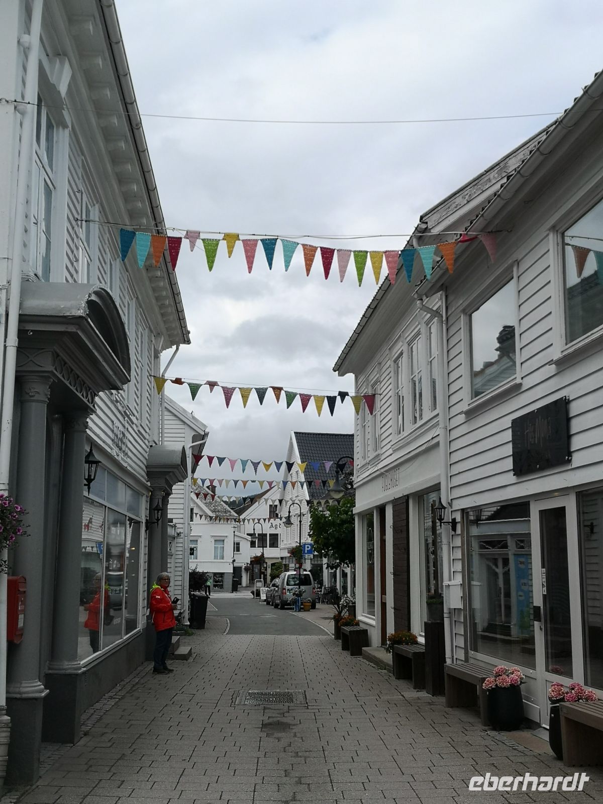 Flekkefjord mit seinem holländischen Flair, mit weißen hölzernen Häusern und in Blumen gekleideten Pforten und Treppen, erwartete uns in aller Morgenruhe und lud uns ein, ein wenig durch die zierlichen Gassen zu schlendern. Sich vielleicht ein wenig in die Vergangenheit zurück zu versetzen und erahnen, warum das Städtchen so ist wie es ist. Und wenn man nach Details gesucht hat, wurde man in manchem Fenster auch fündig: der Delfter Porzellan in weiß und blau, zum Beispiel. In der Nähe vom Busbahnhof standen die Draisinen – vielleicht gönnt sich der ein oder andere irgendwann später einen Urlaub auf diesen Rädern ?? Aber wir müssten weiter gen Stavanger. Weil Stavanger hat vieles zu bieten.