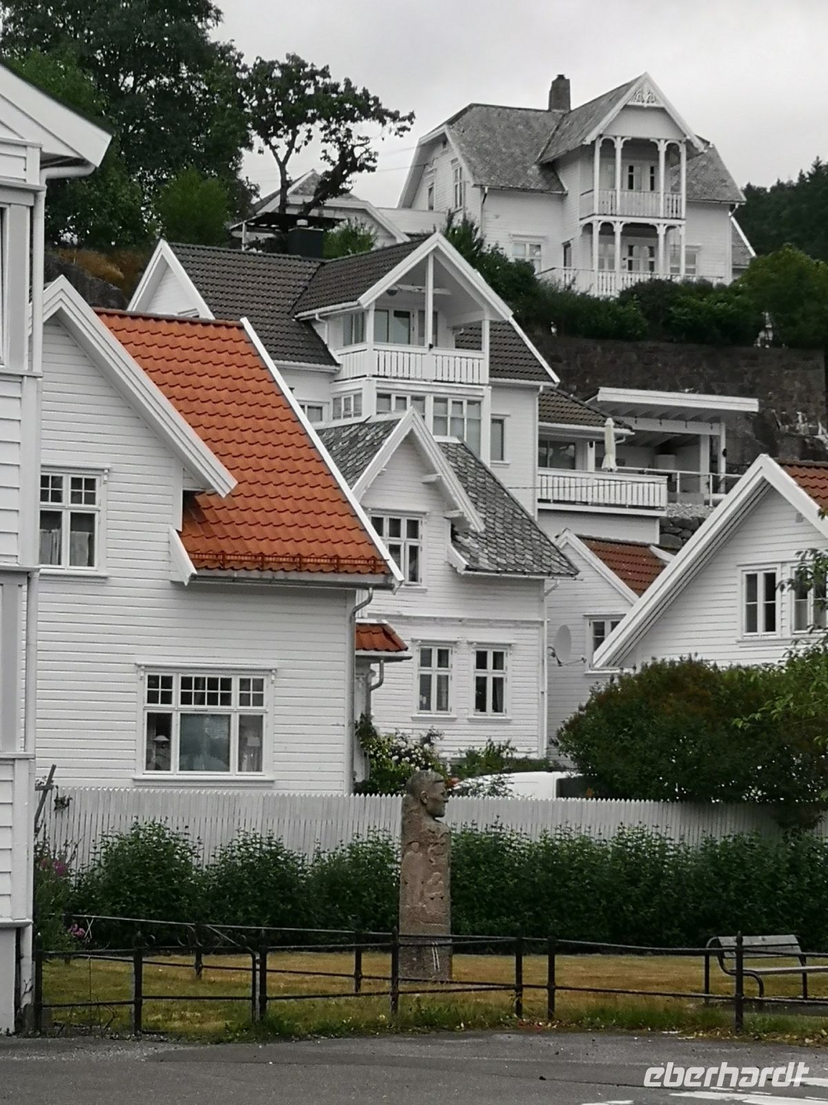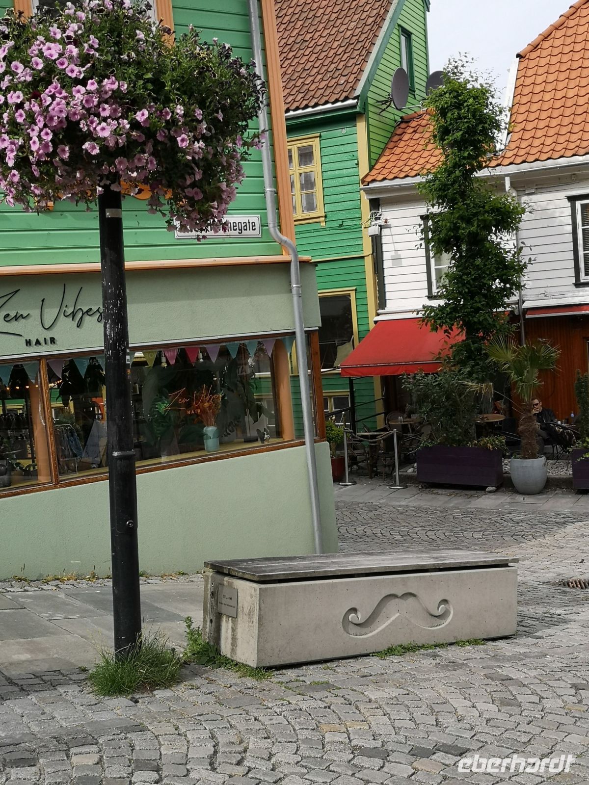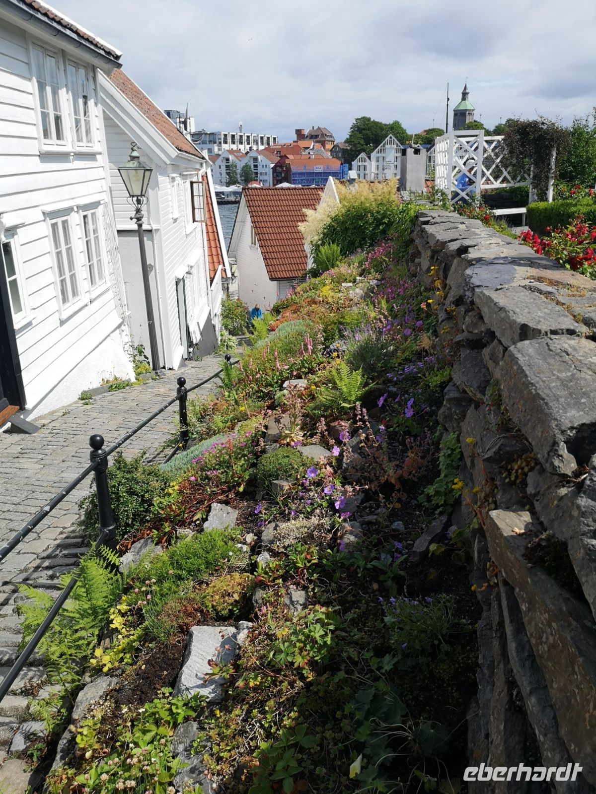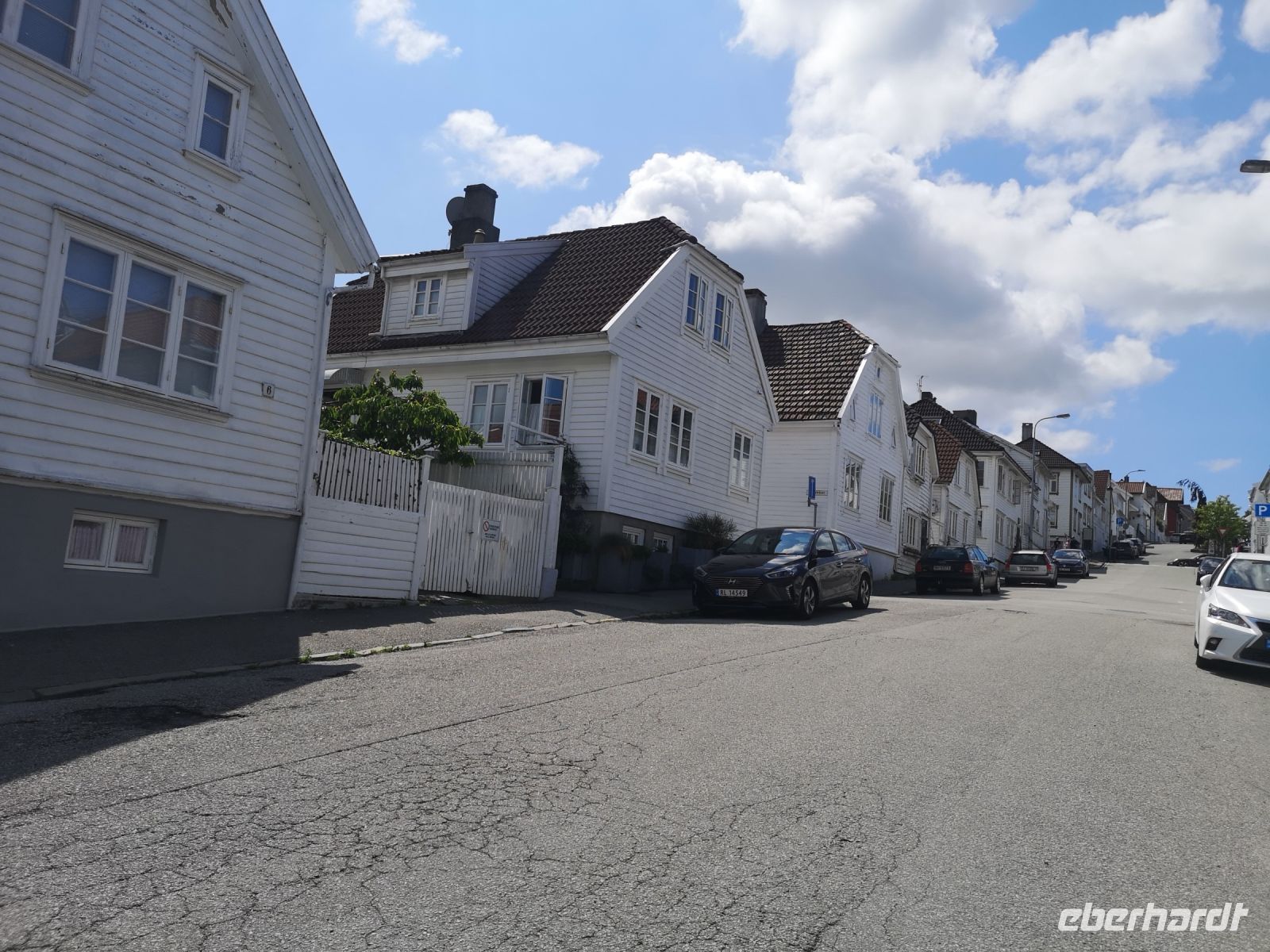 Flekkefjord mit seinem holländischen Flair, mit weißen hölzernen Häusern und in Blumen gekleideten Pforten und Treppen, erwartete uns in aller Morgenruhe und lud uns ein, ein wenig durch die zierlichen Gassen zu schlendern. Sich vielleicht ein wenig in die Vergangenheit zurück zu versetzen und erahnen, warum das Städtchen so ist wie es ist. Und wenn man nach Details gesucht hat, wurde man in manchem Fenster auch fündig: der Delfter Porzellan in weiß und blau, zum Beispiel. In der Nähe vom Busbahnhof standen die Draisinen – vielleicht gönnt sich der ein oder andere irgendwann später einen Urlaub auf diesen Rädern ?? Aber wir müssten weiter gen Stavanger. Weil Stavanger hat vieles zu bieten.