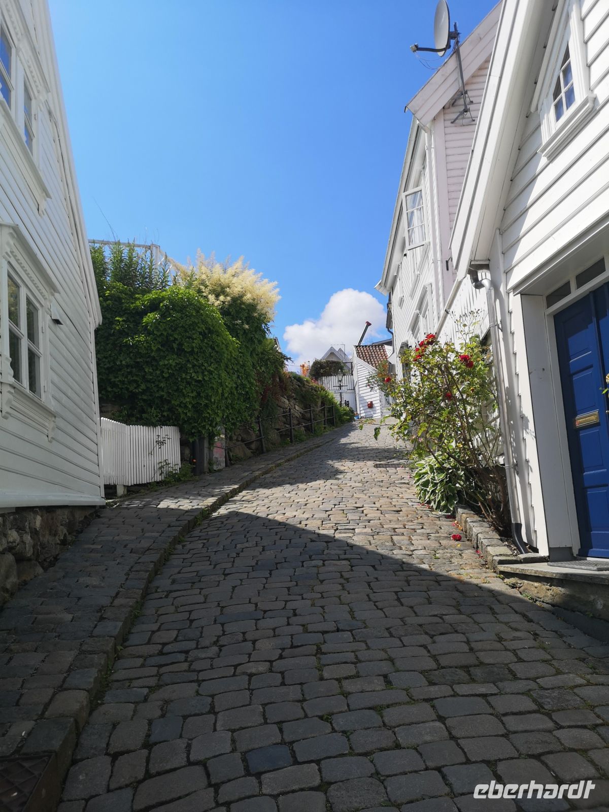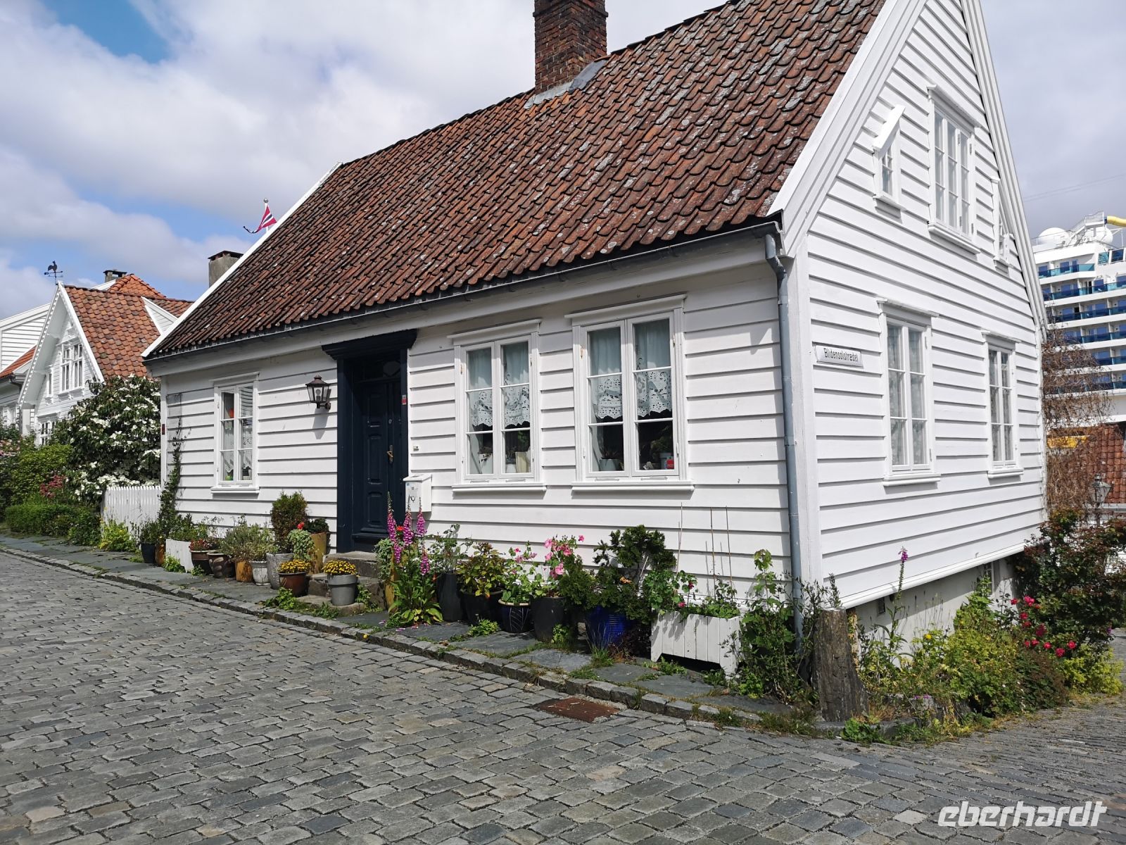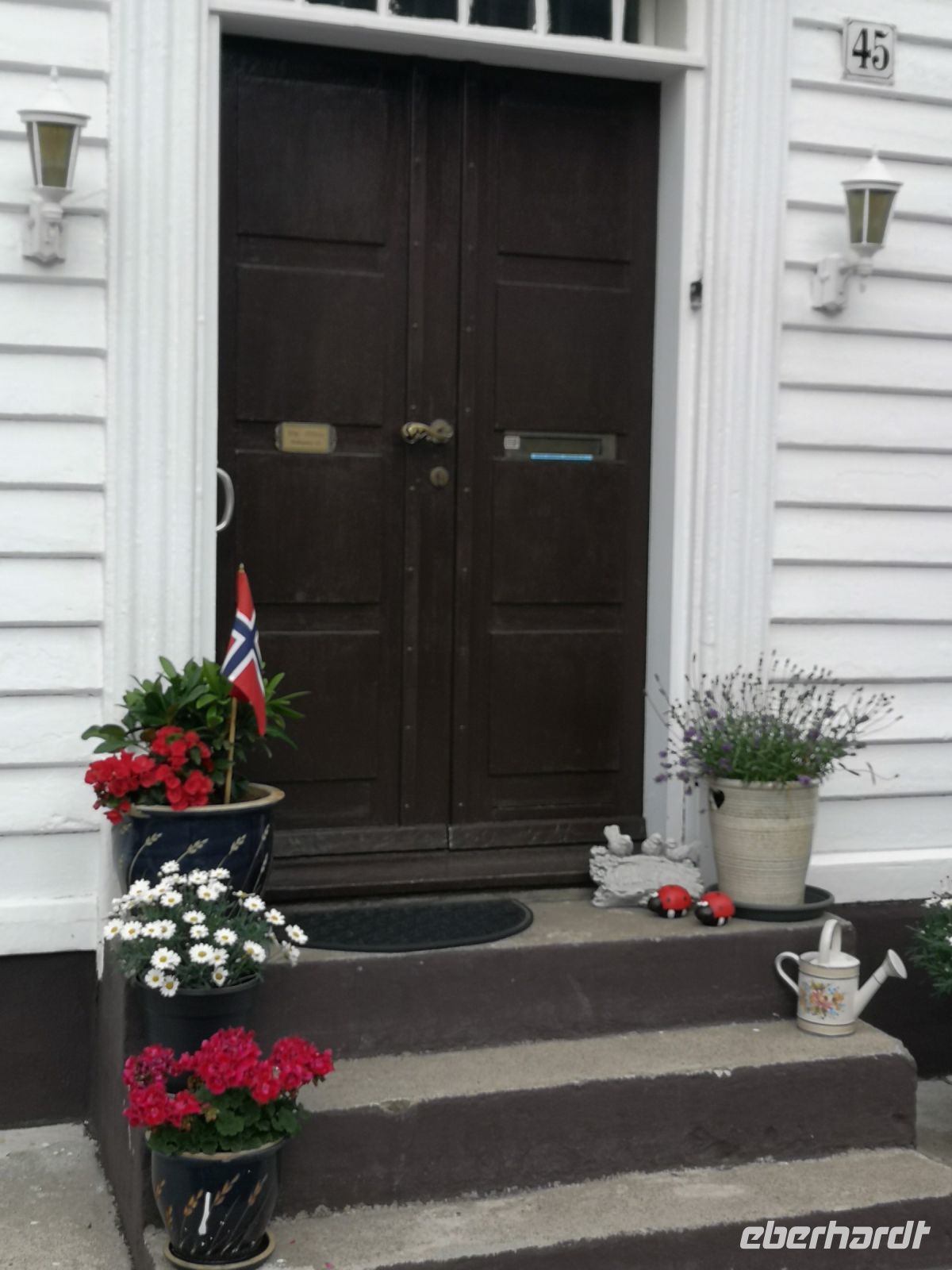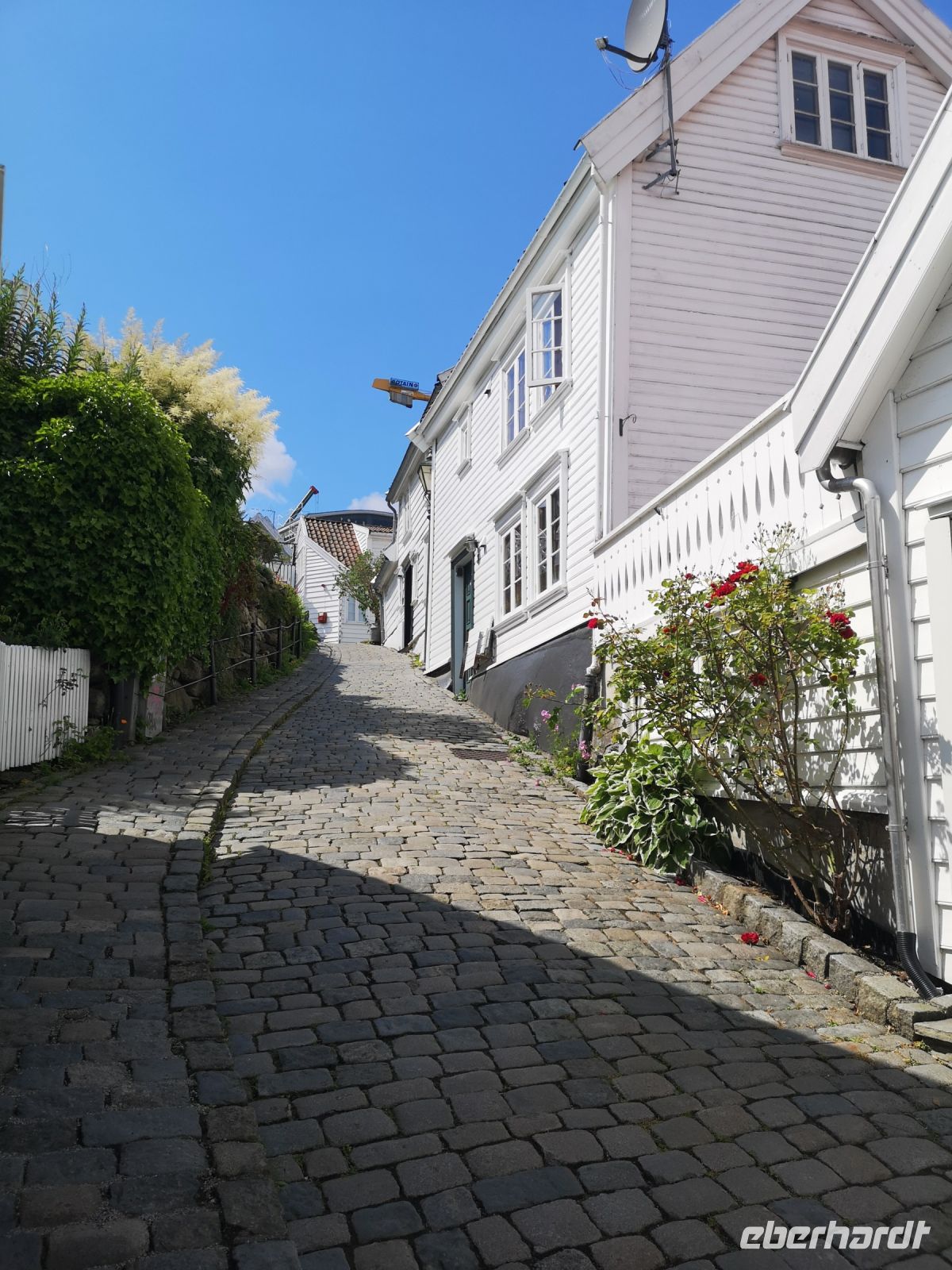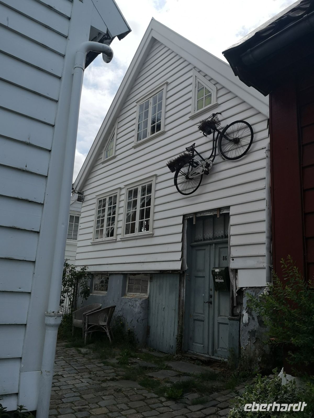 Flekkefjord mit seinem holländischen Flair, mit weißen hölzernen Häusern und in Blumen gekleideten Pforten und Treppen, erwartete uns in aller Morgenruhe und lud uns ein, ein wenig durch die zierlichen Gassen zu schlendern. Sich vielleicht ein wenig in die Vergangenheit zurück zu versetzen und erahnen, warum das Städtchen so ist wie es ist. Und wenn man nach Details gesucht hat, wurde man in manchem Fenster auch fündig: der Delfter Porzellan in weiß und blau, zum Beispiel. In der Nähe vom Busbahnhof standen die Draisinen – vielleicht gönnt sich der ein oder andere irgendwann später einen Urlaub auf diesen Rädern ?? Aber wir müssten weiter gen Stavanger. Weil Stavanger hat vieles zu bieten.