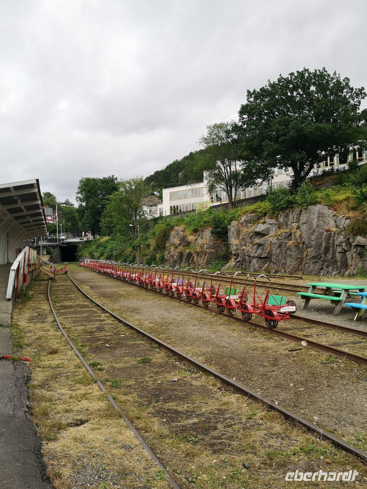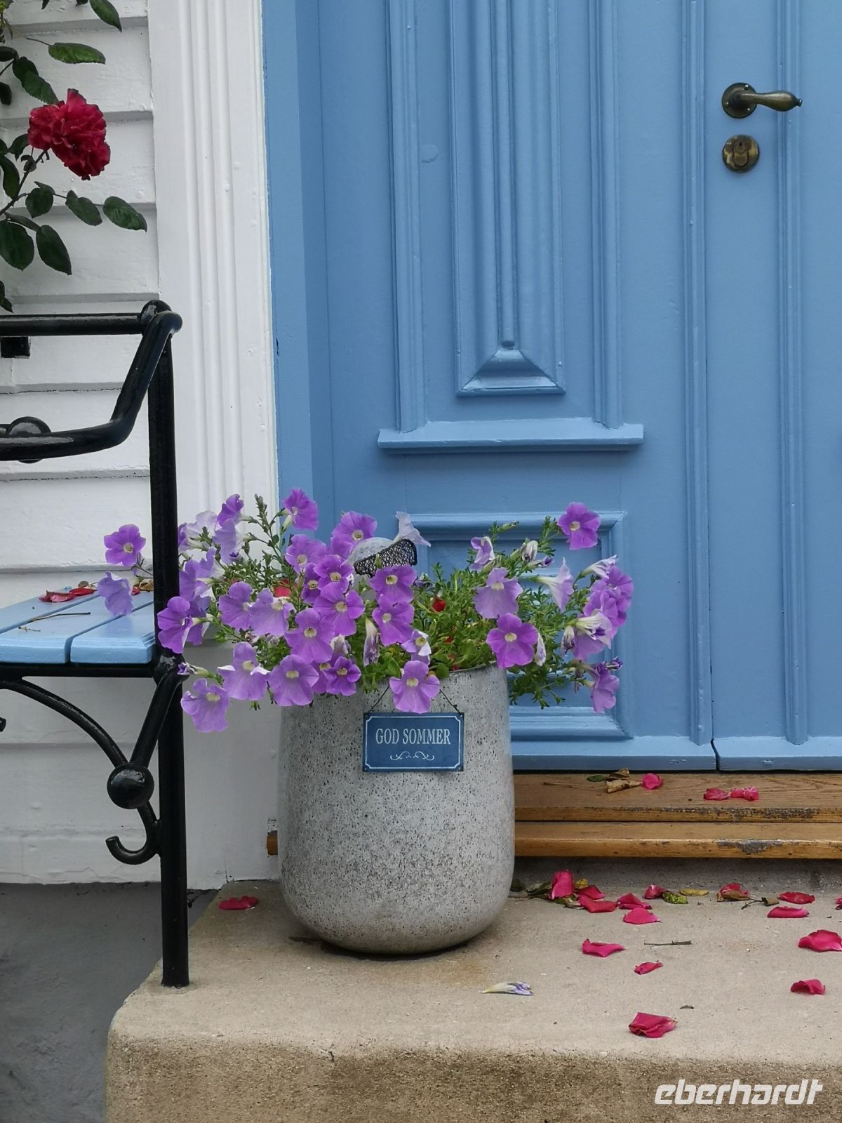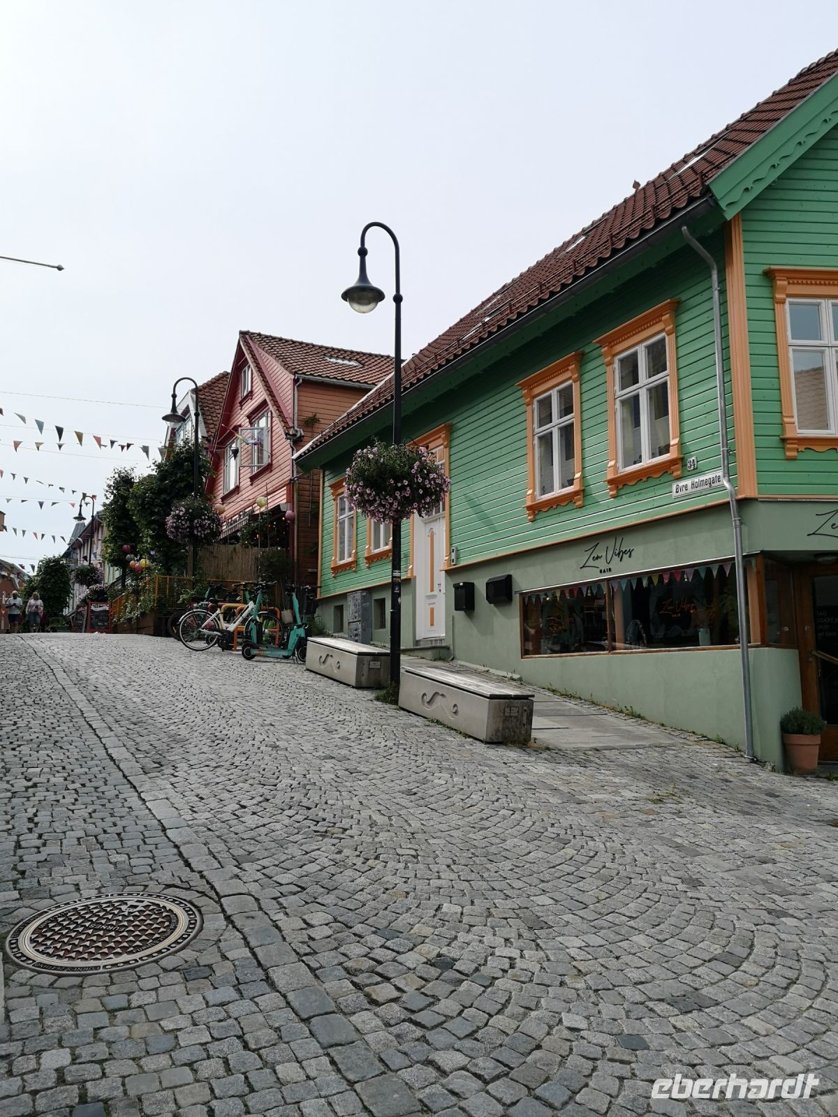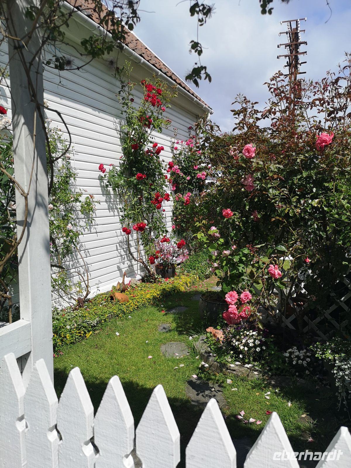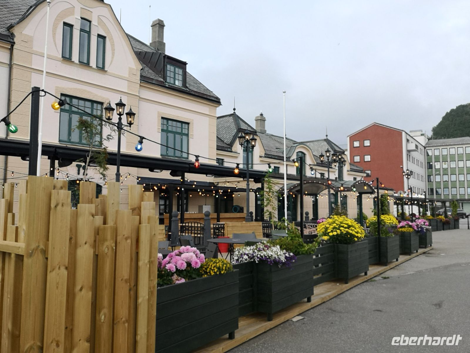 Flekkefjord mit seinem holländischen Flair, mit weißen hölzernen Häusern und in Blumen gekleideten Pforten und Treppen, erwartete uns in aller Morgenruhe und lud uns ein, ein wenig durch die zierlichen Gassen zu schlendern. Sich vielleicht ein wenig in die Vergangenheit zurück zu versetzen und erahnen, warum das Städtchen so ist wie es ist. Und wenn man nach Details gesucht hat, wurde man in manchem Fenster auch fündig: der Delfter Porzellan in weiß und blau, zum Beispiel. In der Nähe vom Busbahnhof standen die Draisinen – vielleicht gönnt sich der ein oder andere irgendwann später einen Urlaub auf diesen Rädern ?? Aber wir müssten weiter gen Stavanger. Weil Stavanger hat vieles zu bieten.