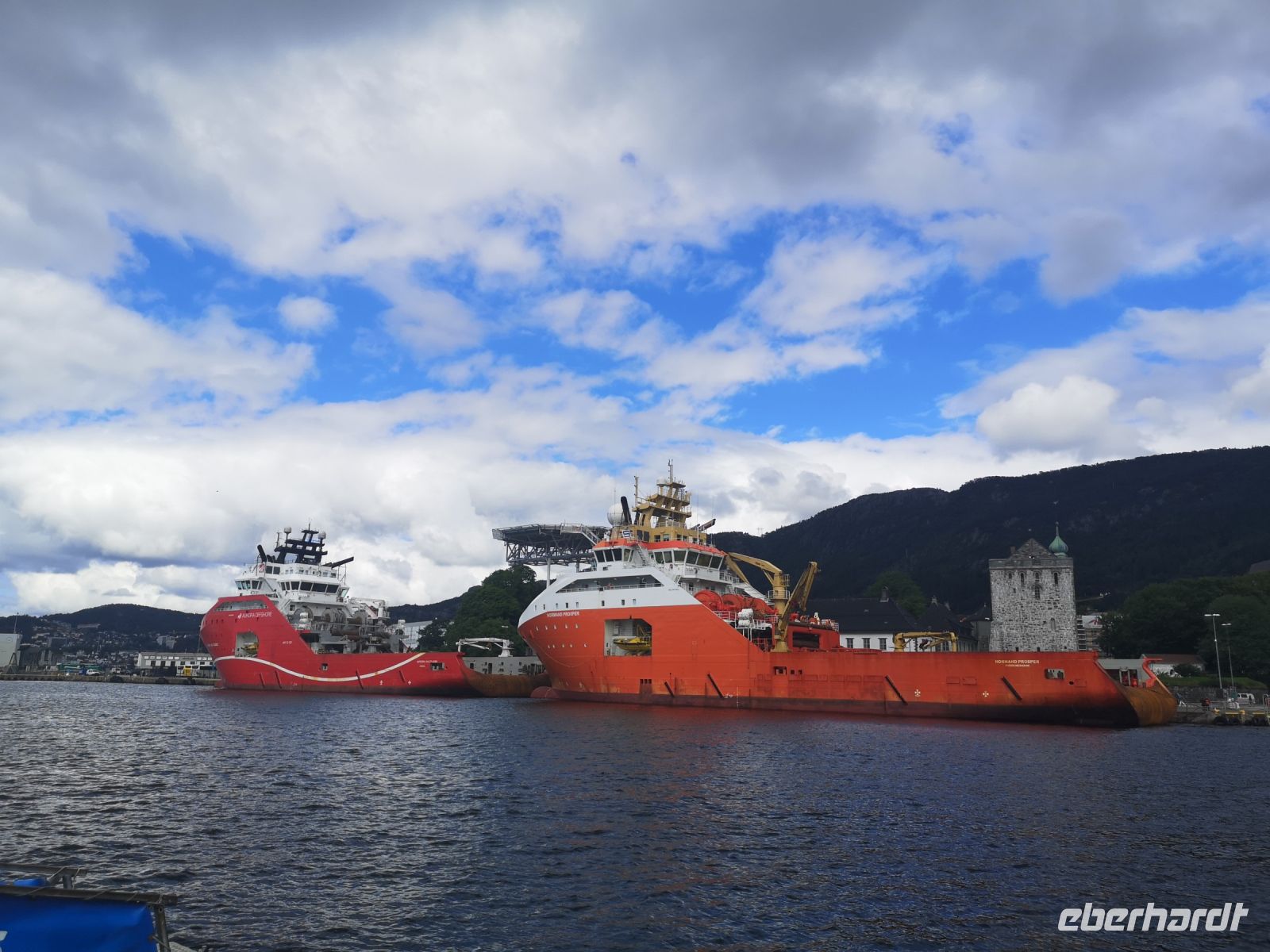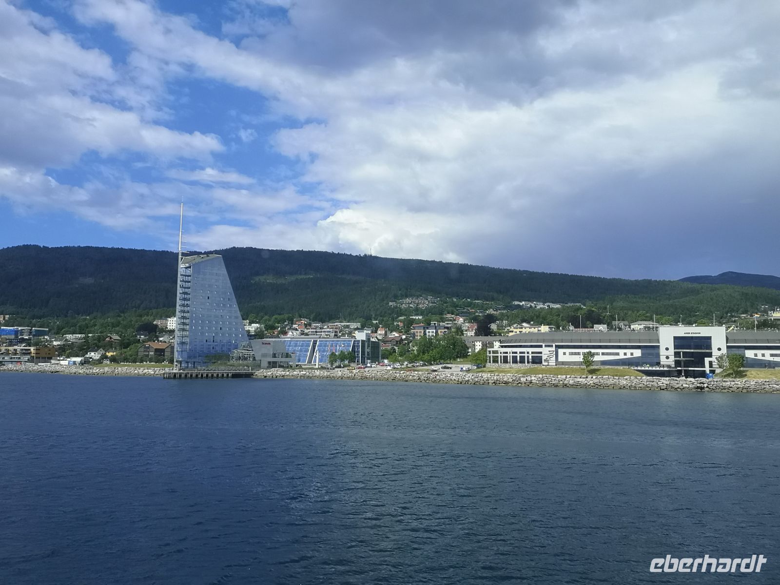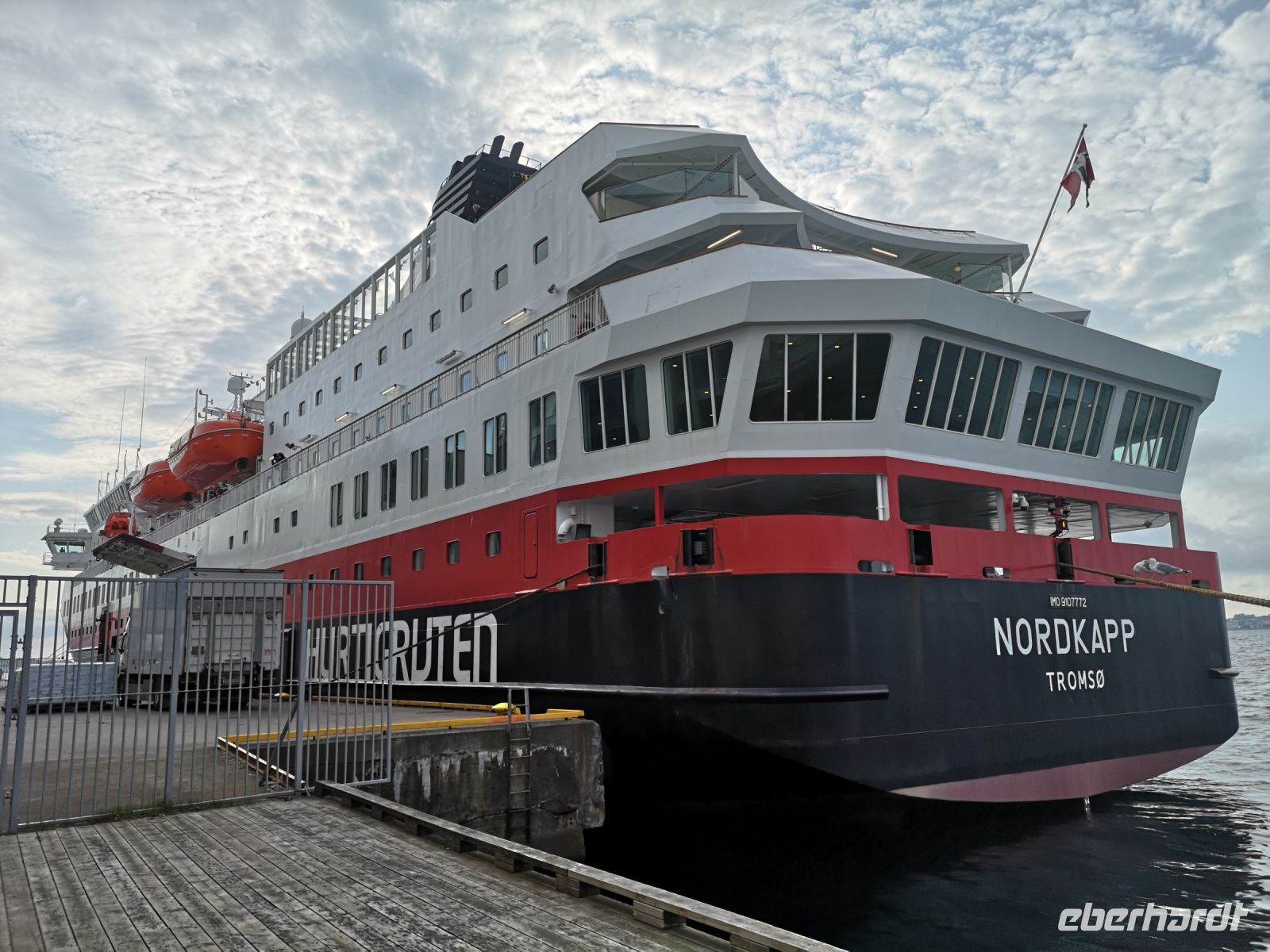 „Was ist das für ein Lärm, der mich aus dem Schlaf reißt?“ Etwas verwirrt machte ich den Vorhang auf und vor meinem Fenster fuhr auf Augenhöhe langsam ein Schiff der Reederei Hurtigrute vorbei. Fast konnte ich in die Kojen reinschauen, so nah fuhr es vorbei. Aber um Foto zu machen war ich etwas zu langsam. Ja, viele Momente im Leben müssen wir einfach im Herzen bewahren………